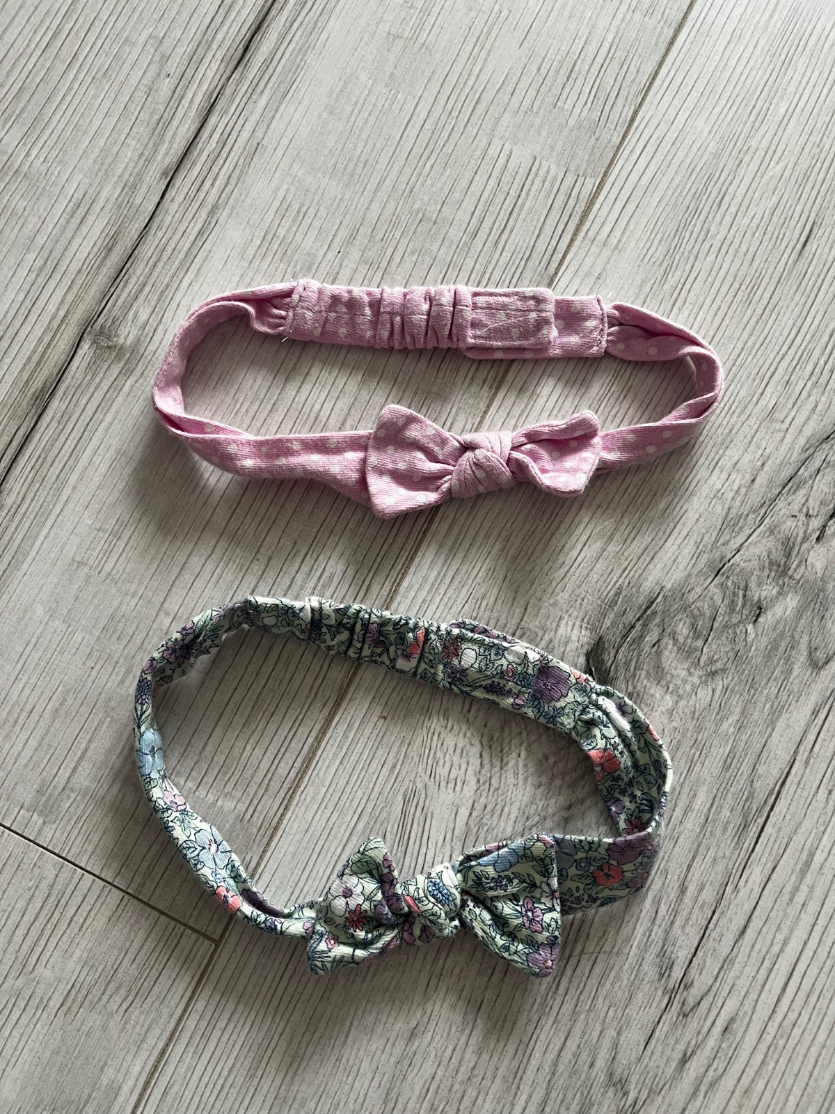 Predám dva kusy ozdobných latkovych čeleniek s maslickami značky Next, veľkosť: 68-80 (6-12 mesiacov). Čelenky sa zapínajú na suchý zips a majú vzadu gumičku