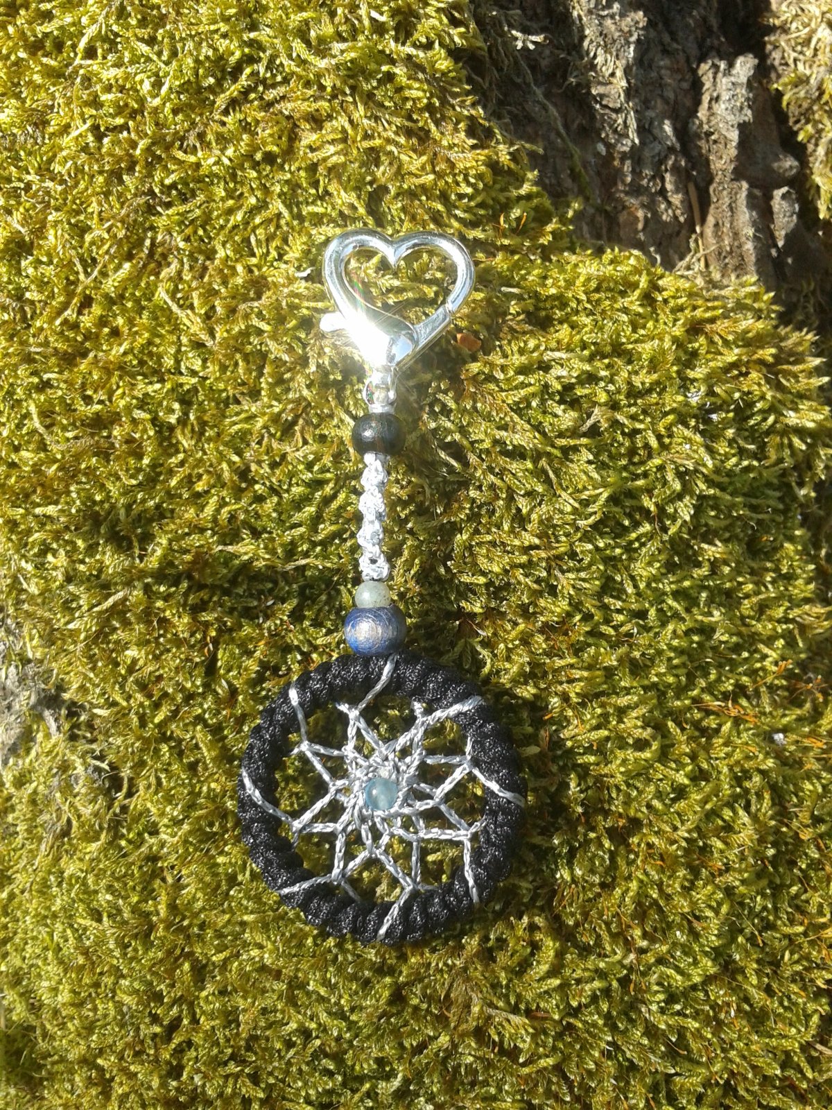 Energetická mini mandalka/lapač snov s minerálmi ako prívesok na srdiečkovej karabínke ..rôzne druhy ♥