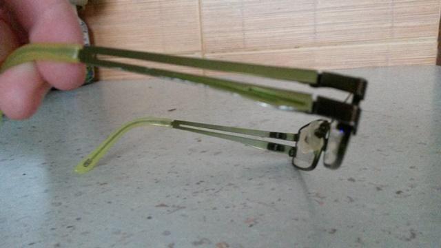 Ramy detských okuliarov, kovové, zelené, jemne ošuchané pokrajov, ale nie je to velmi vidieť, vzdialenosť dlžka okularovej časti od kraja skla po kraj skla ) 14,5 cm,výška skla 2,5 cm