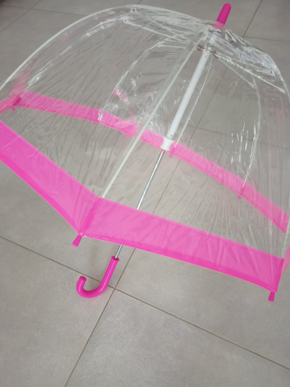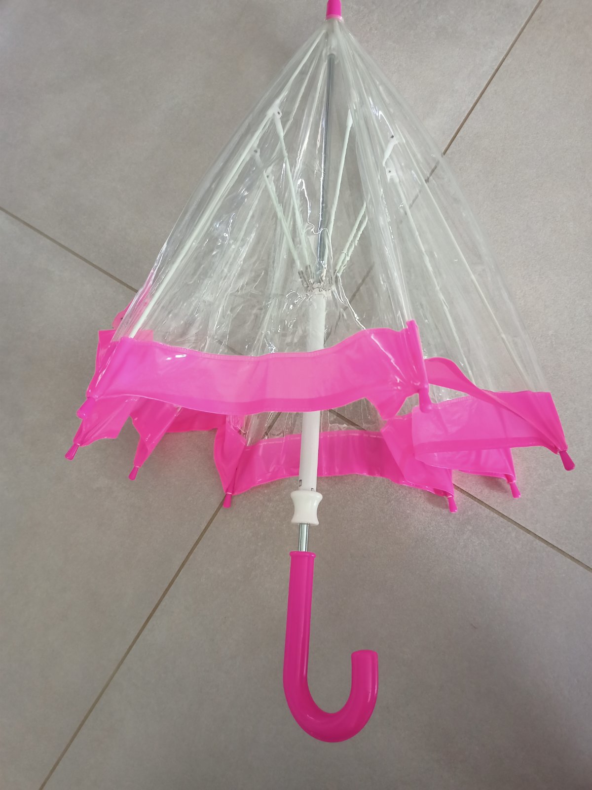 Praktický detský dáždnik, priesvitný, takže dieťa môže byť schované úplne pod ním a zároveň dobre vidí pred seba.