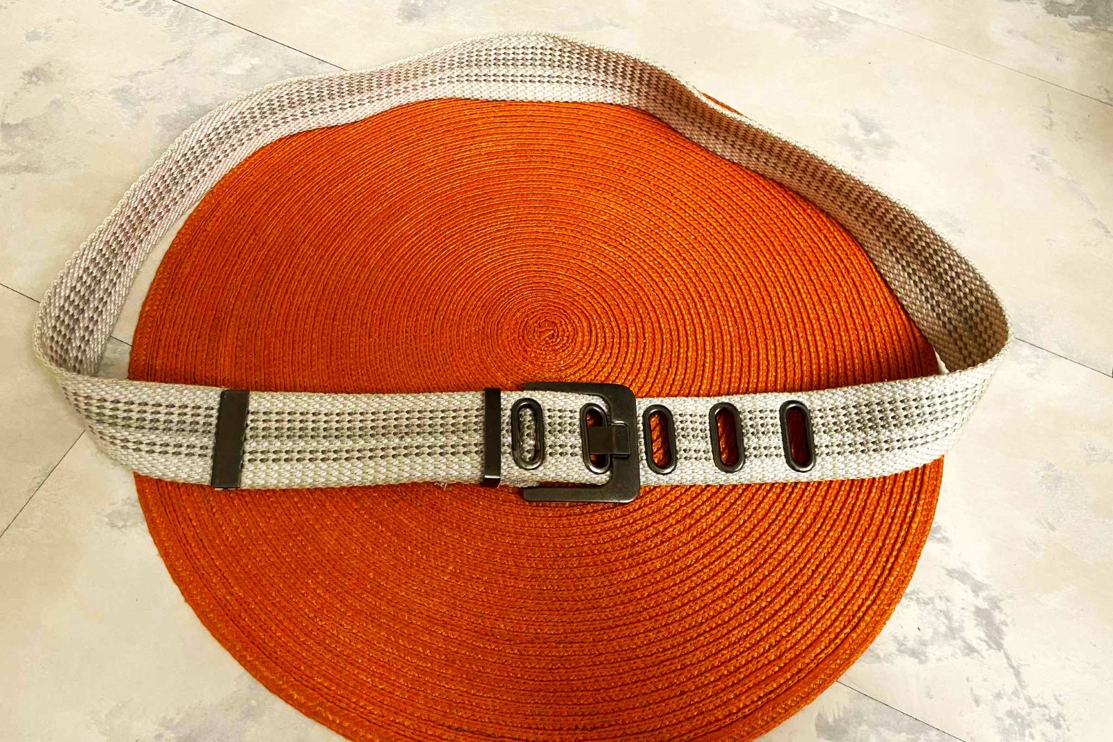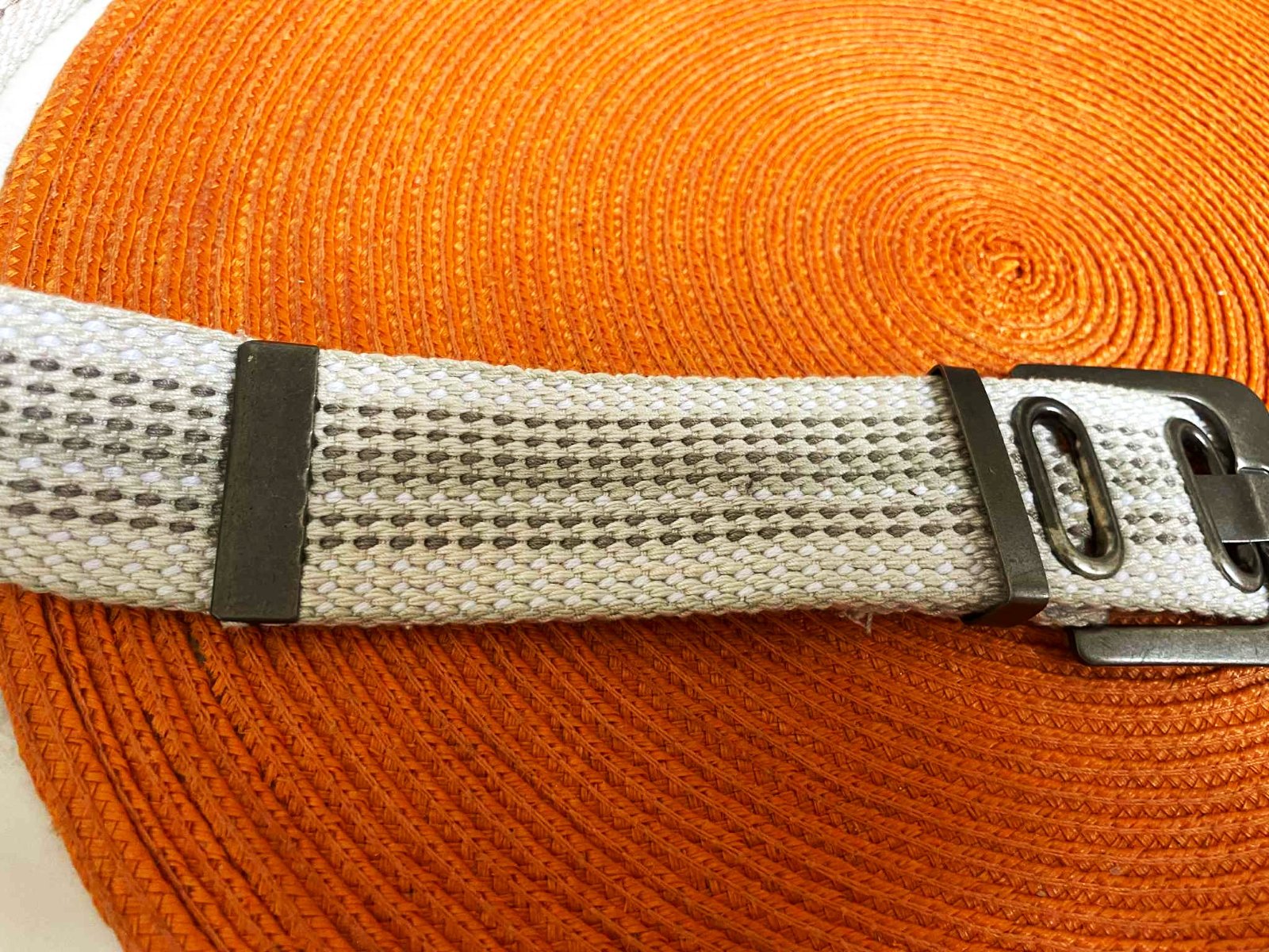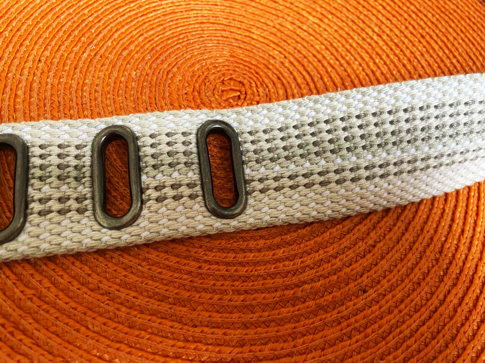 neznosený a veľmi kvalitný moderný unisex opasok,dlžka celkom = 118 cm - meraná plátenná časť,min. obvod vzhľadom na vybitú kovovú dierku = 94 x 2 cm,max = 108 cm,šírka = 4 cm