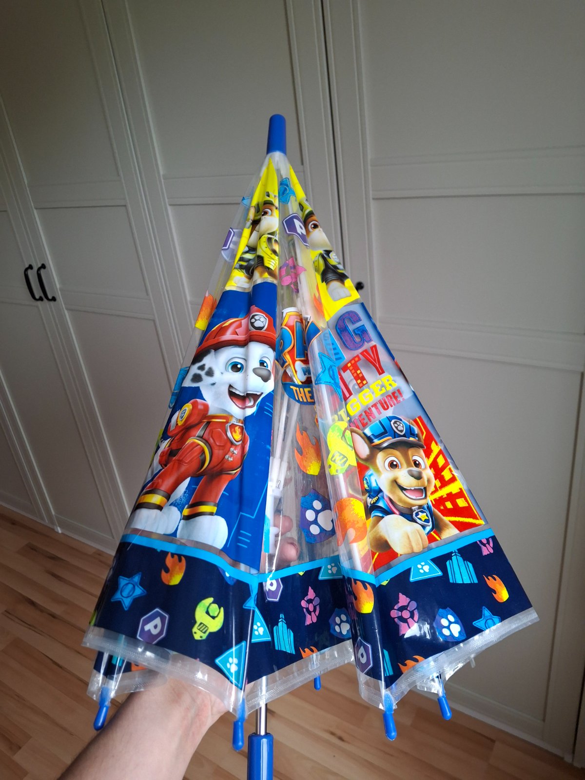 Predám detský dáždnik Paw Patrol / Labková patrola s modrou rúčkou. Plne funkčný, bez poškodenia. Dĺžka 67 cm v zloženom stave od špičky až po spodok rúčky. Ideálny pre vek cca 4 - 8 rokov. Osobný odber možný v Bratislave.