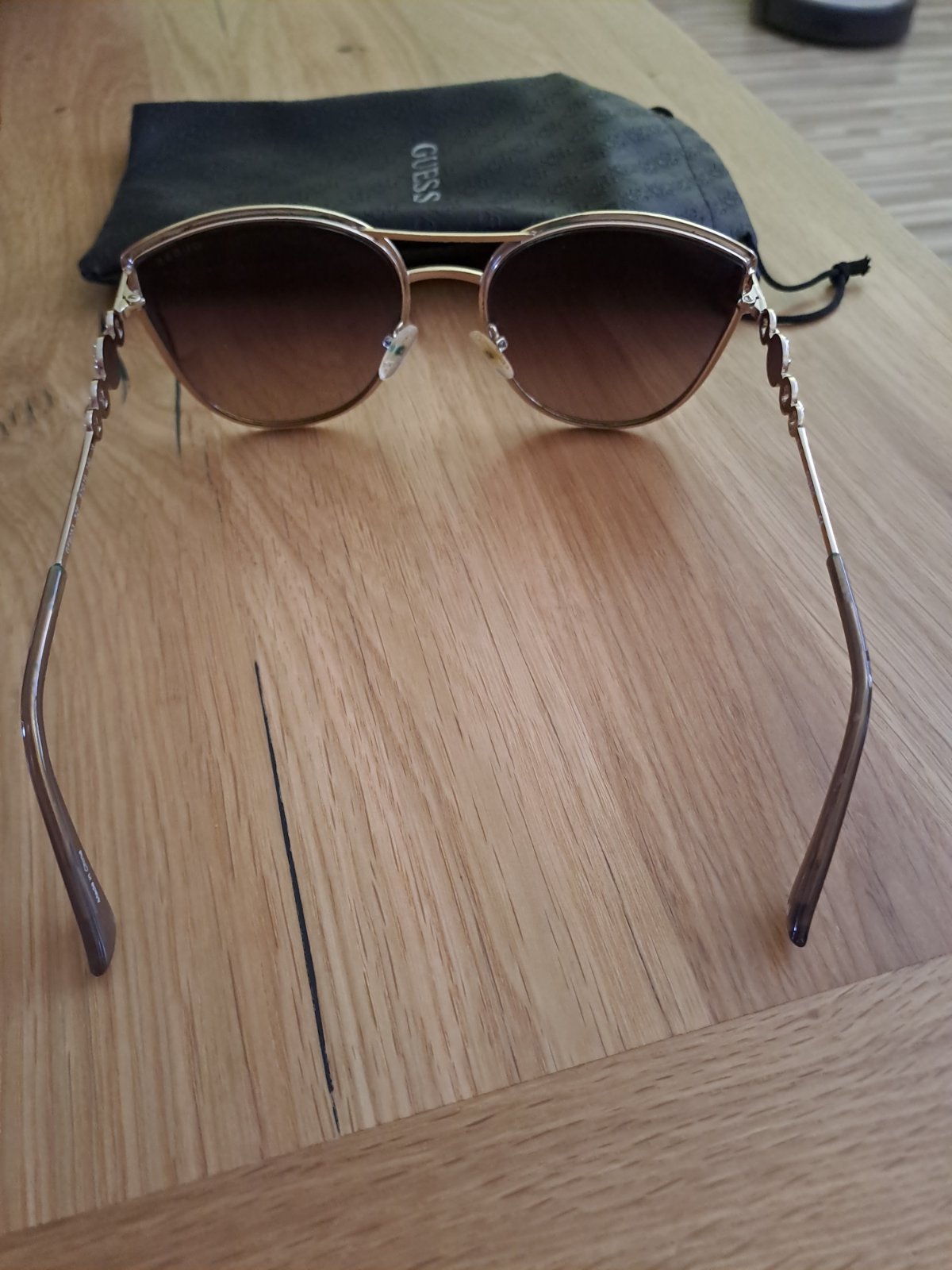 Originál Guess slnečné okuliare, kľúčová farba je tmavohnedá kombinovaná s leopardím vzorom. Sú kvalitné, kupované boli v optike Mania. Vzaté asi 2x. Mám ich veľa, preto ich predávam, nenosím ich.