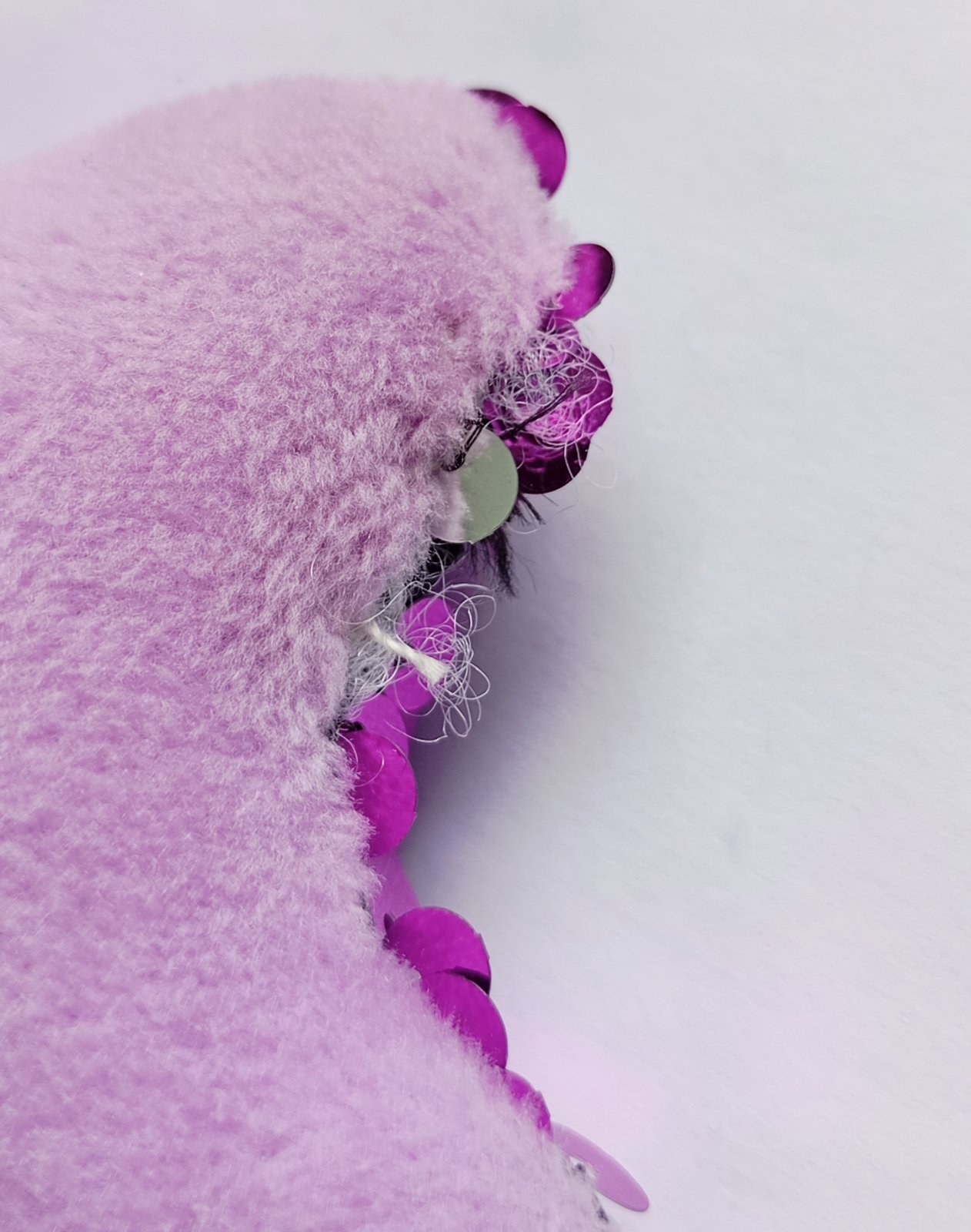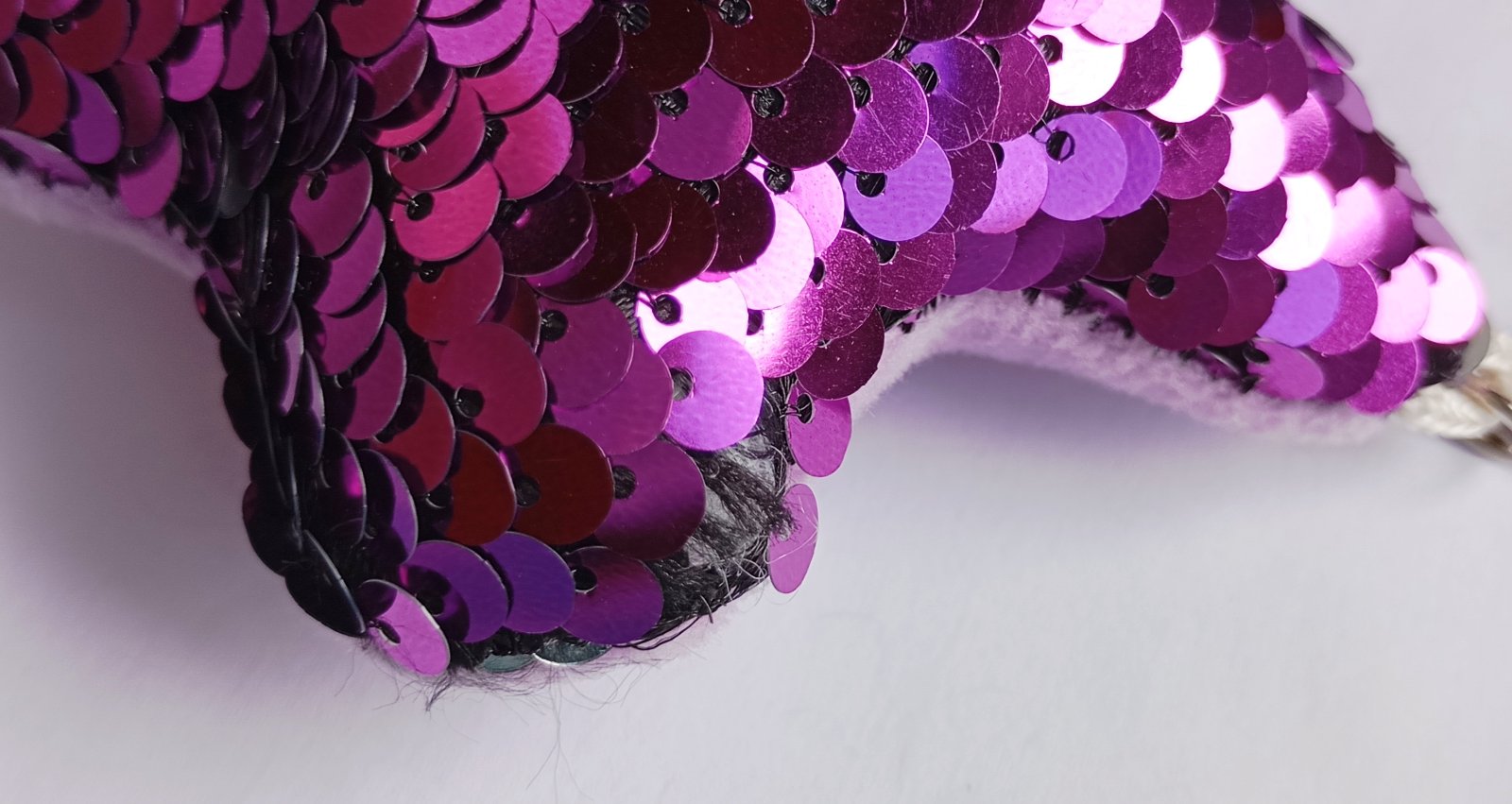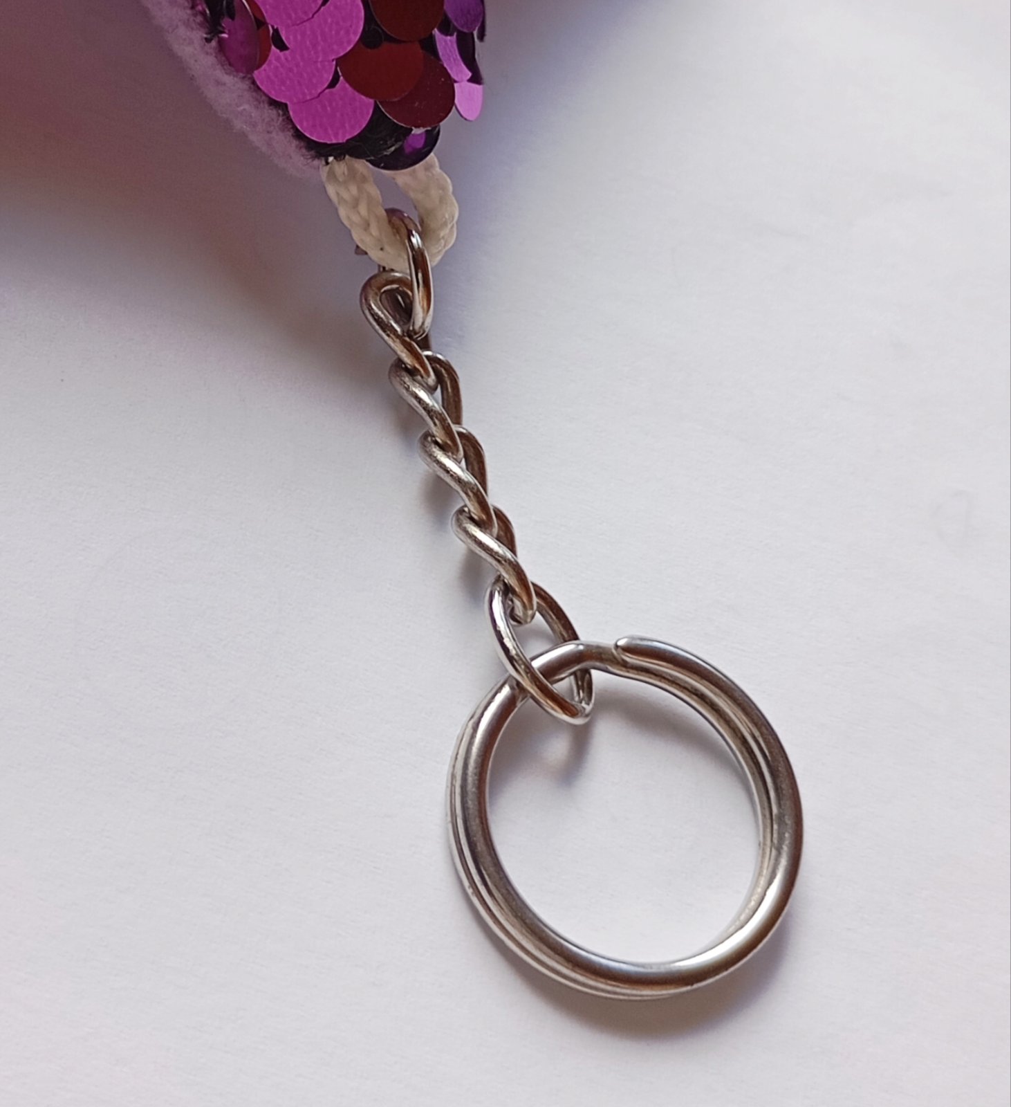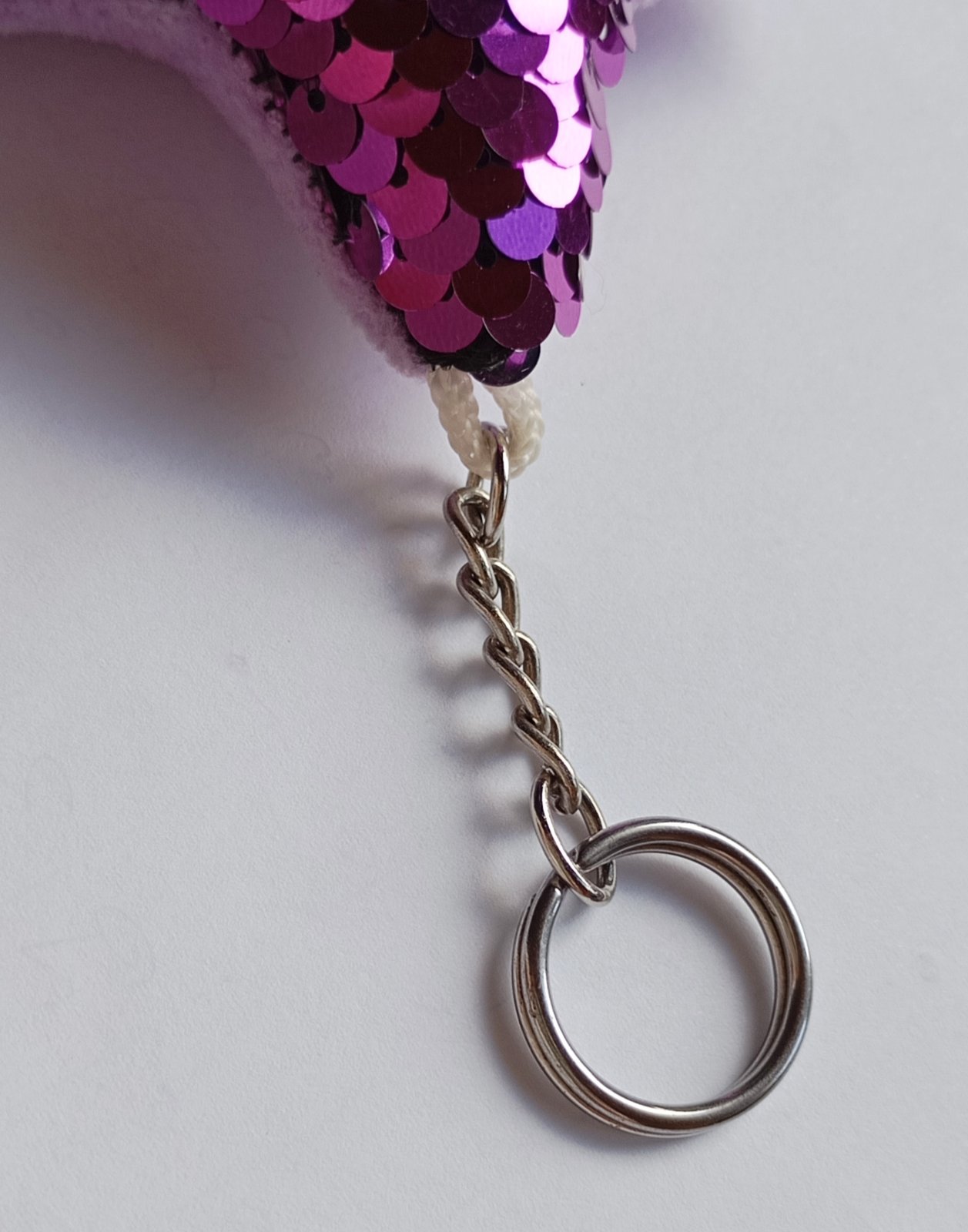 Mäkká plyšová kľúčenka resp. prívesok v tvare hviezdy, s ostroružovými (tzv. "hot pink" farba) flitrami na prednej strane.