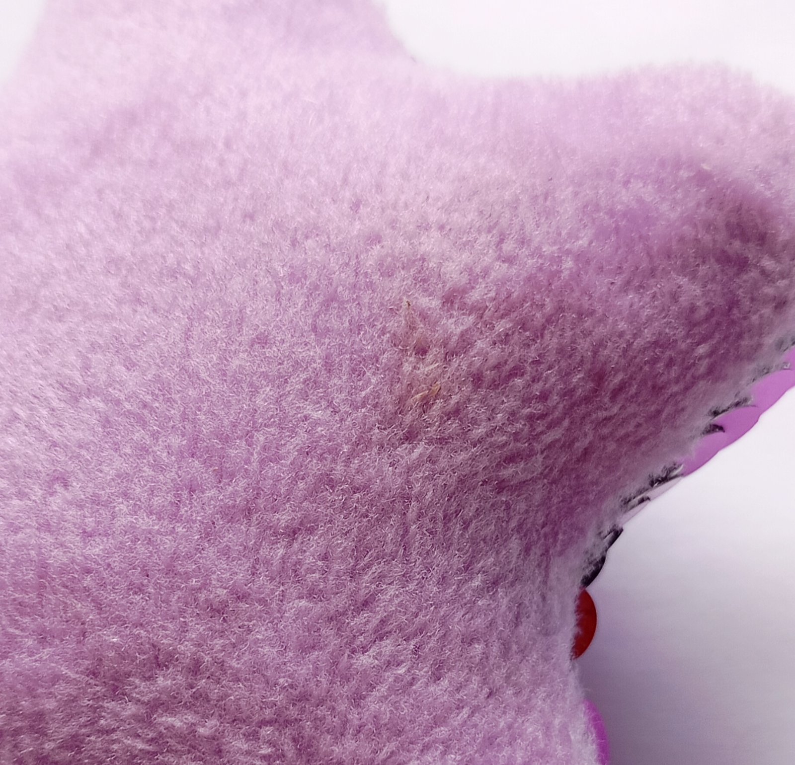 Má zopár menších nedokonalostí, ktoré možno vidieť na posledných fotografiách: na zadnej strane má malú škvrnu a na niektorých miestach popri okraji vytŕčajú nitky.