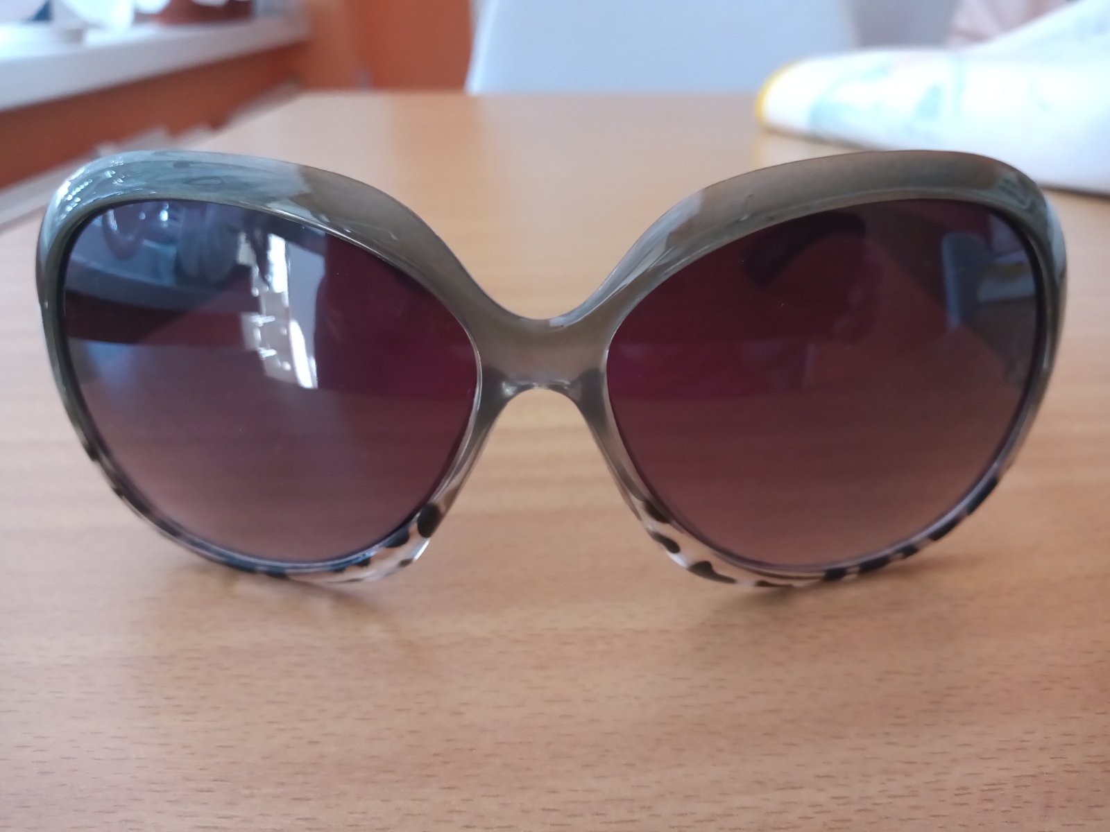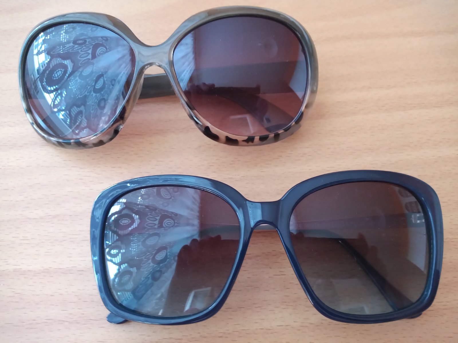 Dva kusy slnečných okuliarov, 1x modro-zlaté, 1x olivovo-tigrované. Výborný stav bez poßkodení. Cena spolu za oboje.