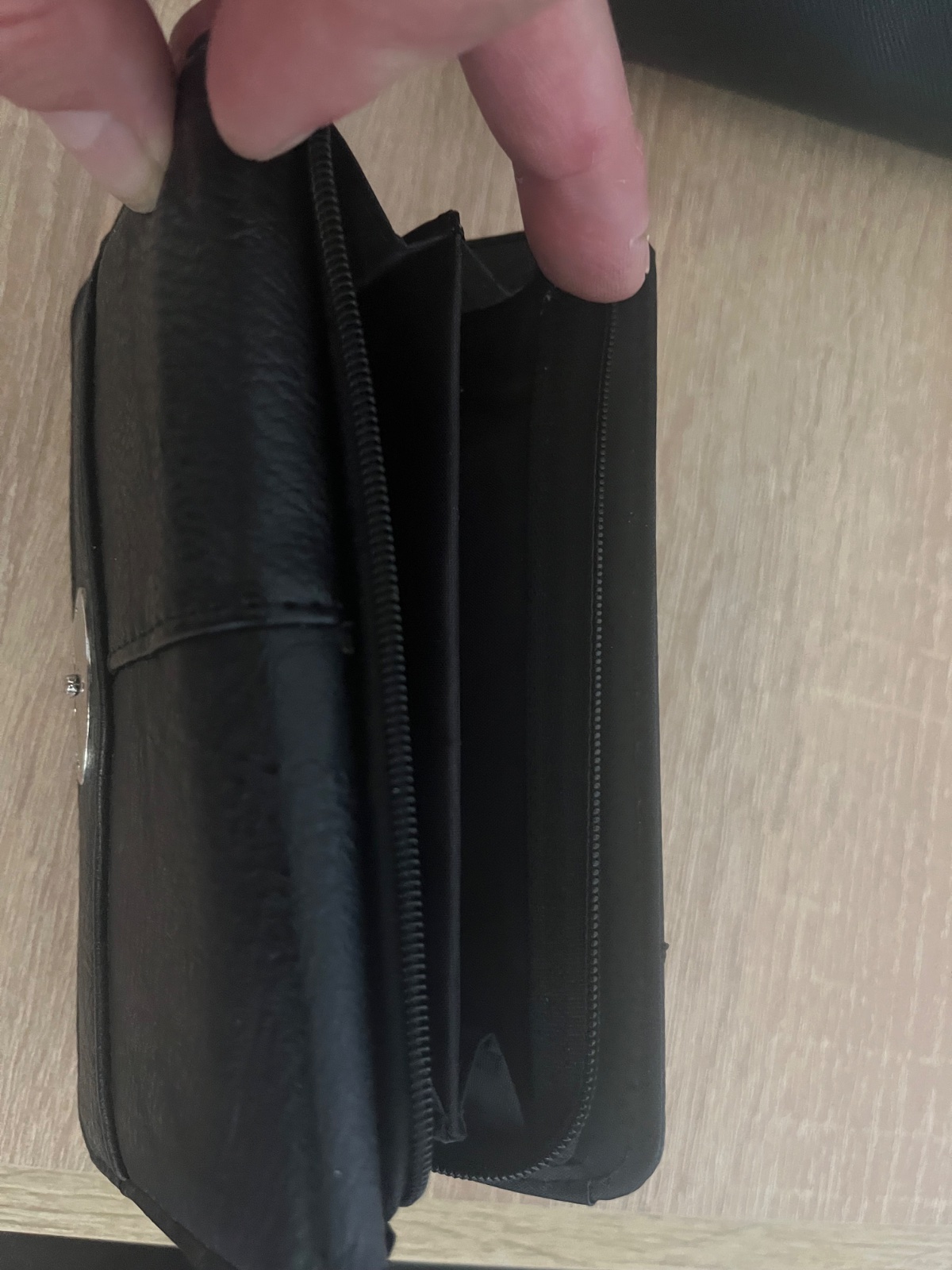 Farba čierna so strieborným kovanim Rozmer 19 x 10.5 cm Materiál: koža veľmi praktický kúsok so zipsom aj na papierové peniaze / mince