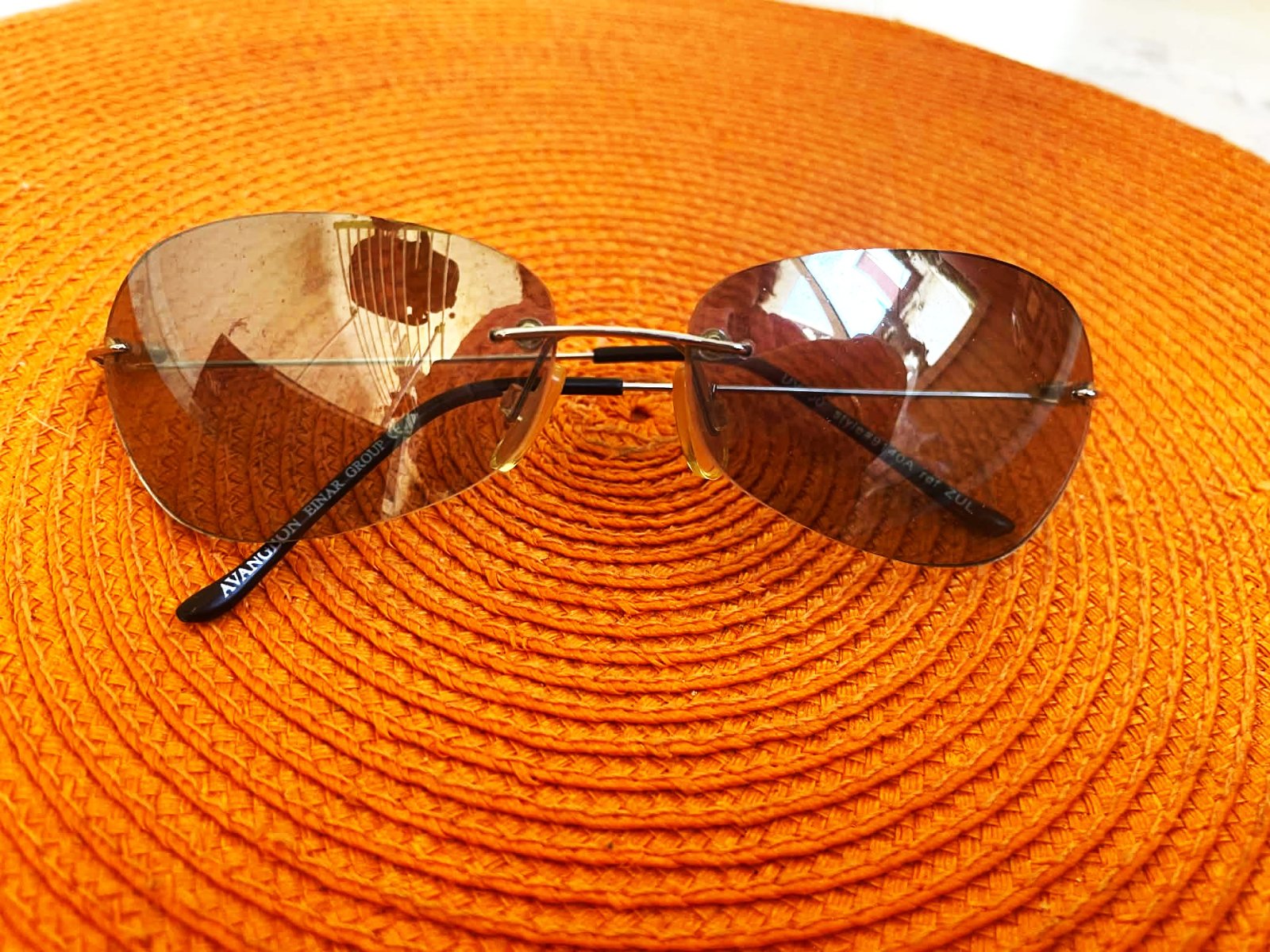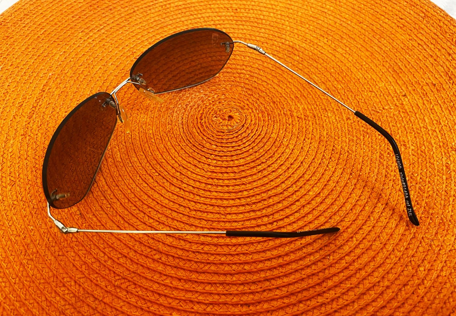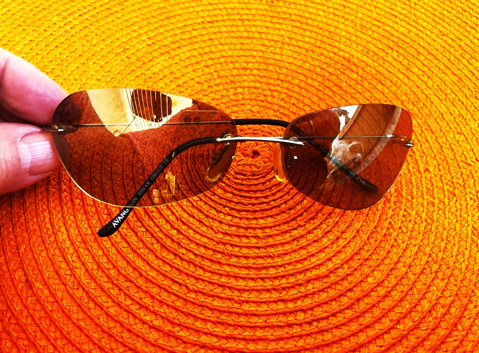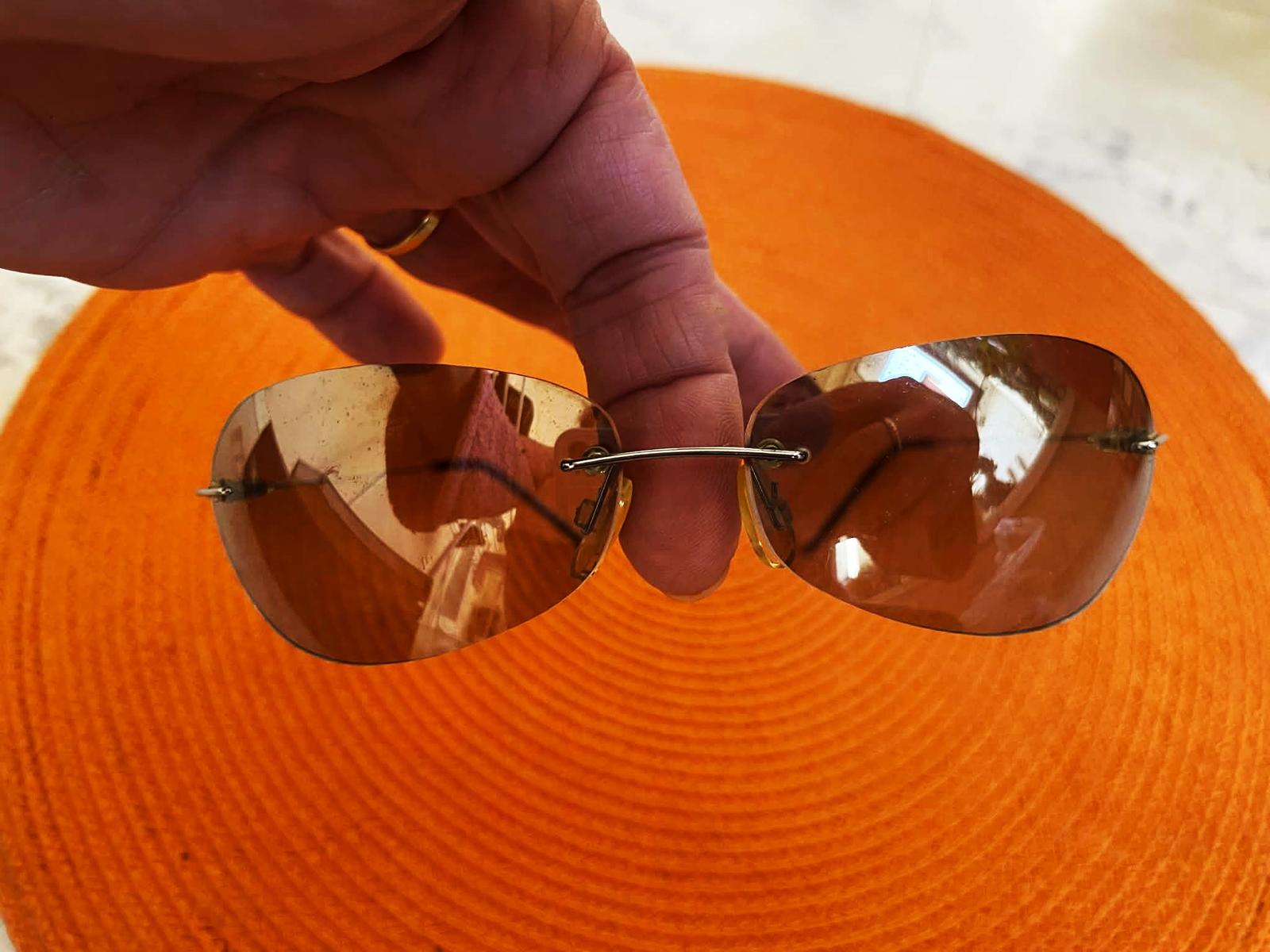 luxusné super bezrámové slnečné okuliare s hnedými tónovanými sklami a kovovými stranicam,s UV faktorom,krásne tónované sklá - jemnučké zrkadlovky, po bokoch jemne zaoblené, super sedia na tvári,vrch - je to oblúk a boky skiel sú zaoblené - cca 14 cm, rúčka po zakrivenie = 10 cm