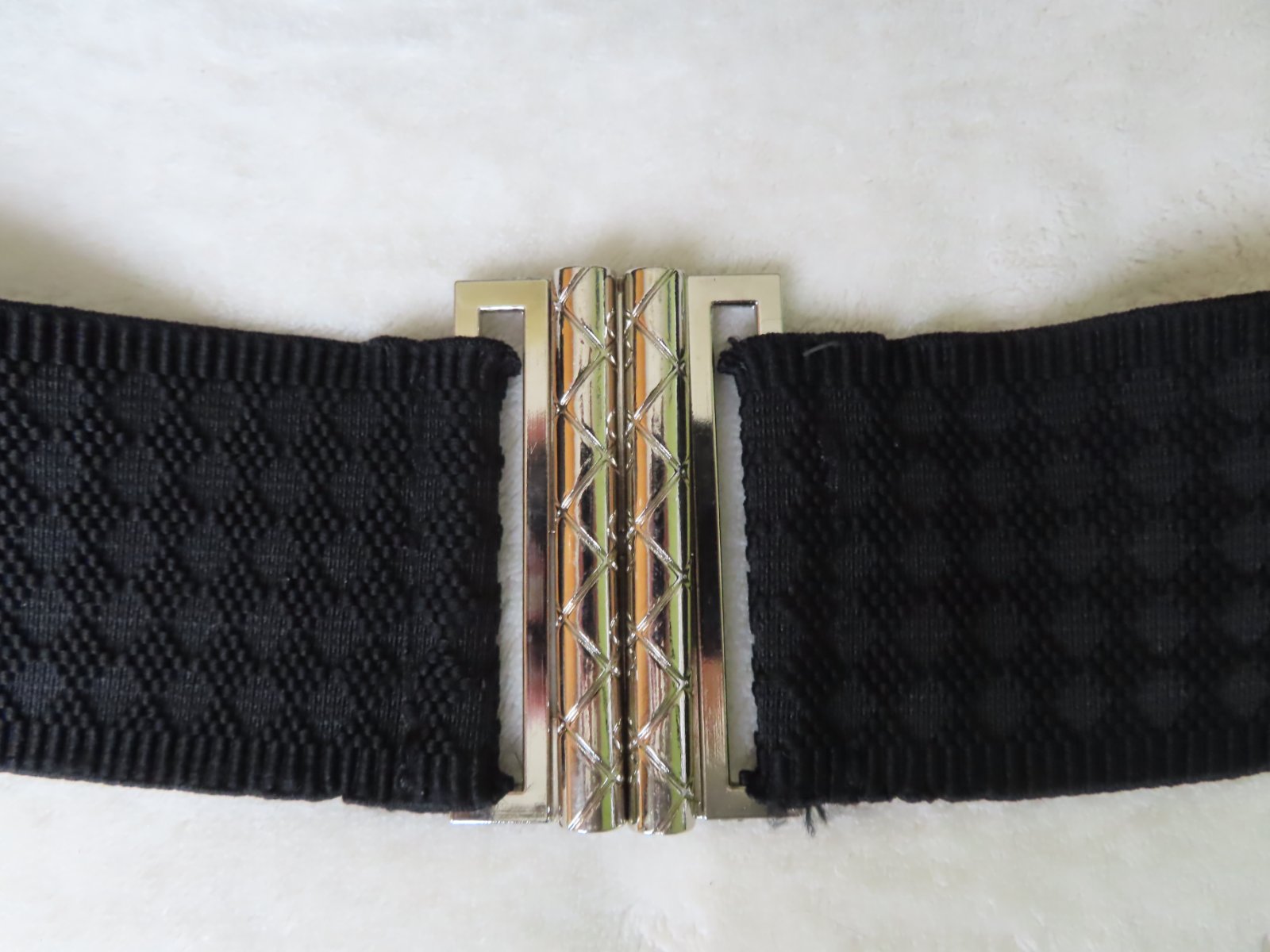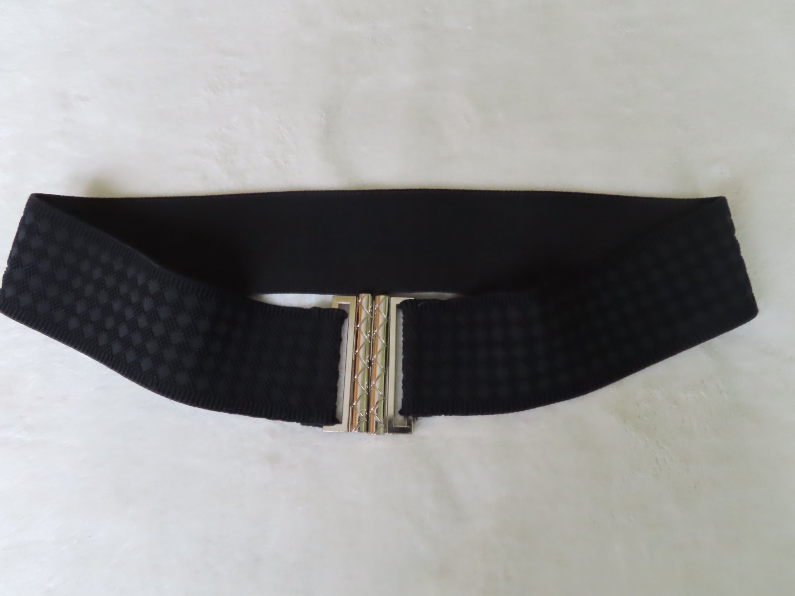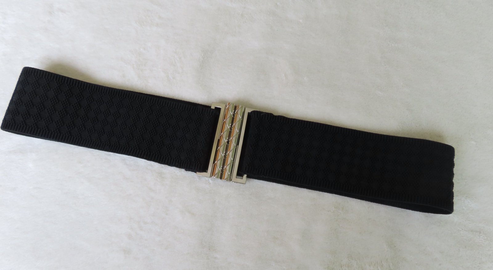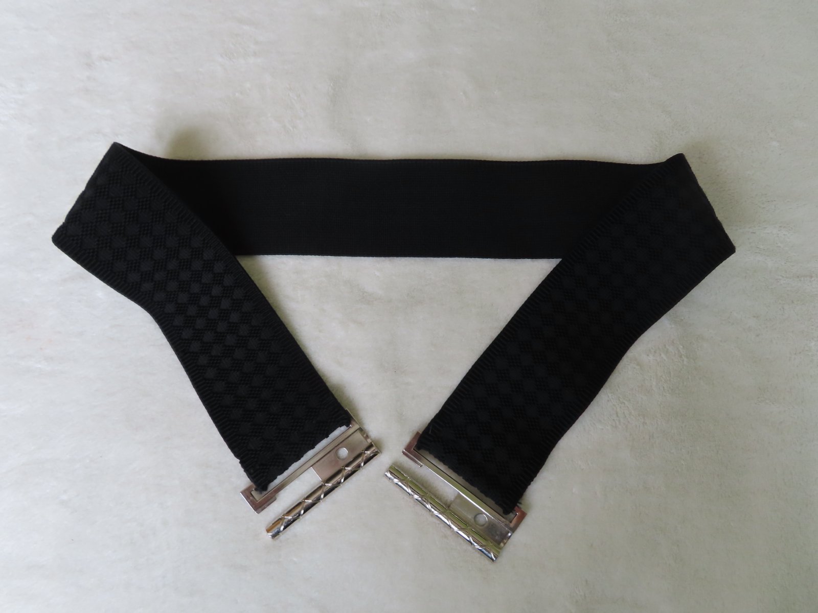 Čierny elastický opasok so zapínaním na striebornú sponu.
