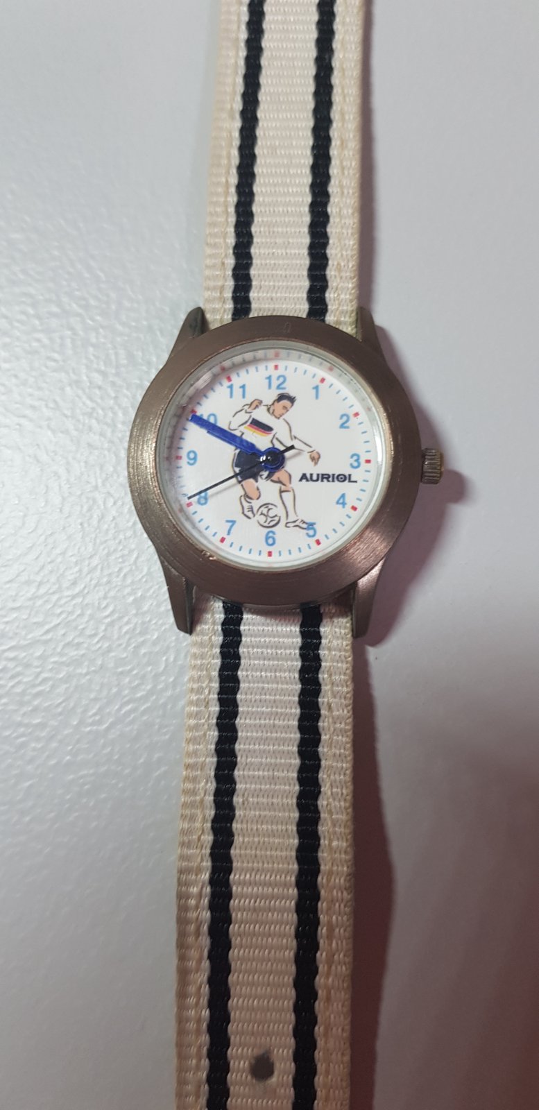 Chlapčenské hodinky, málo používané, funkčné, treba dokúpiť baterku, remienok je látkový, ale dá sa vymeniť za akýkoľvek.