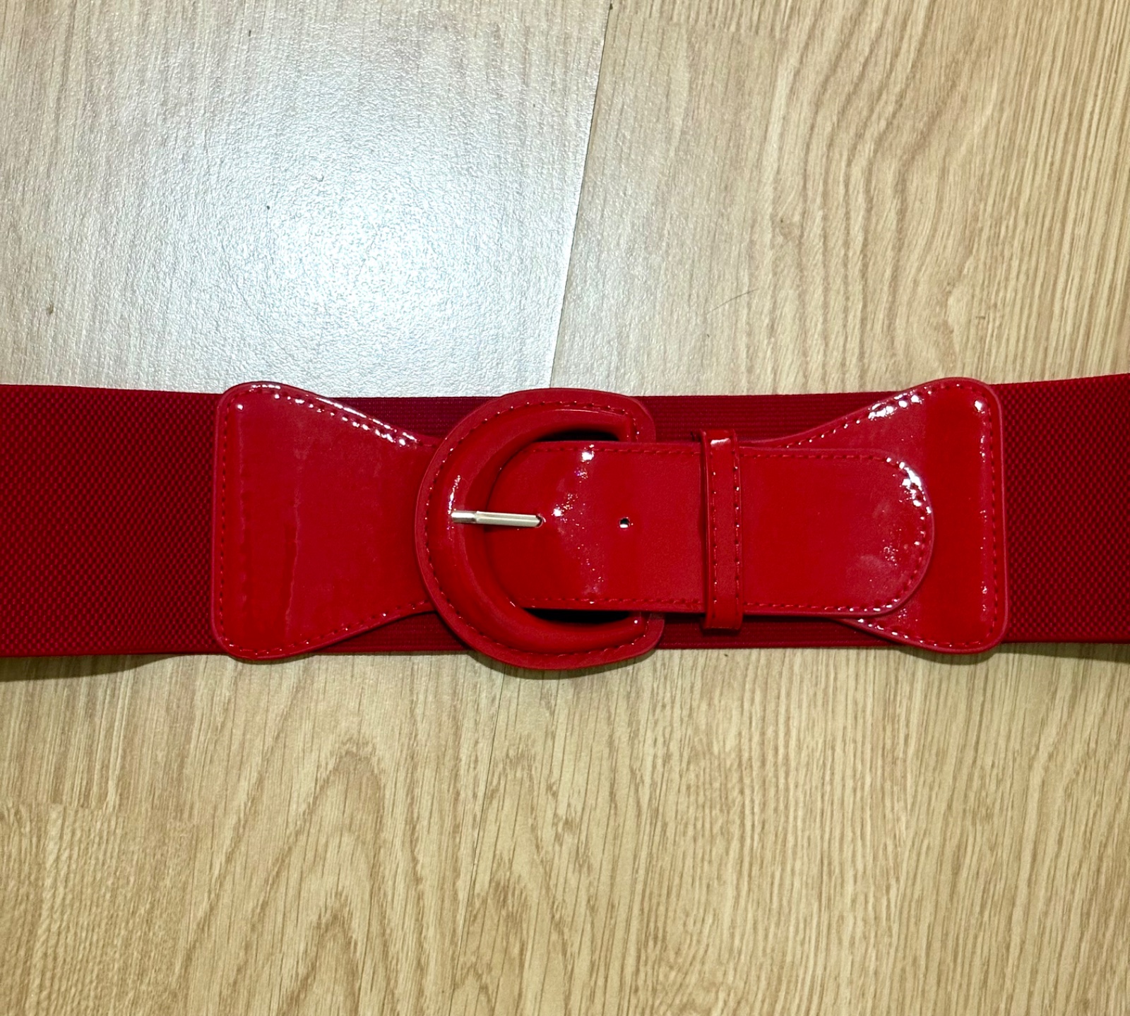 Super hrubší opasok vpredu lakovaný s elastický dielom prispôsobí sa..99cm ak sa zapne do poslednej dierky (merané v kľude,čiže sa ešte natiahne) mne je veľký.Kúpený v DE.