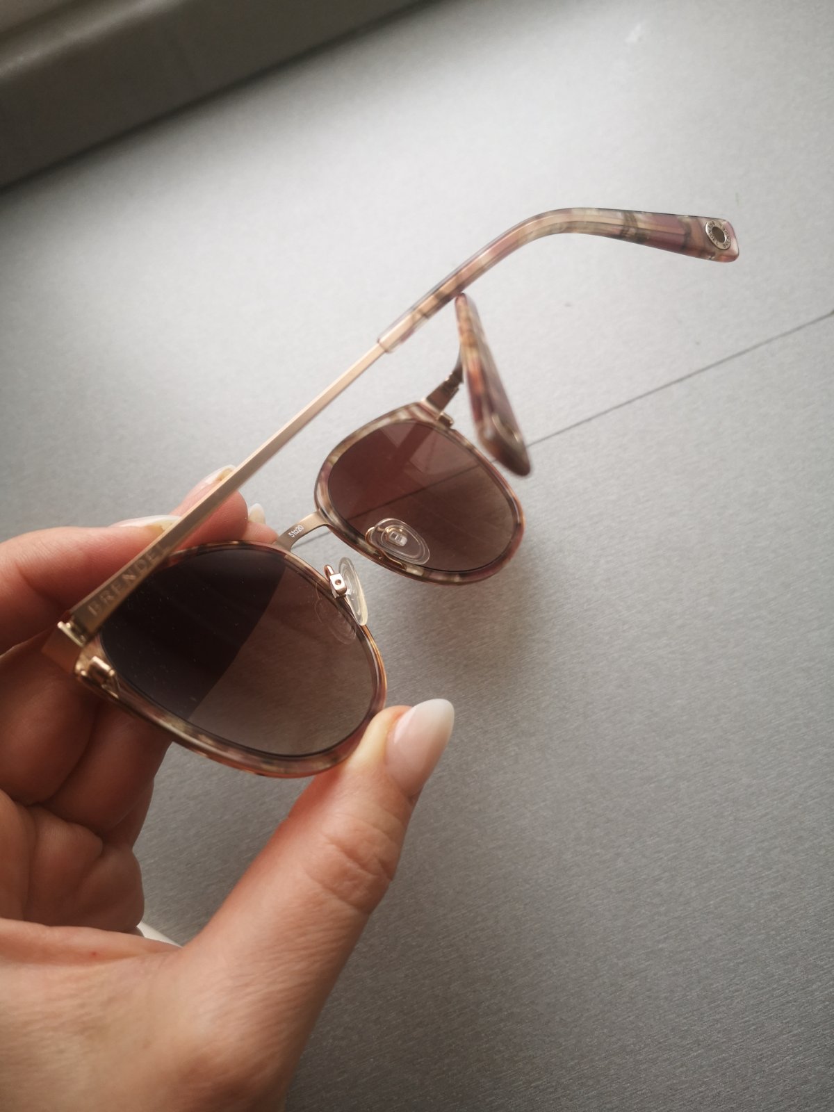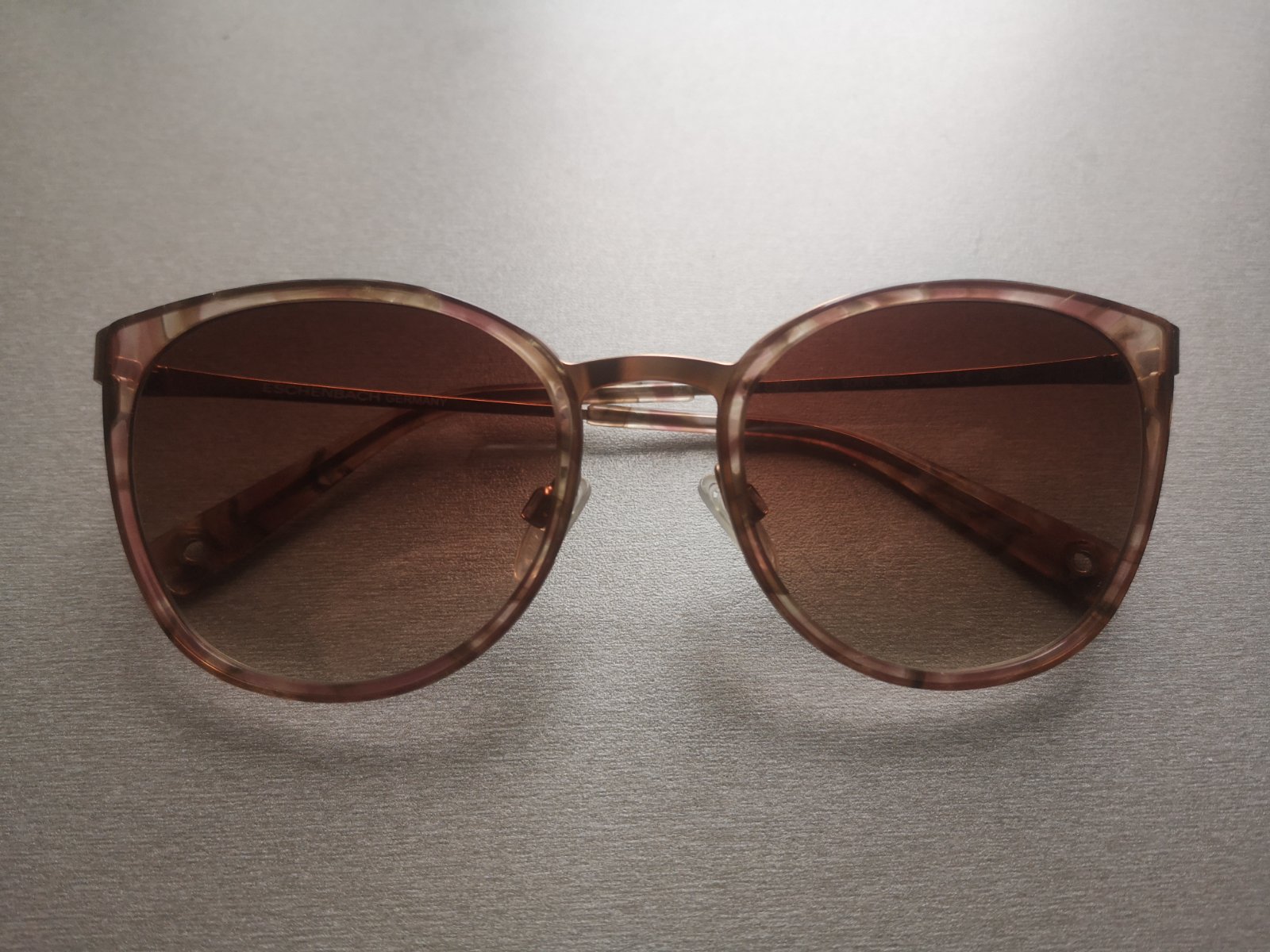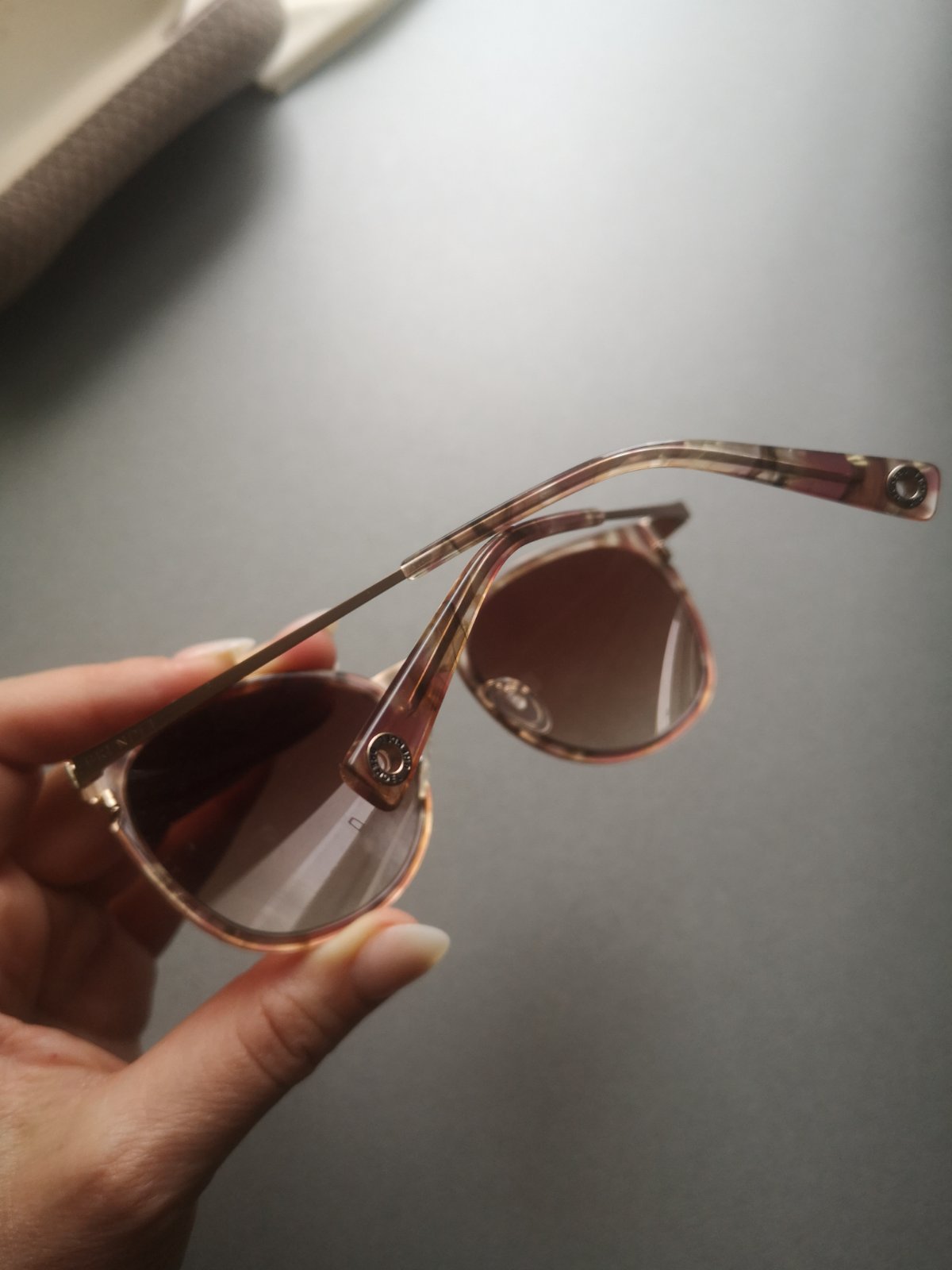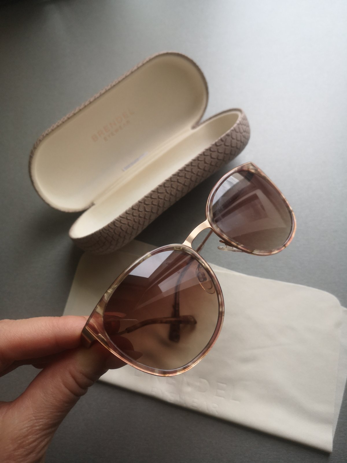 arba taká bledohneda, jemne ružová, krásne elegantné okuliare, Zn Brendel, pôvodná cena 100 eur, sú nenosené, metalické časti a plast, sedia dobre na nose. Ľahučké. Predna čast so sklickami - sirka je 13cm a vyska cca 4.6cm.