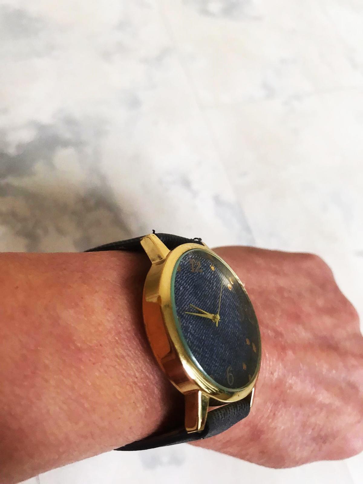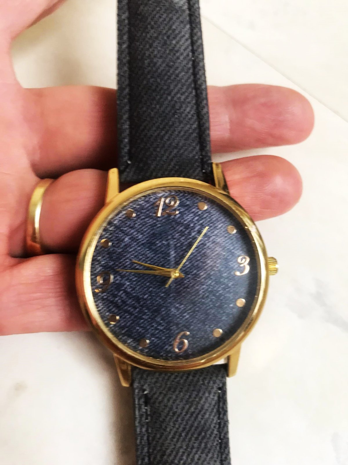 veľmi zaujímavý dizajn - vyzerá to ako riflovina,remienok aj ciferník,priemer ciferníka = 4 cm