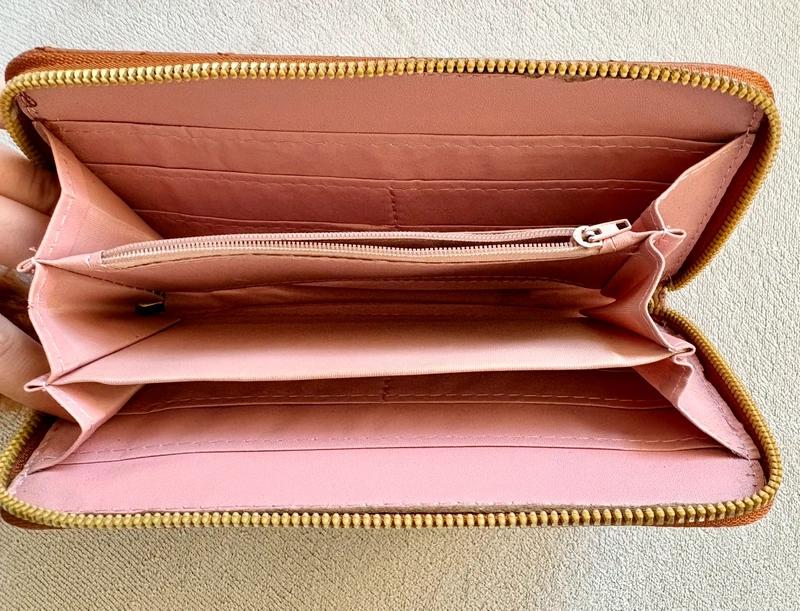 Peňaženka má dva normálne priehrady a jednu tenkú, usprostred priestor na mince, a priehradky na karty. Peňaženka bola použitá len raz, pre mňa je malá. Výška 9,50 cm Šírka 19cm