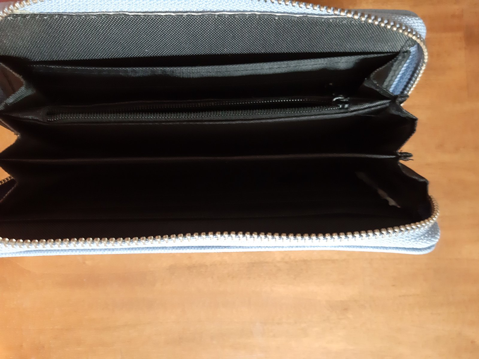 Pekna bledomodrá peňaženka. Je mala, ale veľmi priestranná. Znacka L.Credi kupovana v Peeku. Ma veľmi veľa priehradok na karty a zvlášť aj na mince. Používaná veľmi krátko. Je úplne bez poškodenia....