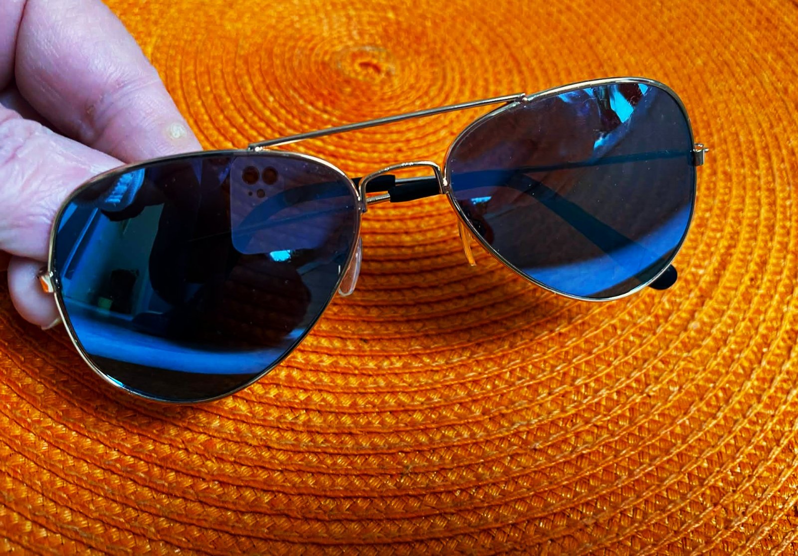 krásne ľahúčke moderné zrkadlovky,jemný zlatý rám,nosené min.,pekne sedia na tváričke, dlžka rámu hore = 12 cm,sklo 5 / šírka / x 4 cm / výška / &