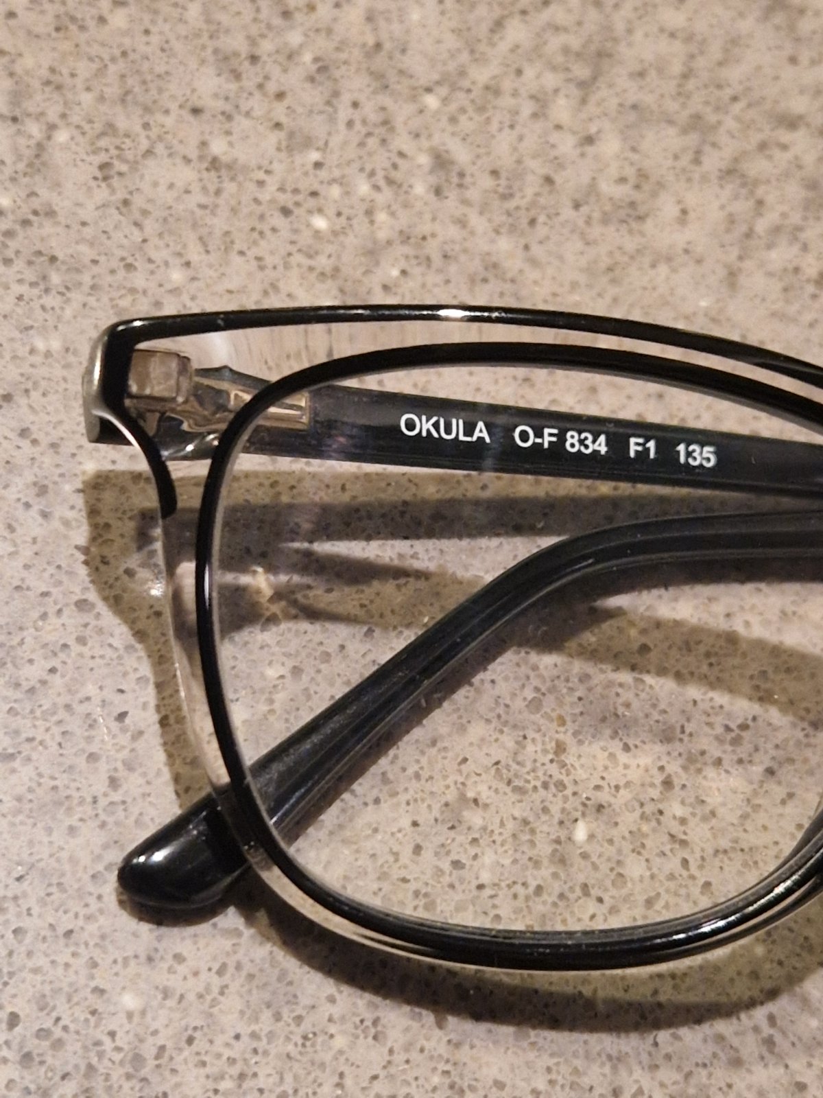 Zaujímavé plstové okuliare, ľahké , bez poškodenia. Dcéra nosila 1rok len v škole. Orientačne,keď mala 12-13r.