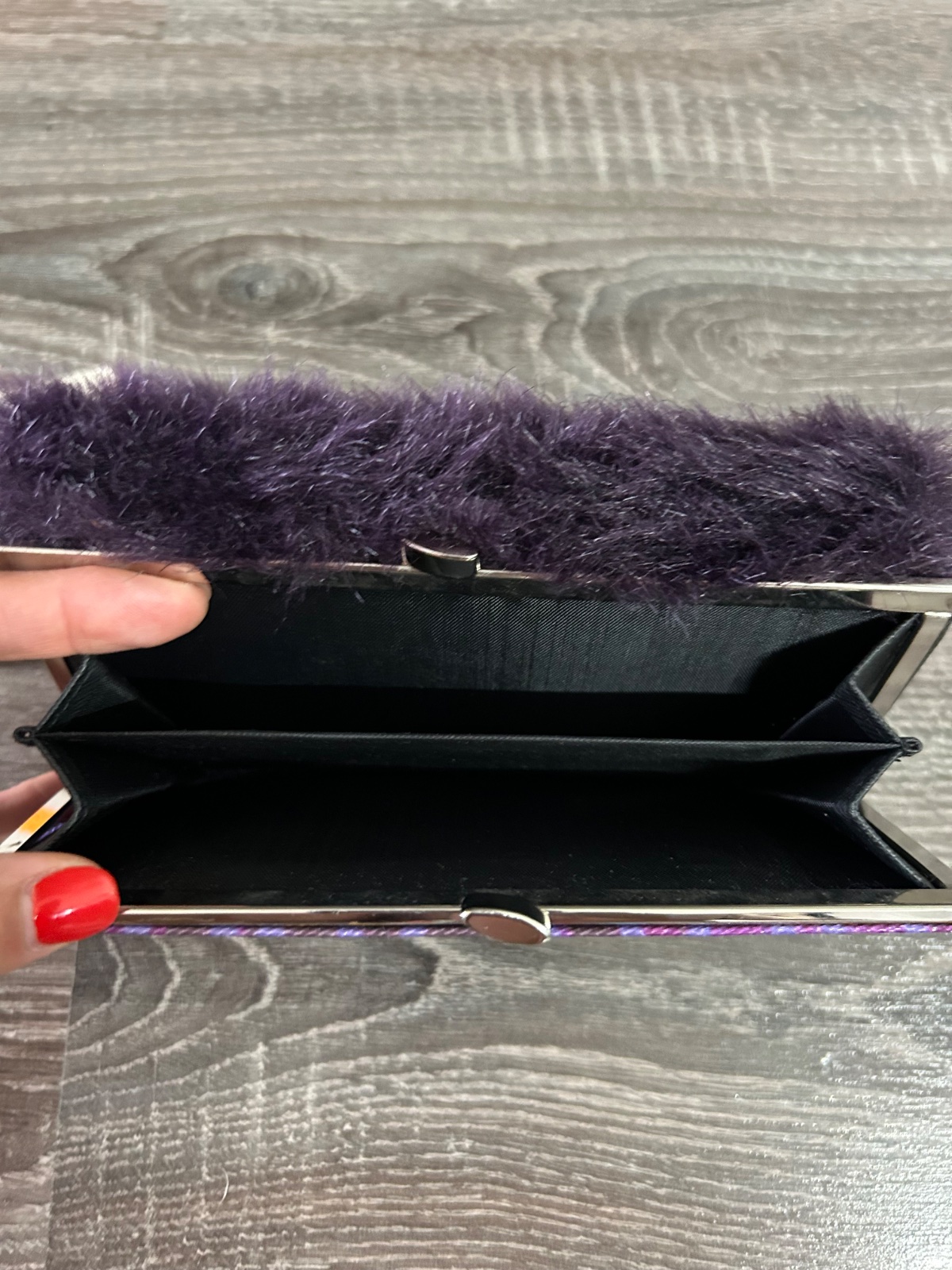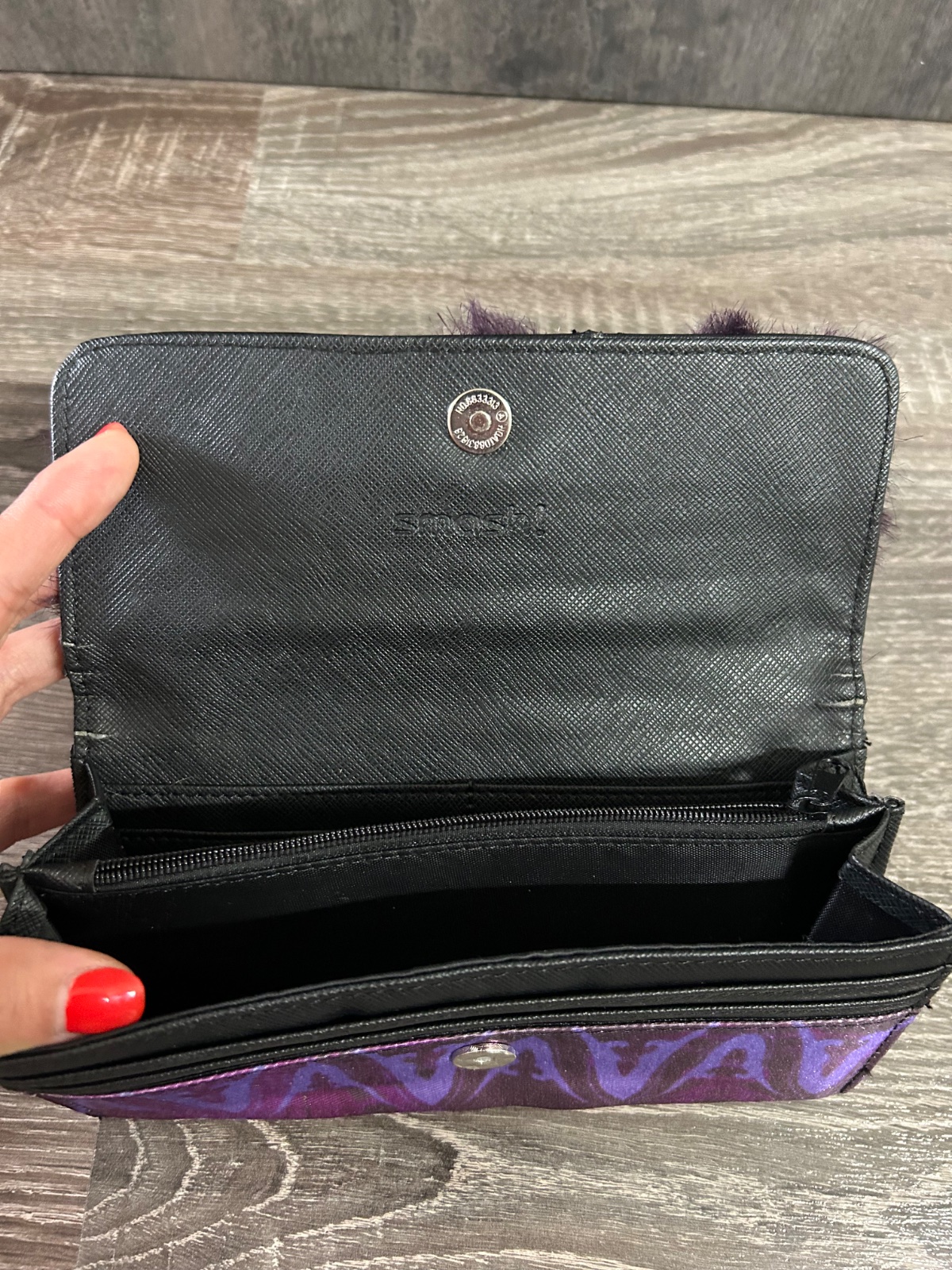 87.Smash damska penazenka s kozusinkou, velka ma kopec priehradok.Na niektorych miestach mierne poskodena kozenka