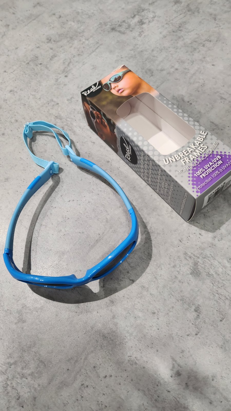 Nezlomiteľné rámy- aspoň tak je uvedené na krabičke, ale pri chlapcoch nikdy neviete. 100% UVA/UVB. S pomocnou gumičkou za krk.