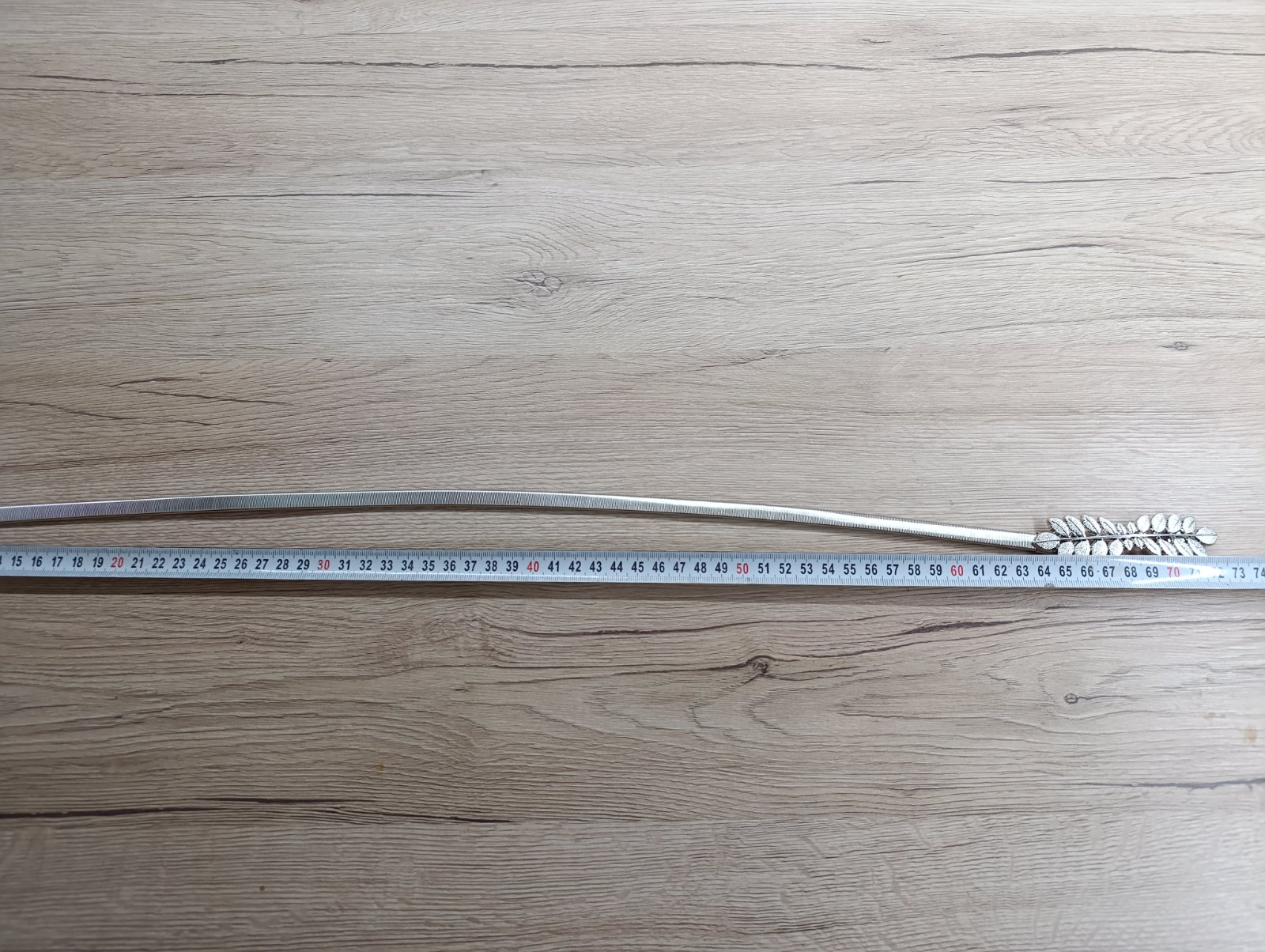 Hrúbka 3,5 cm, dĺžka aj s prackou 101 cm, po prvú dierku 77 cm