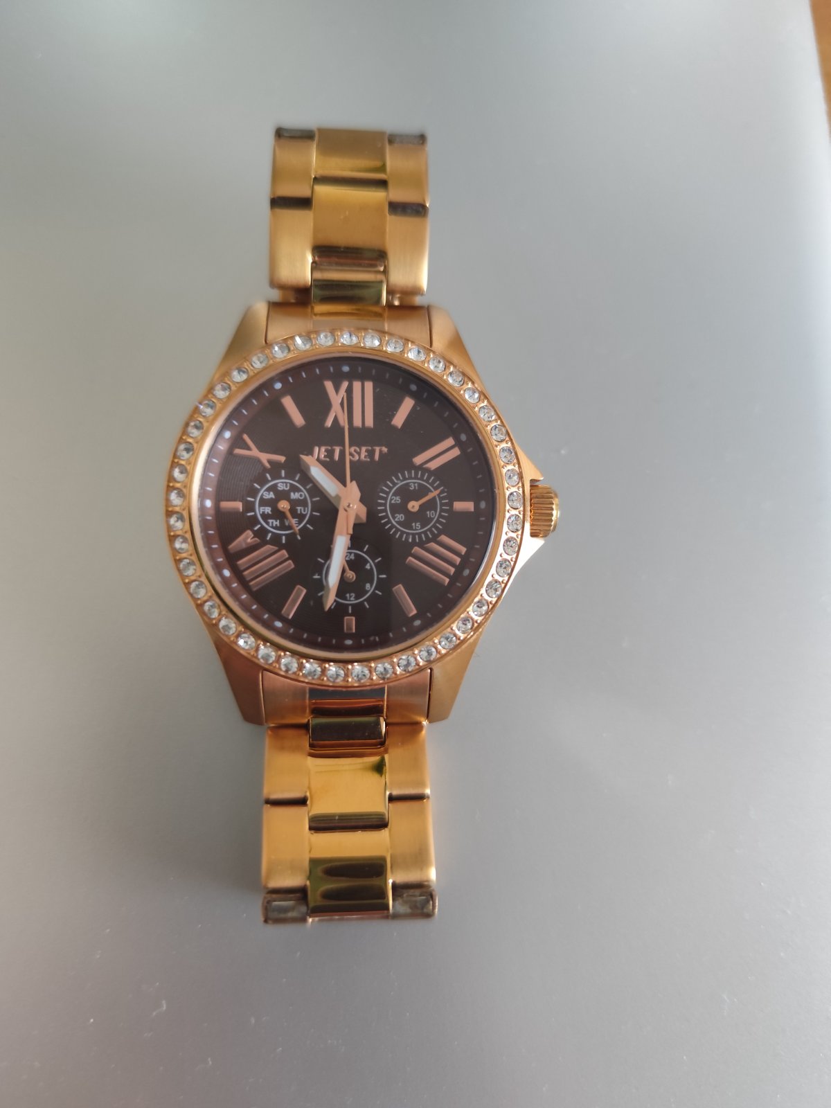Predám krátko používané originálne hodinky značky Jet Set, farba medená, ciferník je hnedý,typ Like J5982R-722, chirurgická oceľ. Už nie sú v záruke, ale fungujú stopercentne. Remienok sa dá upravovať.Priemer ciferníka cca 4cm, minerálne sklo, strojček Quartz, vodotesnosť 3ATM/30m.Krabičku už nemám. Je potrebné vymeniť baterku