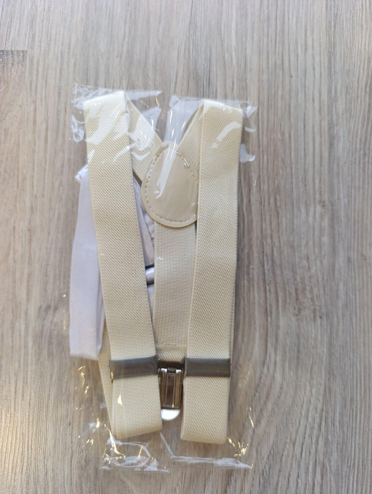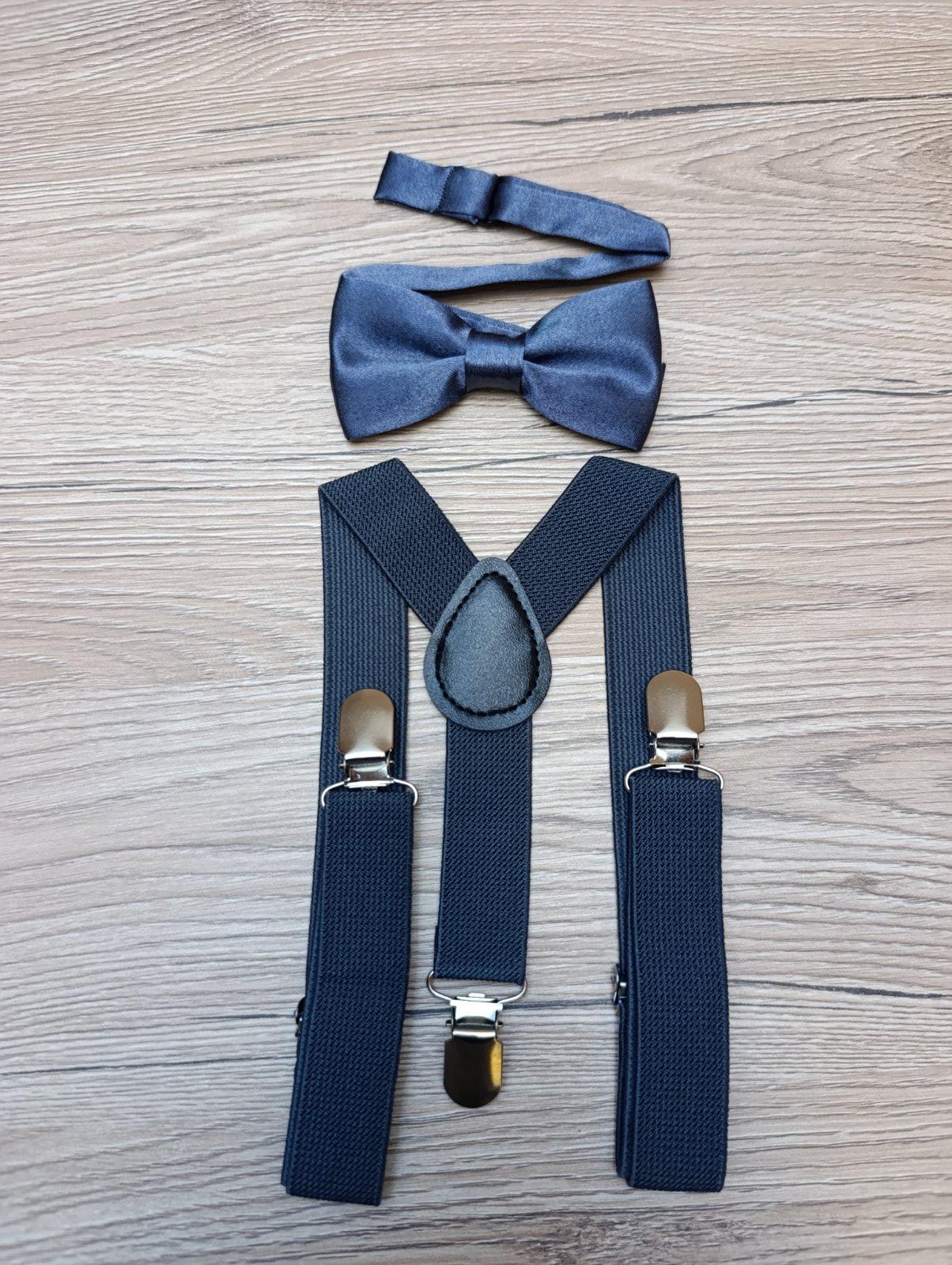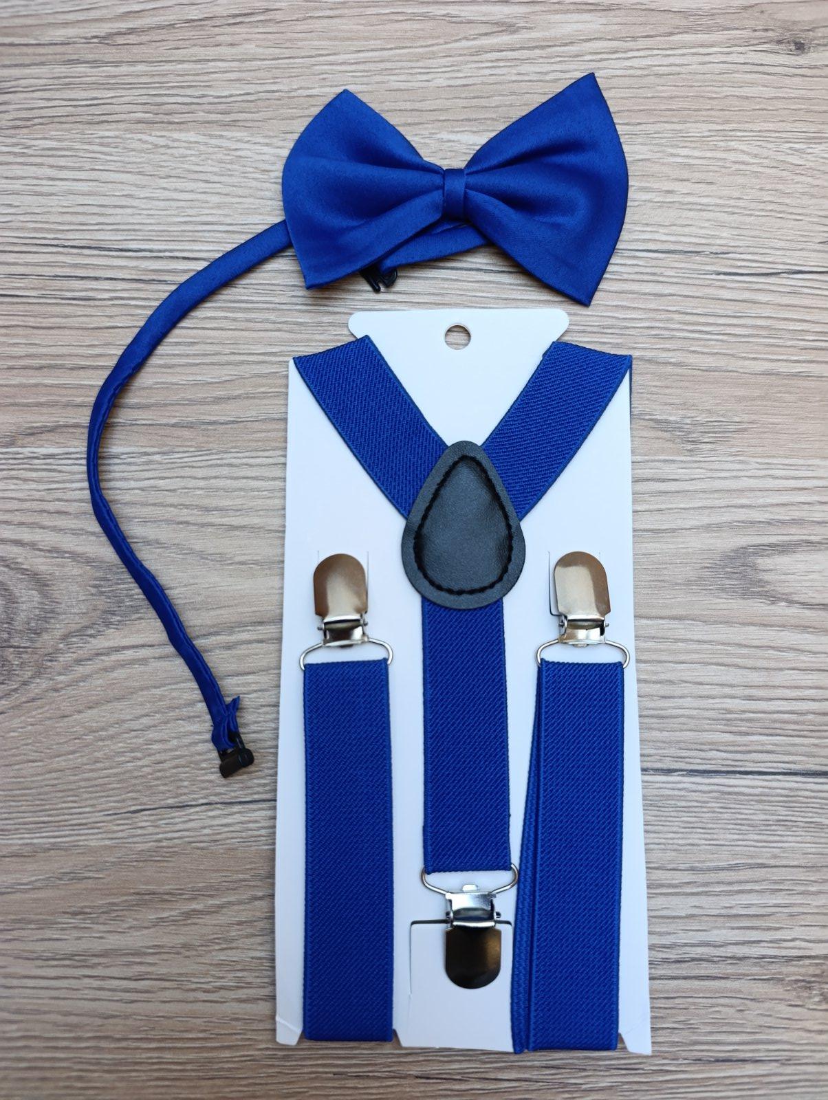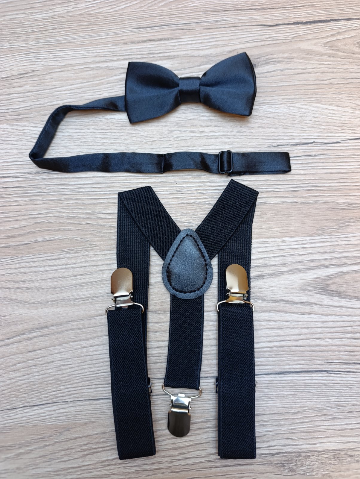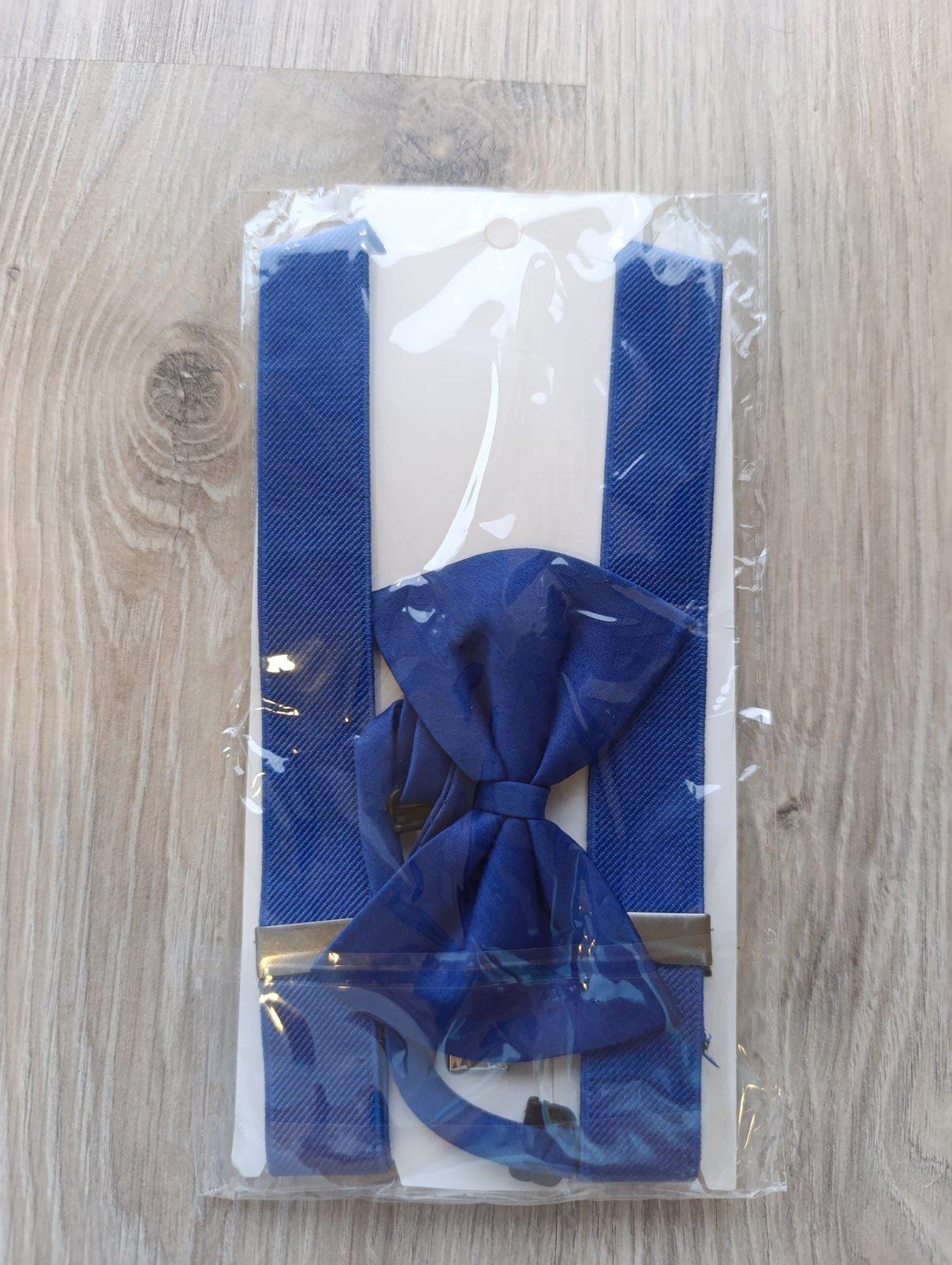Materiál: Motýlik - polyester, Traky - elastické a kovové spony