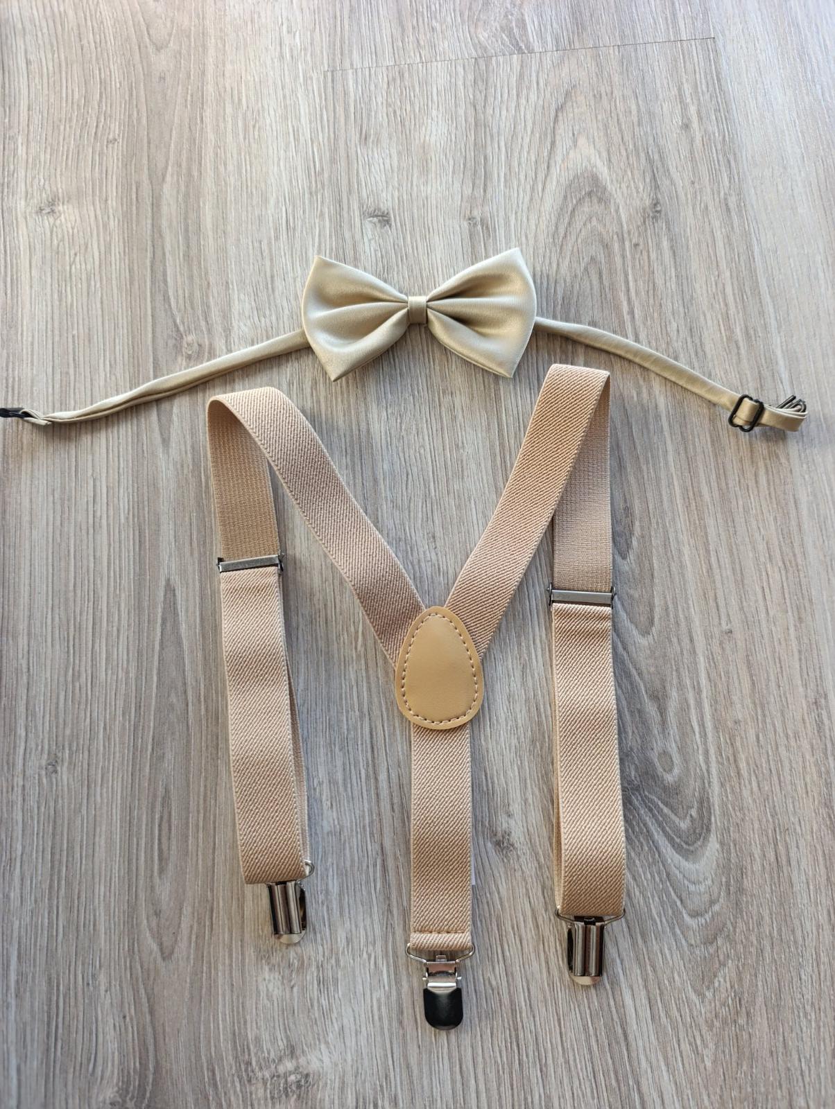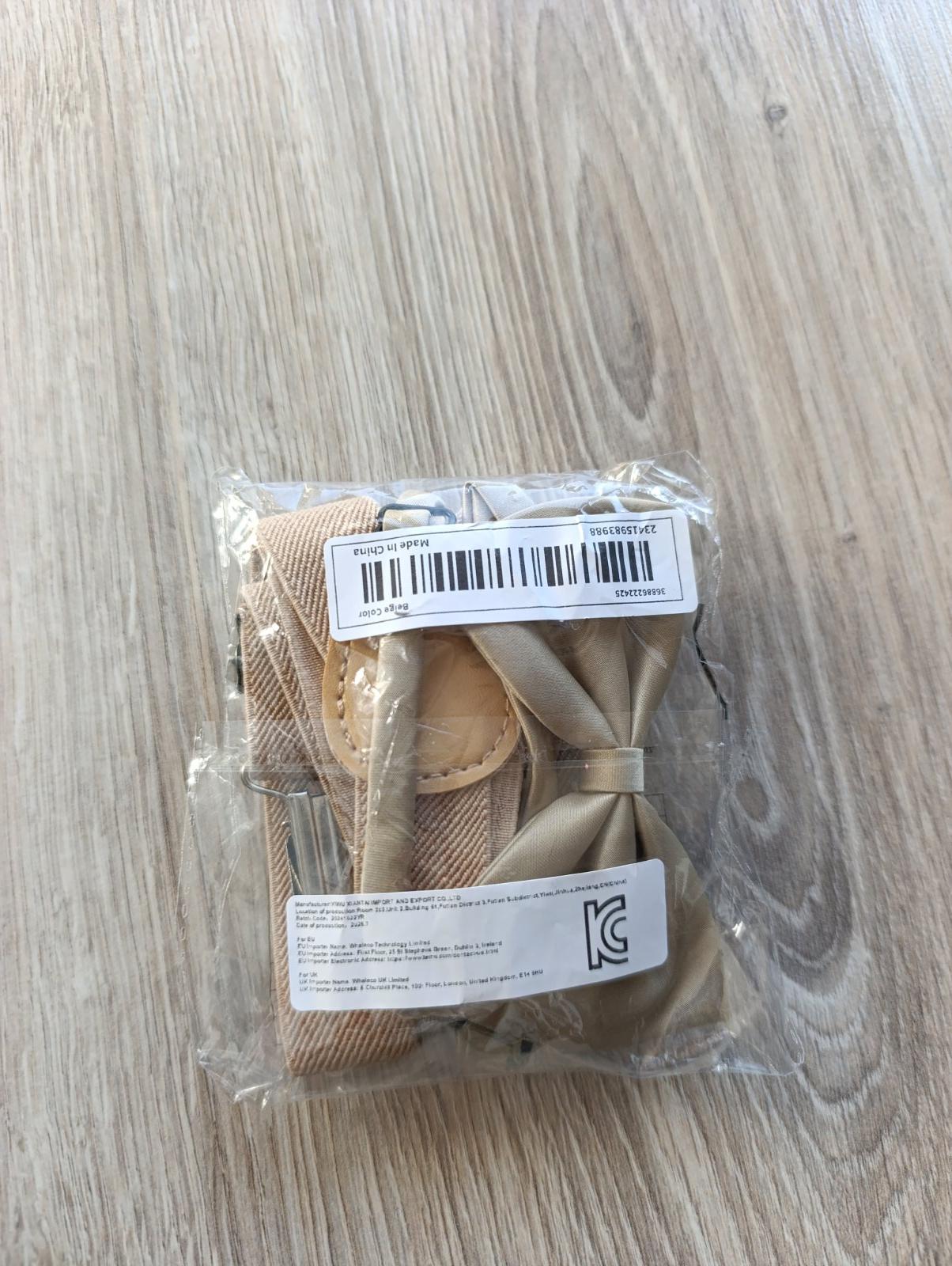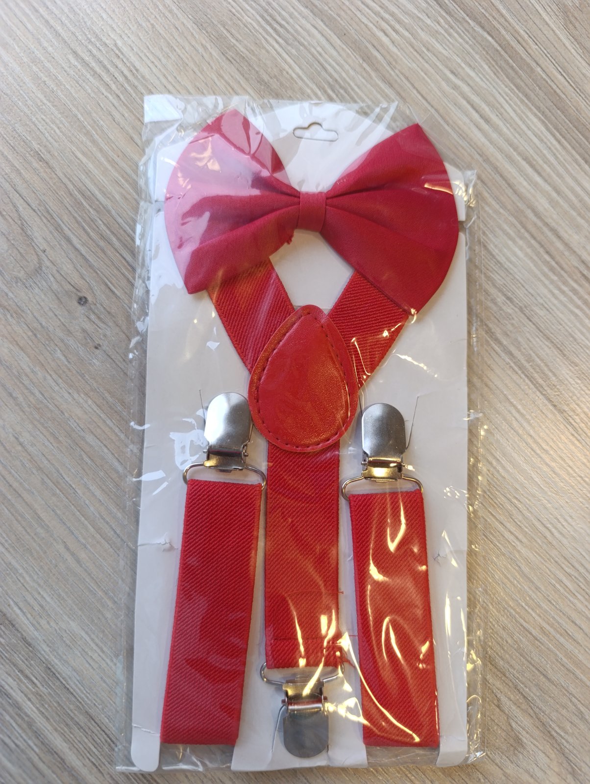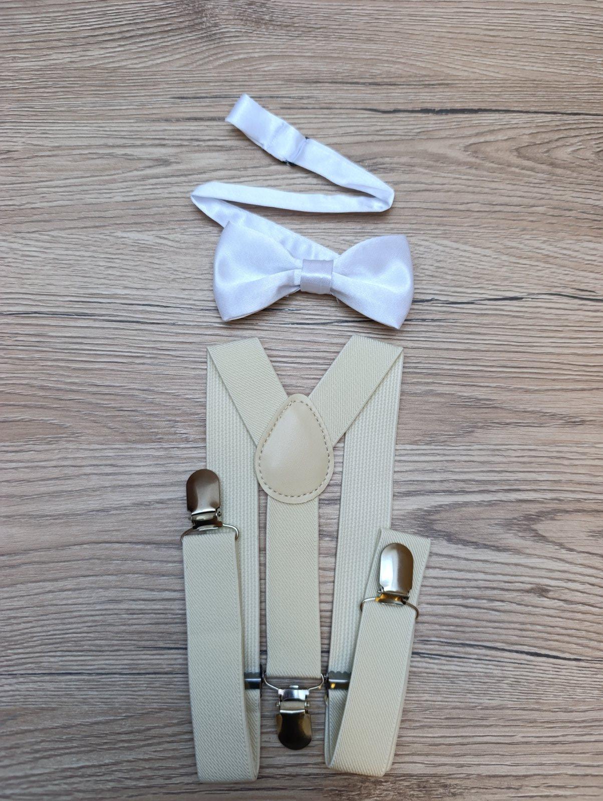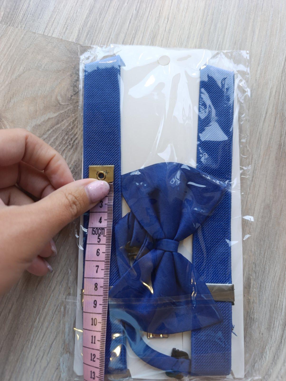 Materiál: Motýlik - polyester, Traky - elastické a kovové spony