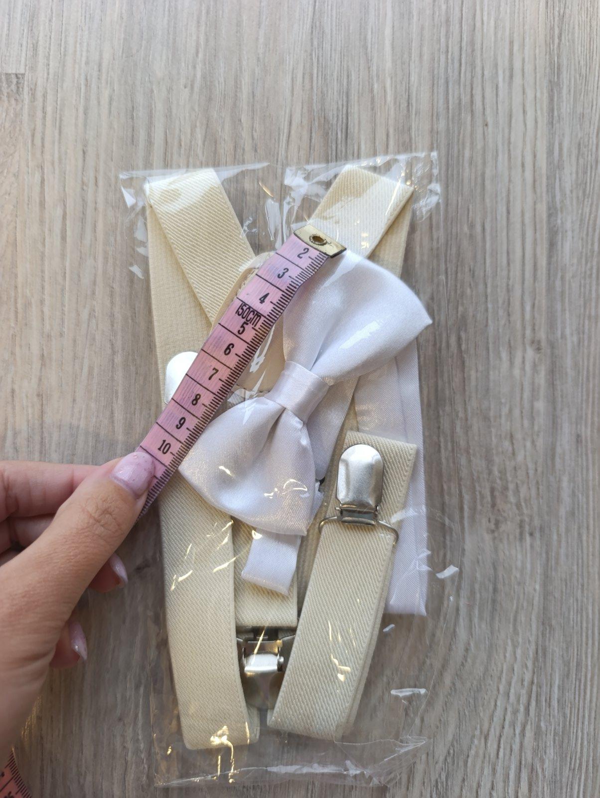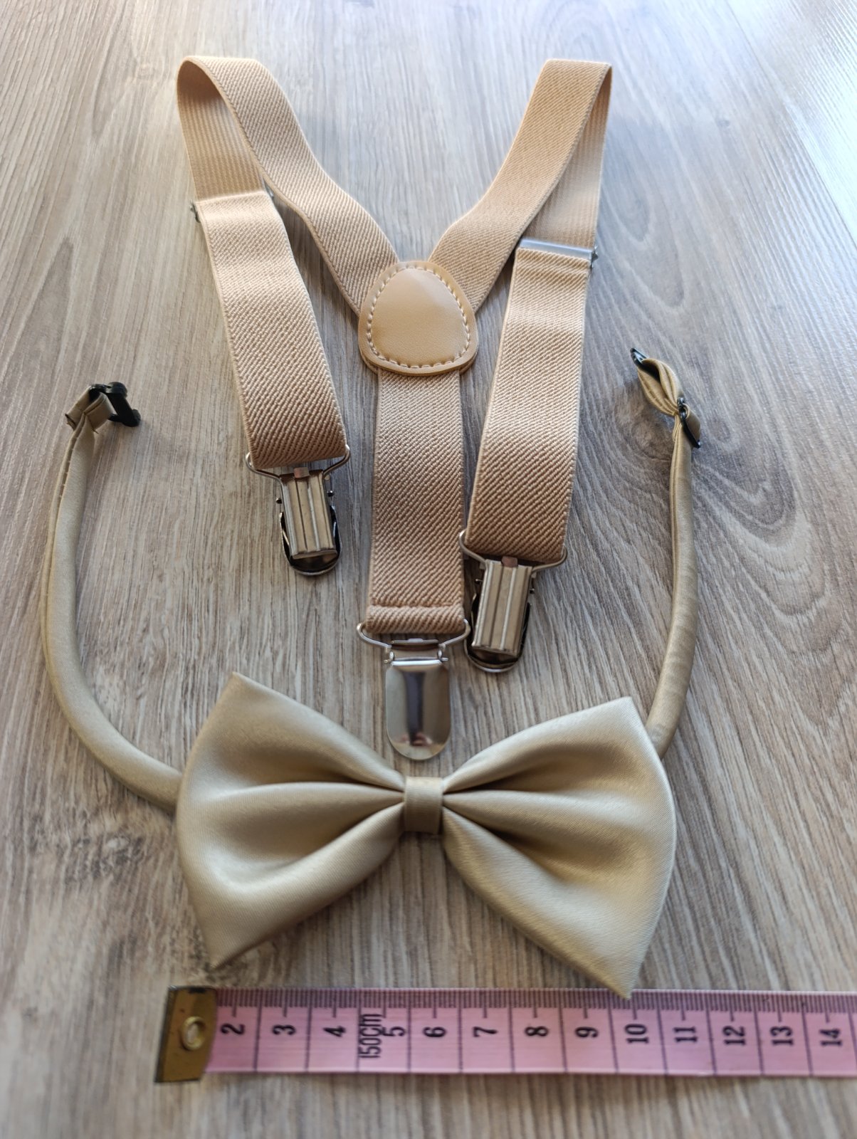 Rozmery: Motýlik - nastaviteľná veľkosť, max obvod 46 cm, Traky - nastaviteľná veľkosť, max dĺžka 65 cm, šírka 2,5 cm