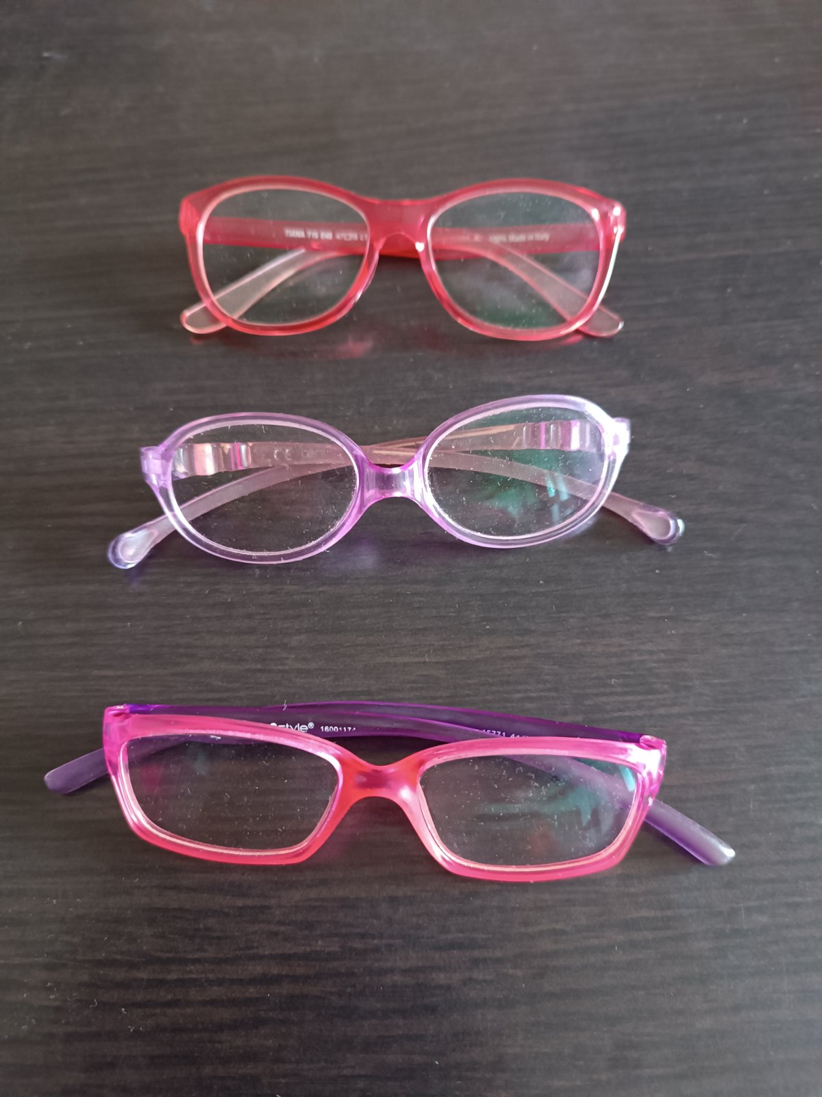 Predám rám okuliarov tmavočervenej farby. Dcéra ich nosila medzi 4 - 6 rokov. Na prvý pohľad vyzerajú vo veľmi dobrom stave. Zblízka na nich vidno pár škrabancov a pohrýzene koncovky.