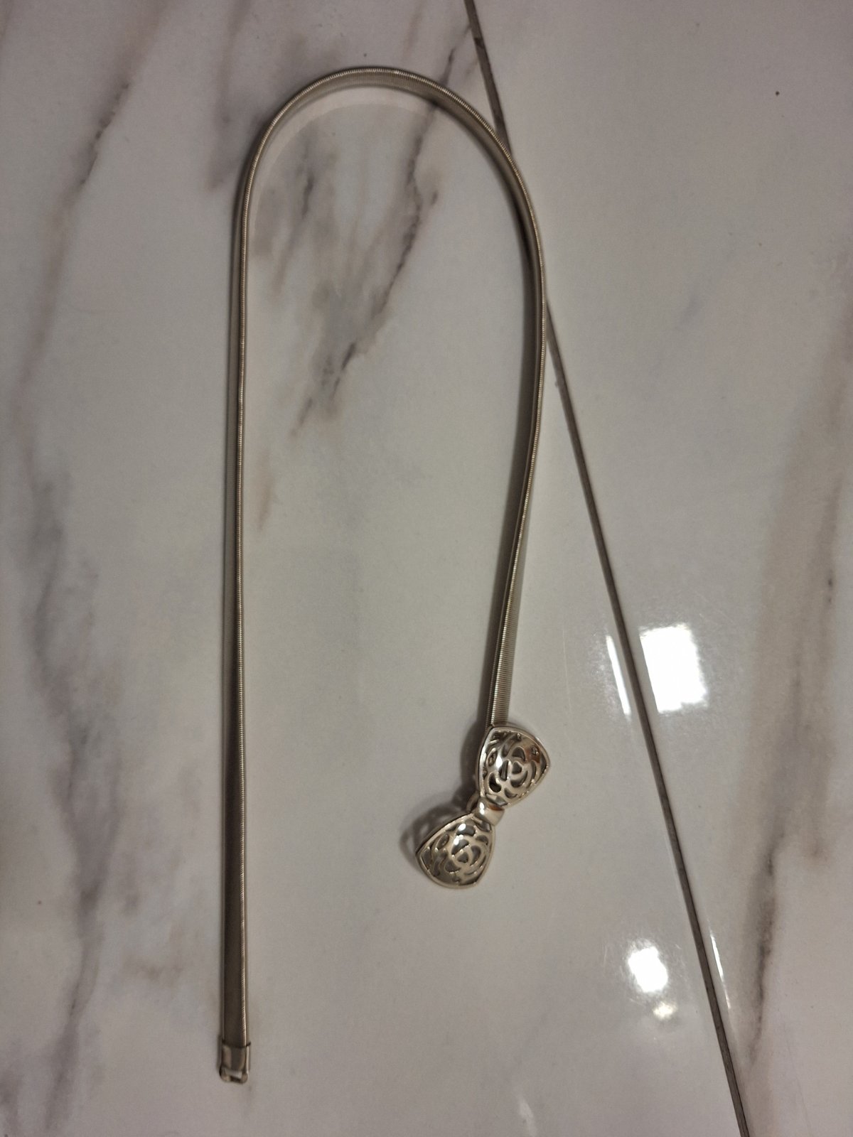 Kovový strieborný opasok