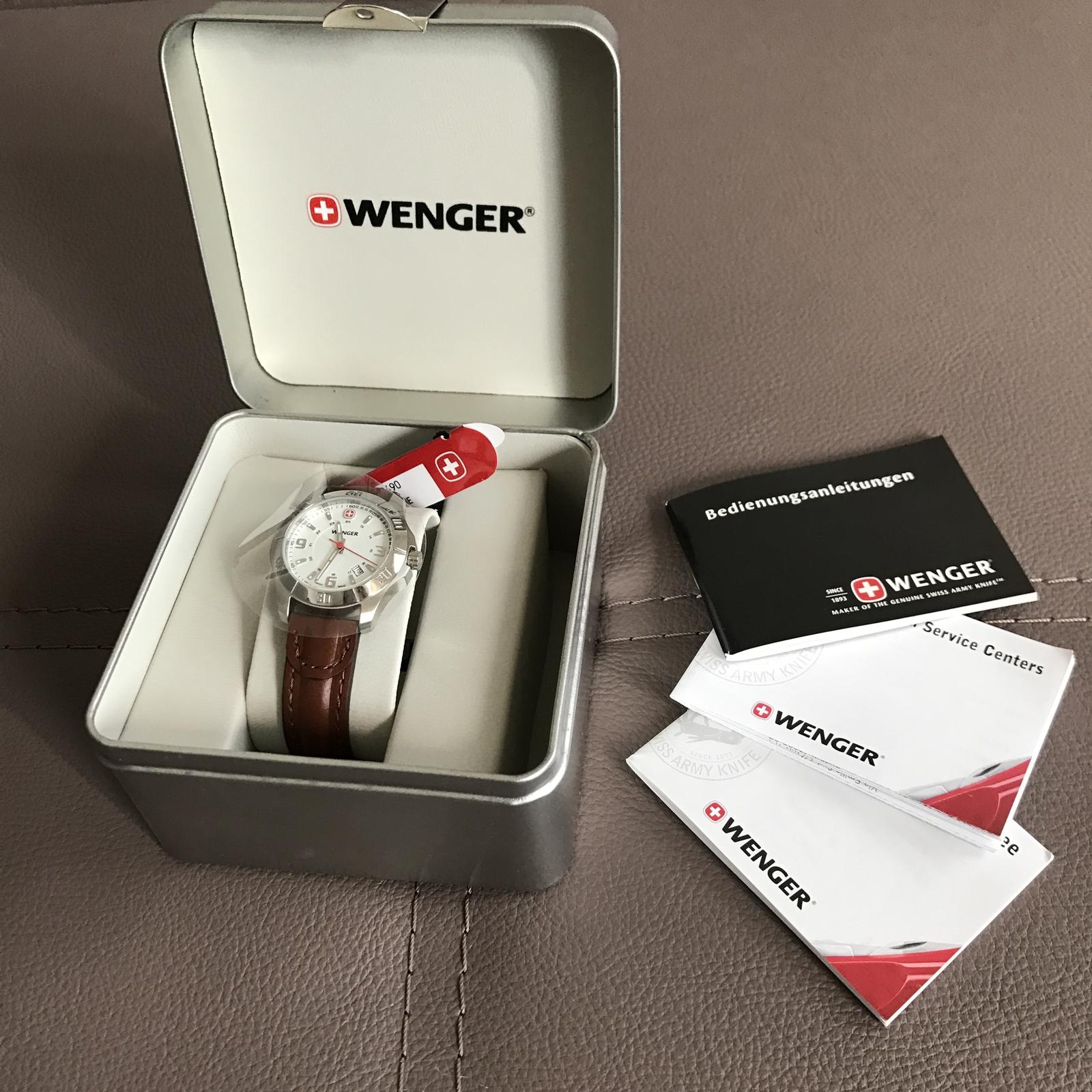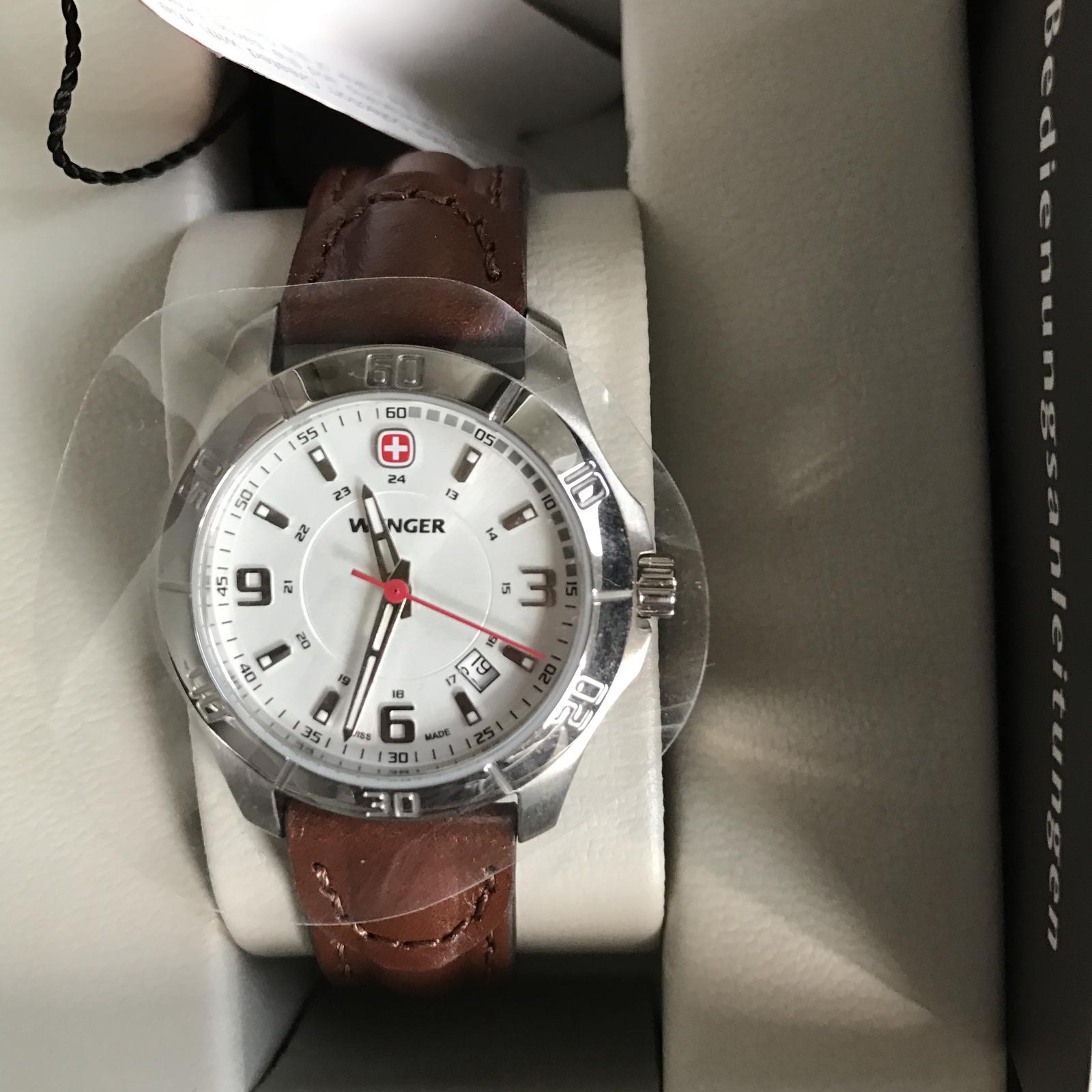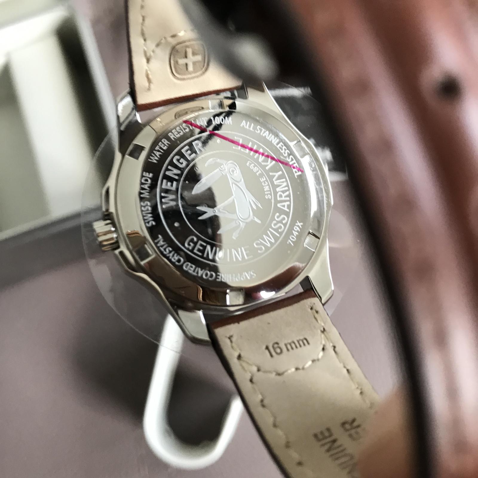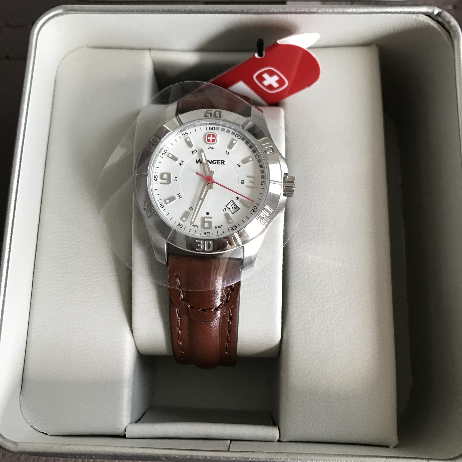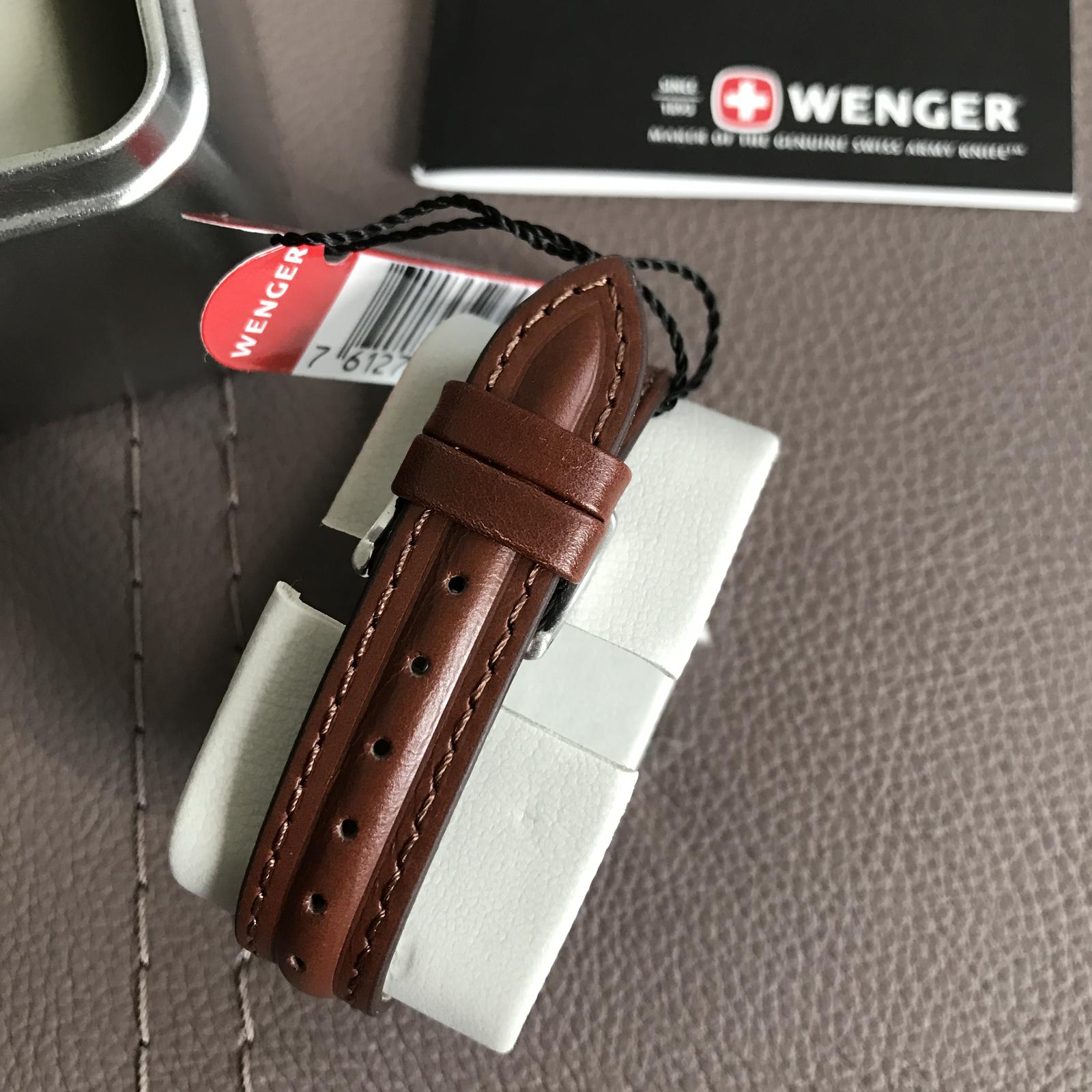 ⌚️ Dámske analógové hodinky značky Wenger v darčekovom balení. Kožený hnedý remienok, zafírové sklo, vodotesnosť 100 m. PC 220€.