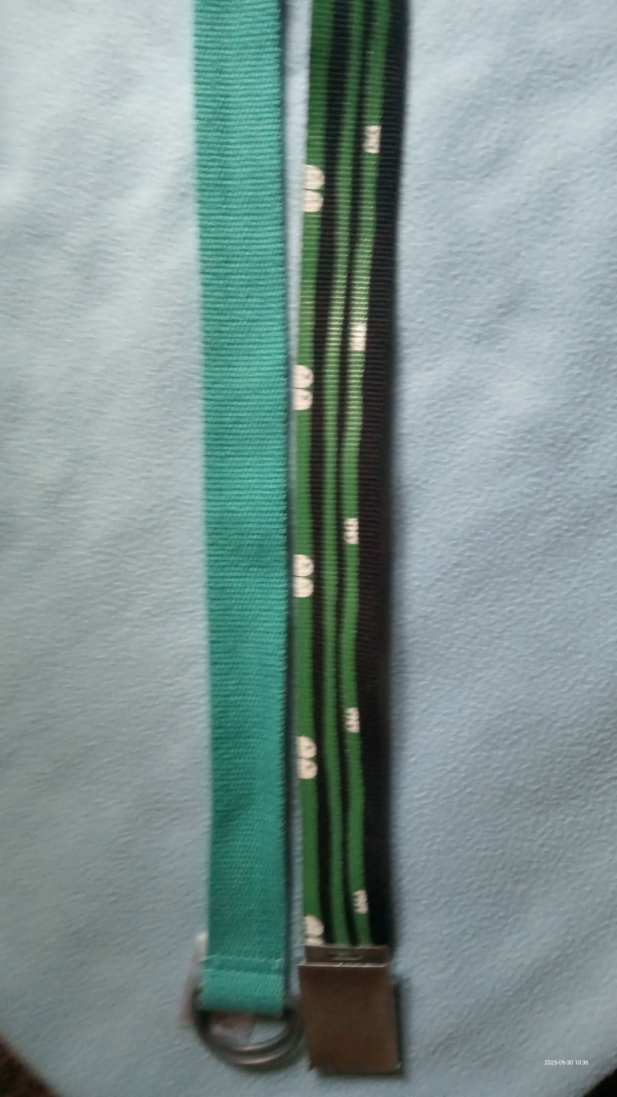 Opasok s prackou: čierno -zeleny, dĺžka s prackou 84 cm, dĺžka bez pracky 78 cm. Cena 2€.