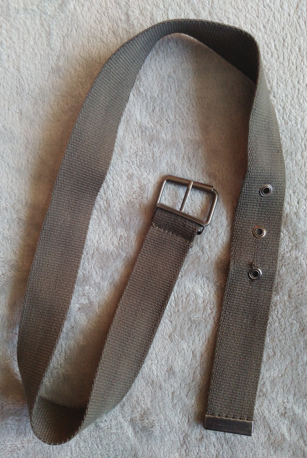 pánsky, pevný látkový, olivovej farby, dlhý 96 cm, 3 dierky na zapínanie