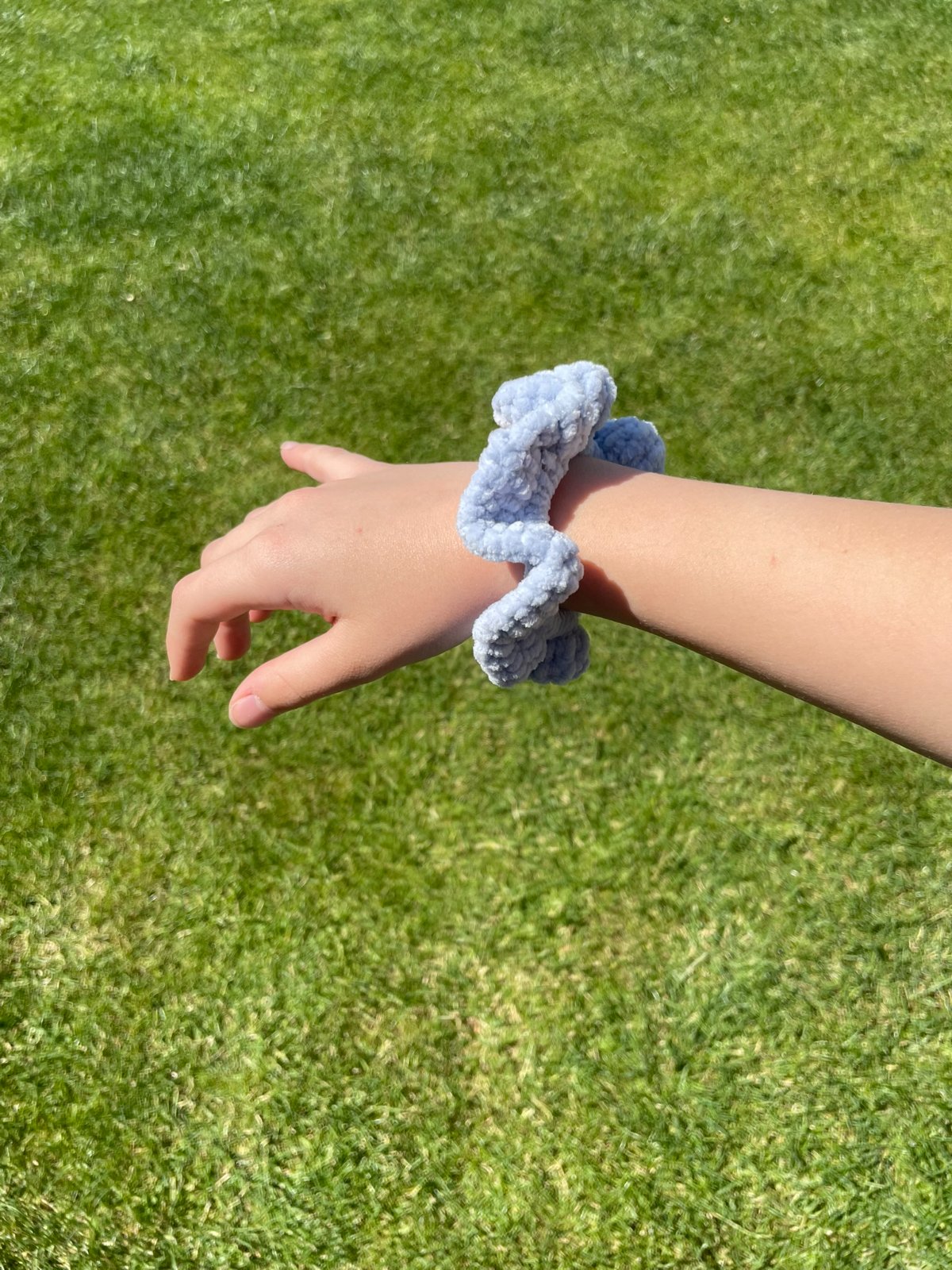 SkladomMoja dcérka (11 rokov) vo voľnom čase háčkuje takéto scrunchies gumičky do vlasov. Sú vyrobené z mäkkej priadze, príjemné na nosenie a šetrné k vlasom.