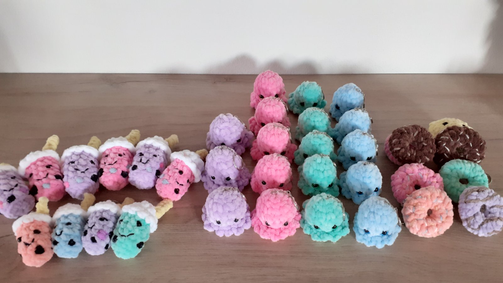 Háčkované kľúčenky z príjemnej priadze, s bezpečnostnými očkami, vyplnené dutým vláknom. Uháčkujem v rôznych farbách a veľkostiach.