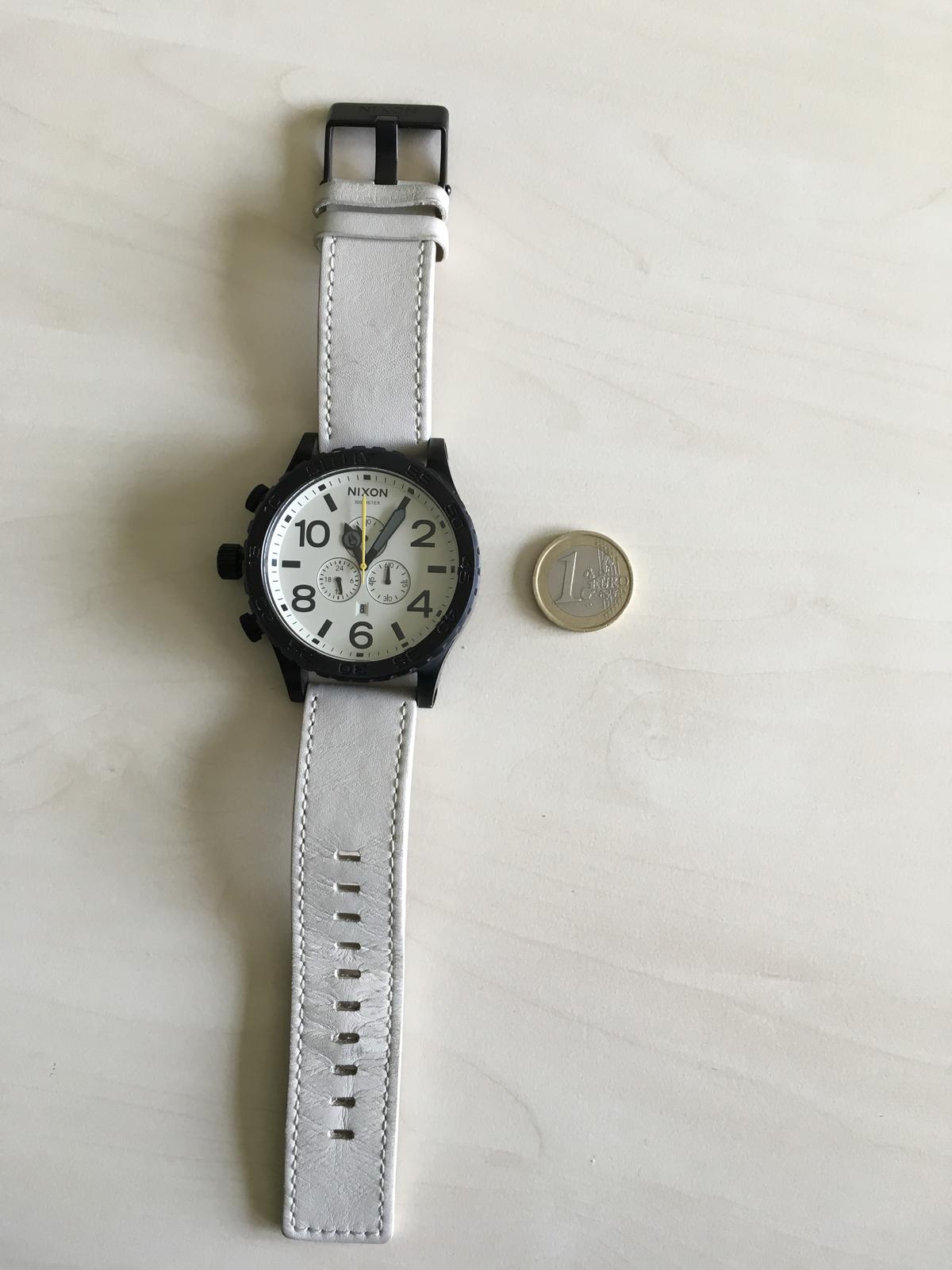 Hodinky NIXON chrono 51-30, velkost- priemer 5 cm, kupovane v USA, limitova edicia, povodna cena 280 eur, teraz za 99 eur, plne funkcne, kozeny original bezovy remienok