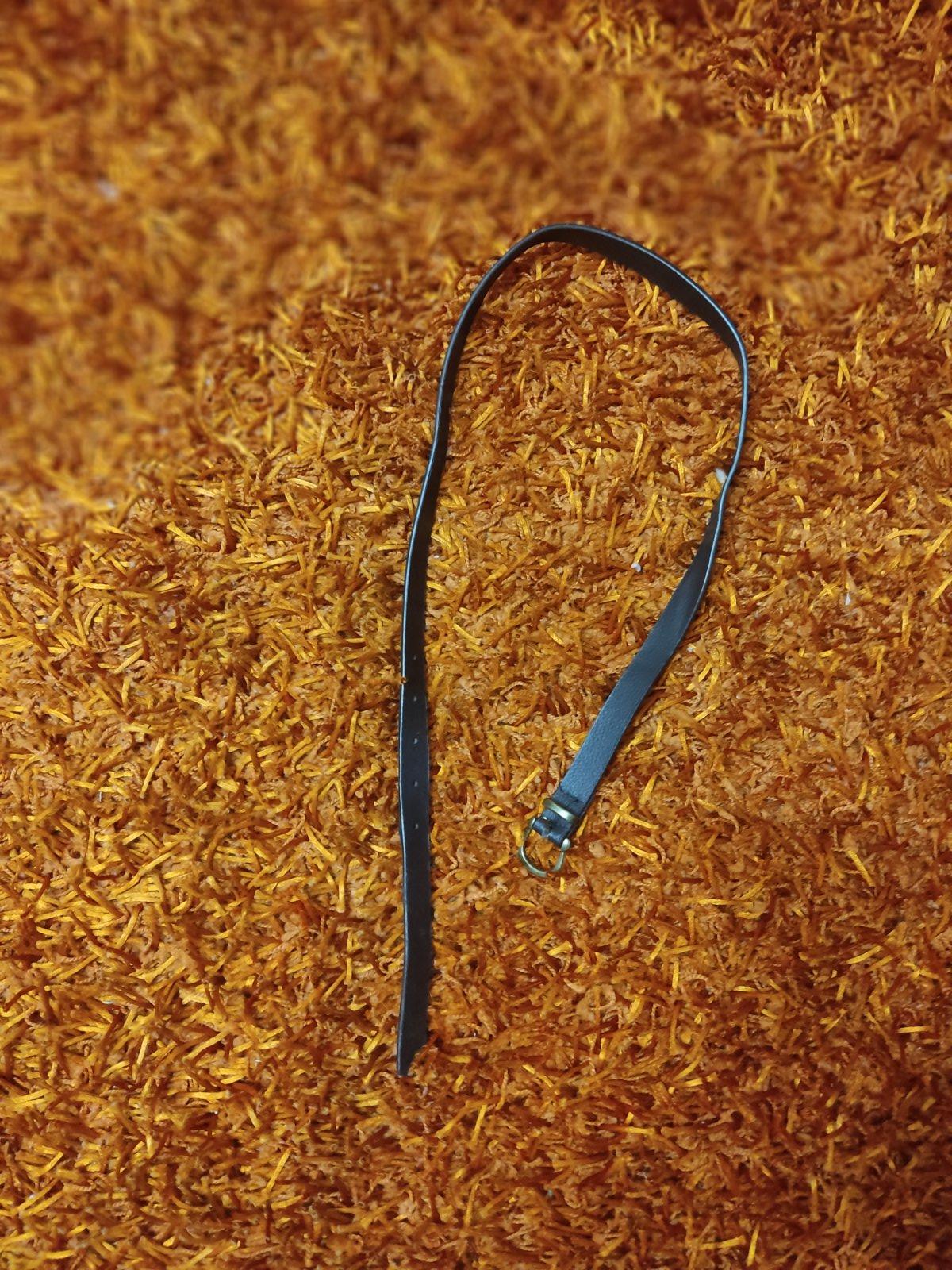 Dobrý nosený stav, nosenie vidno na jednej dierke, v ktorej bol najviac použitý, ale to neznamená že je poškodený, iba je vidno nosenie... Materiál PVC, pracka je kovová, dĺžka aj s prackou je 120 ...