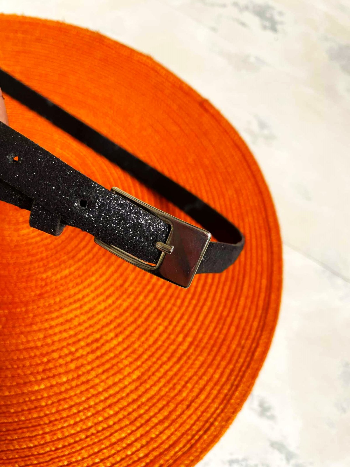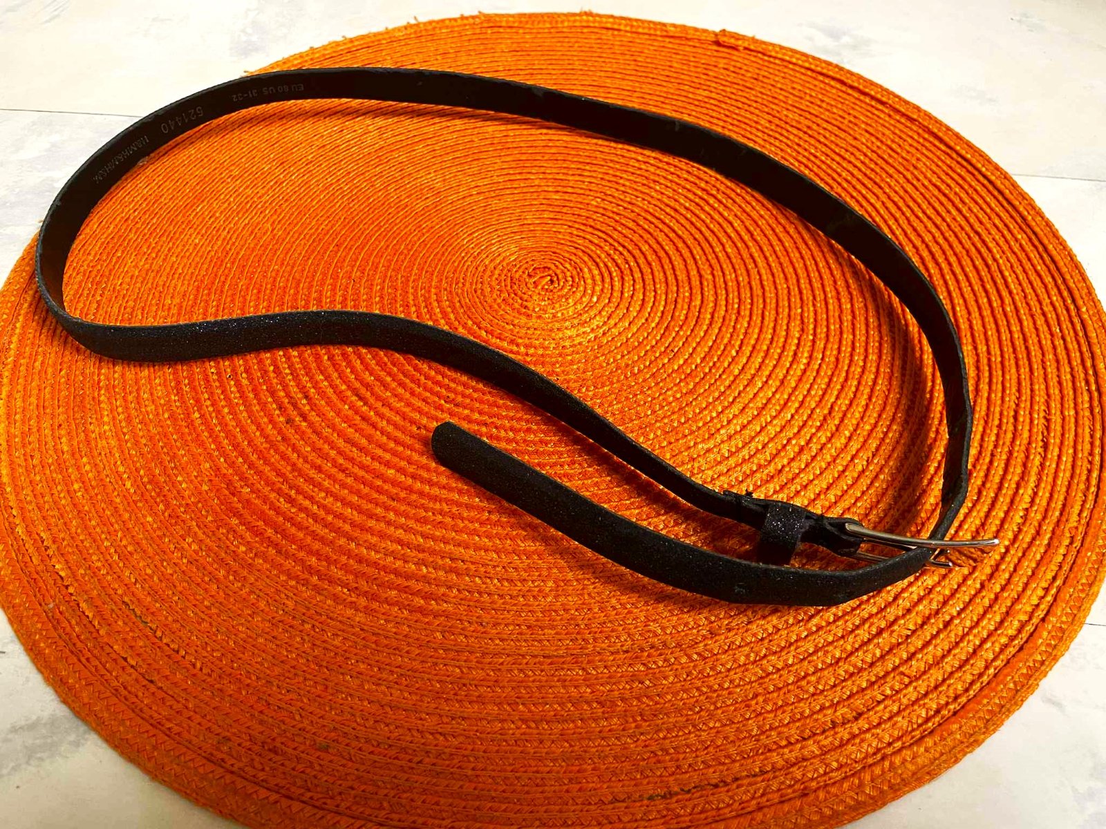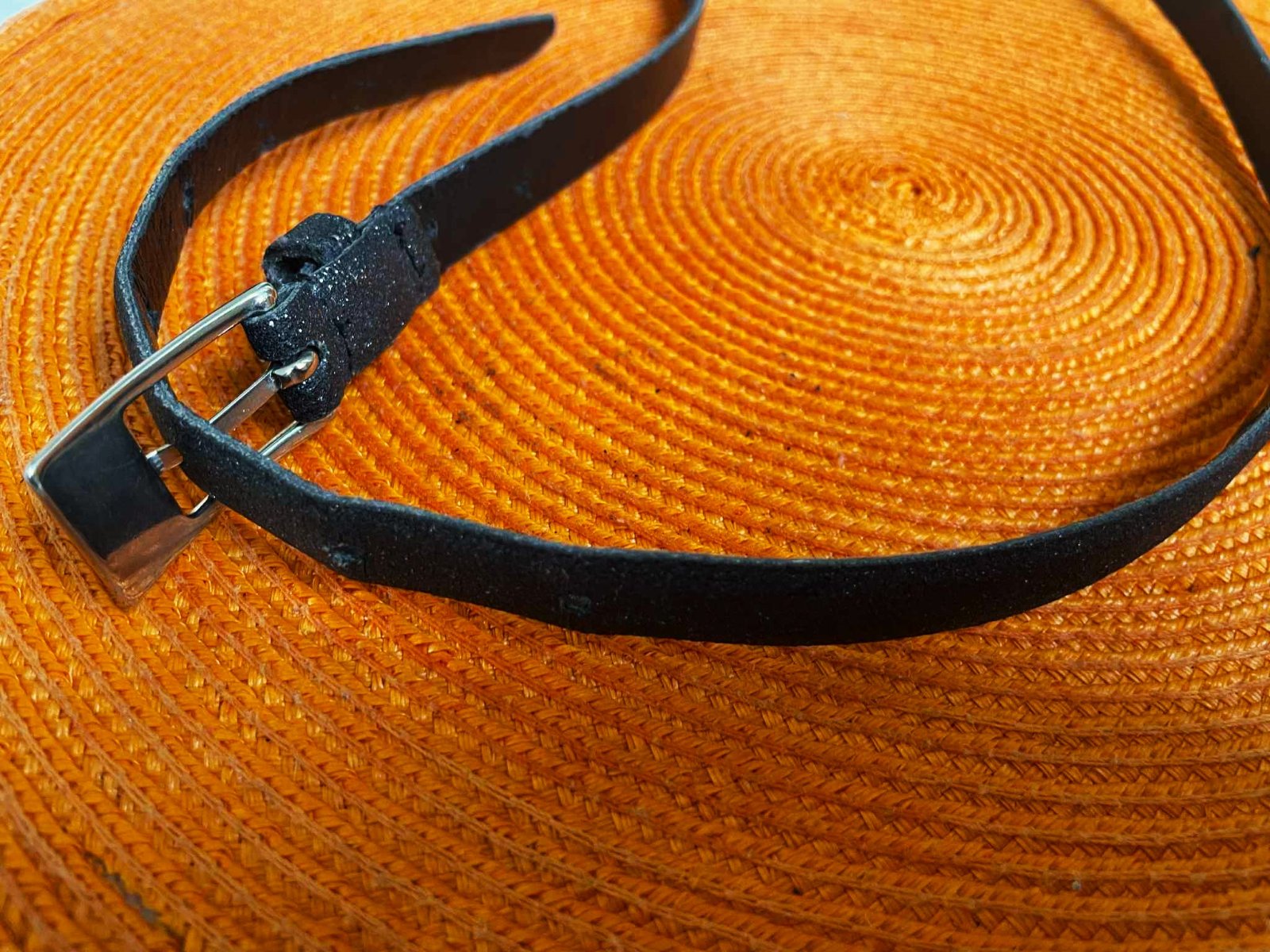 antracitovo čierny / svetločierny - tmavošedý tenký opasok,jemný, dlžka celkom = 94 cm,šírka = 1,5 cm,prvá dierka na opasku je cca 77 cm - merané po zapnutí spony,opasok je celý s jemným odleskom lurexu - jemne trblietavý
