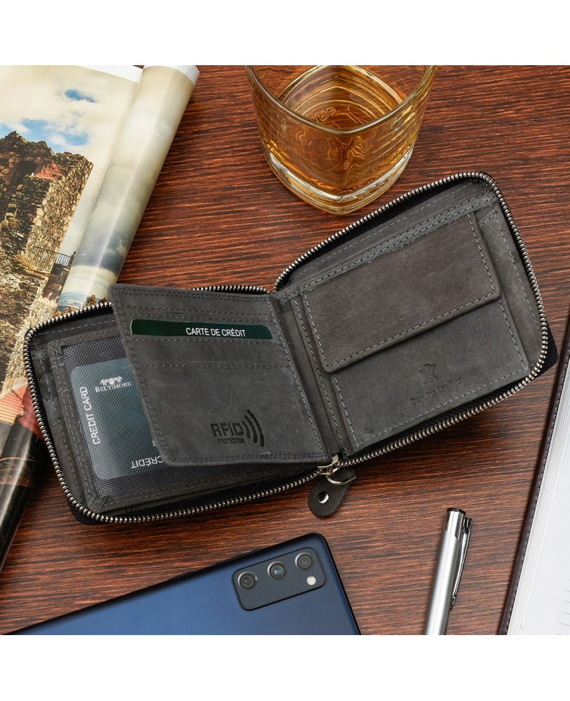 Pánska kožená peňaženka RFiD nubuková sivá H01