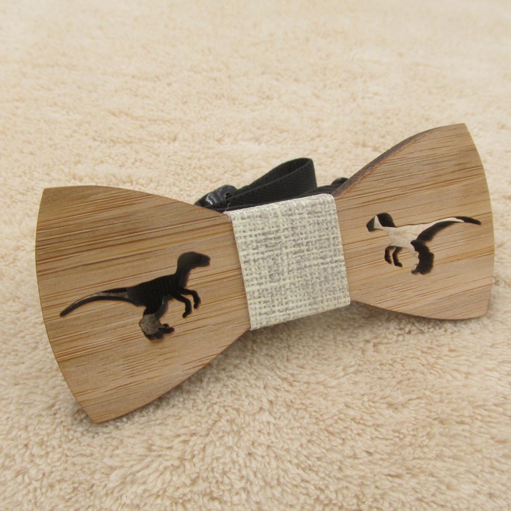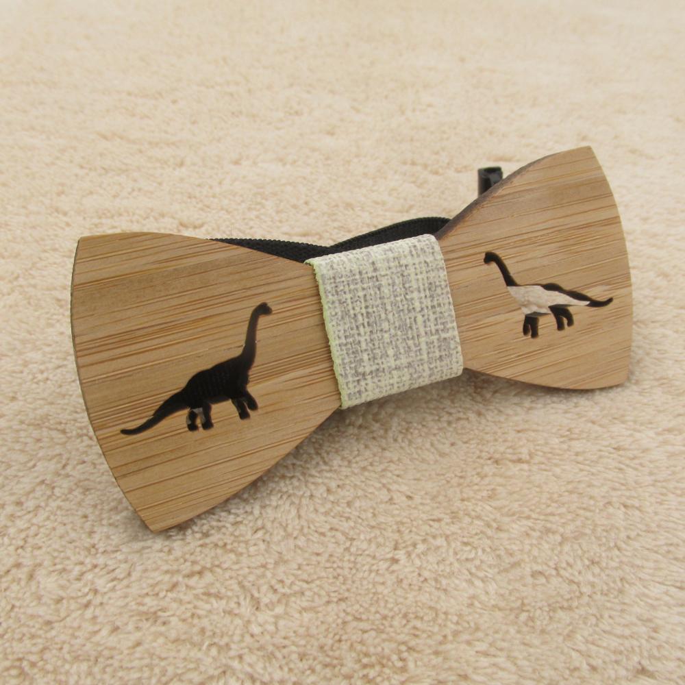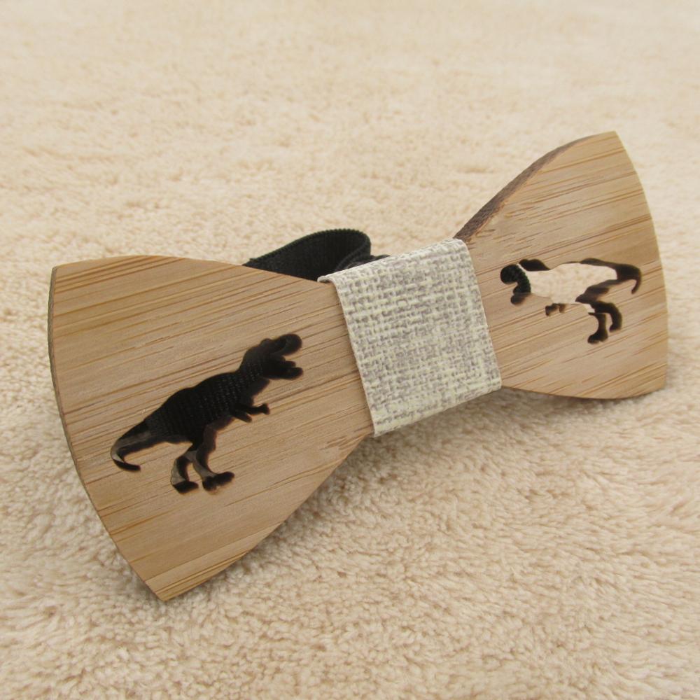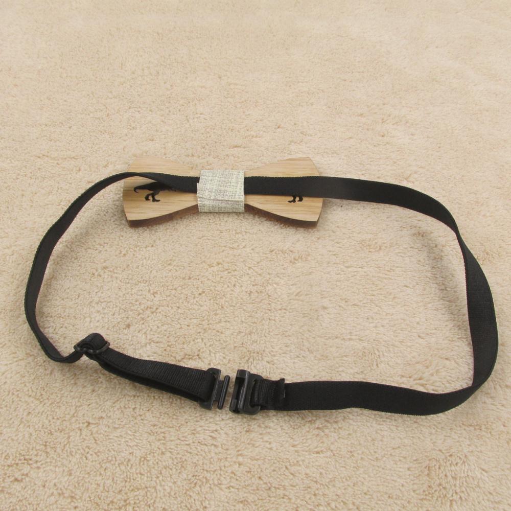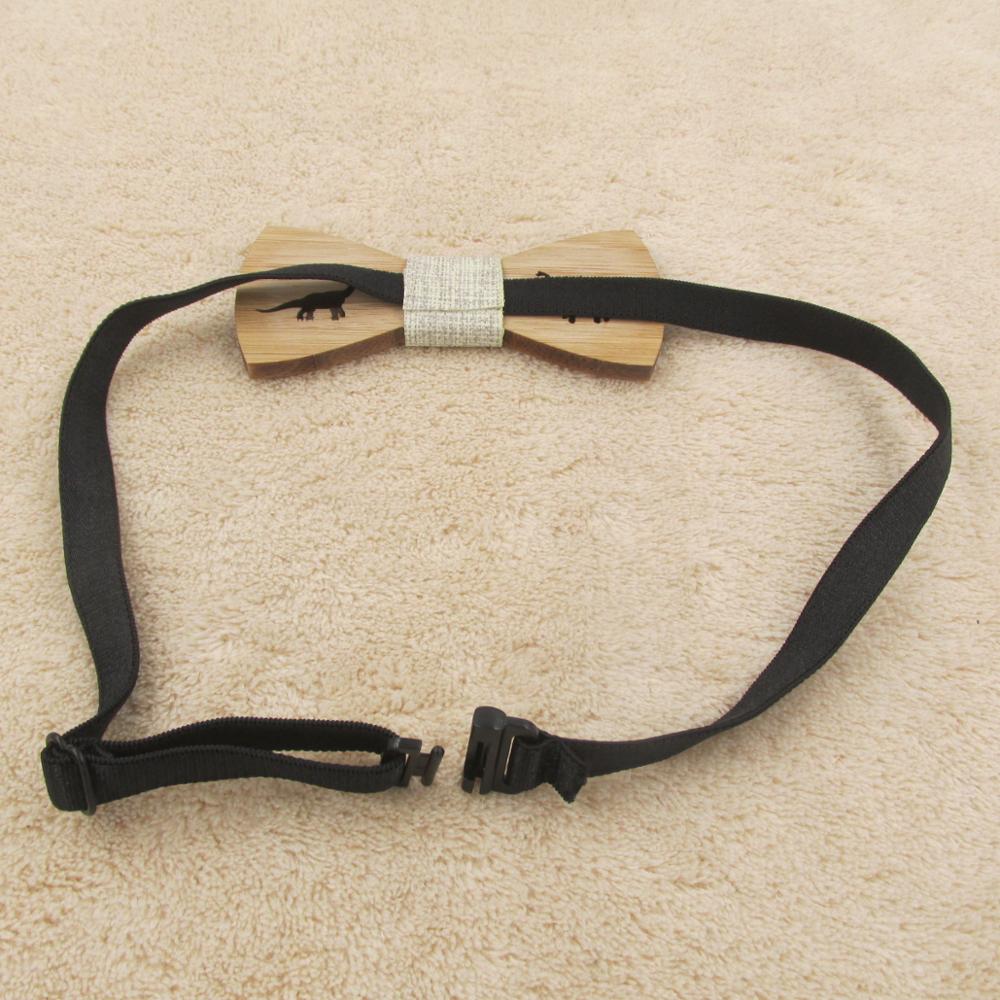 Drevený motýlik s vyrezaným dinosaurom. Motýlik je na gumičku, ktorú je možné prispôsobiť.