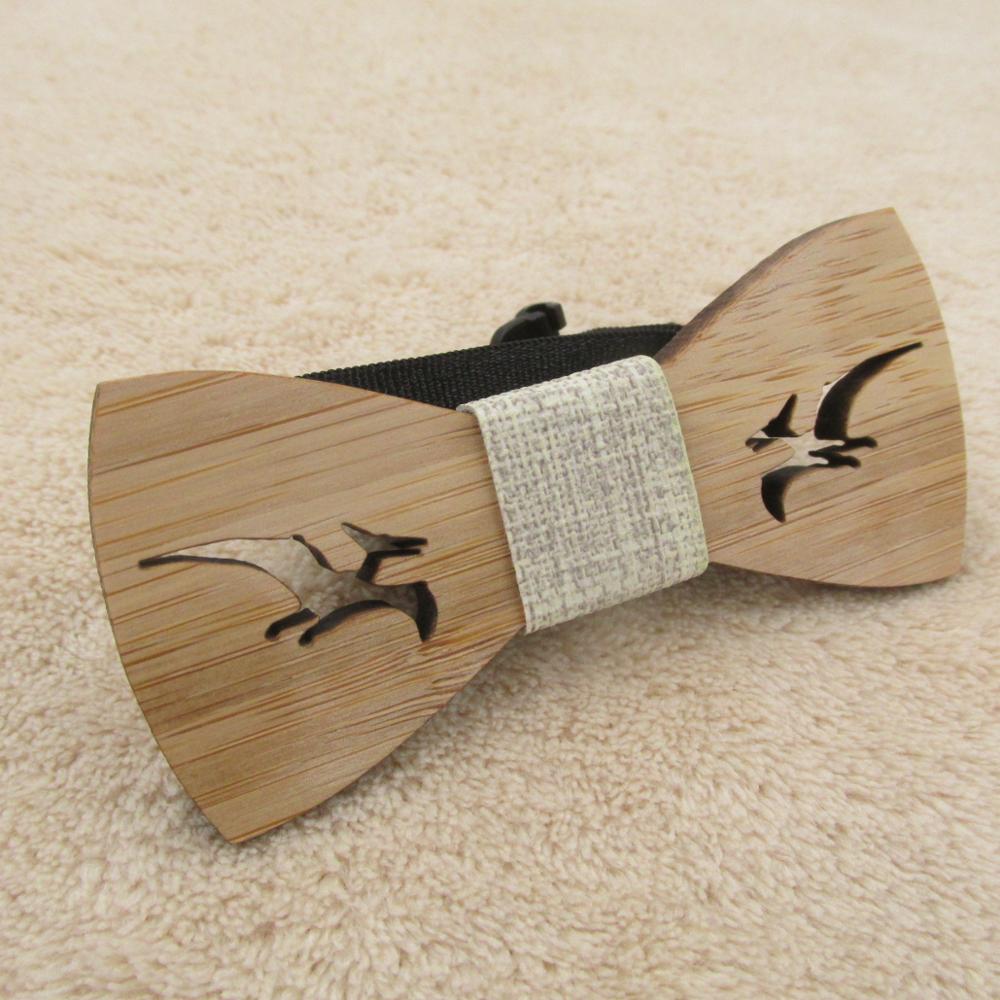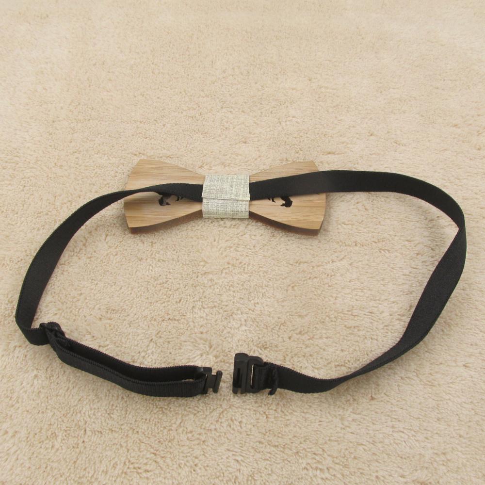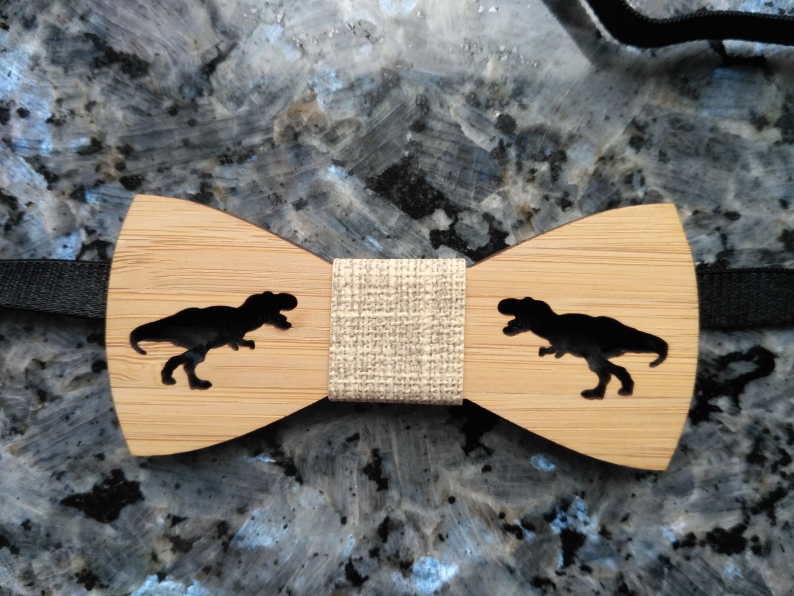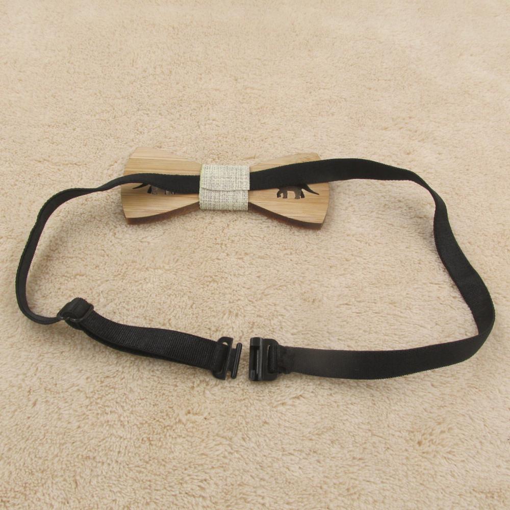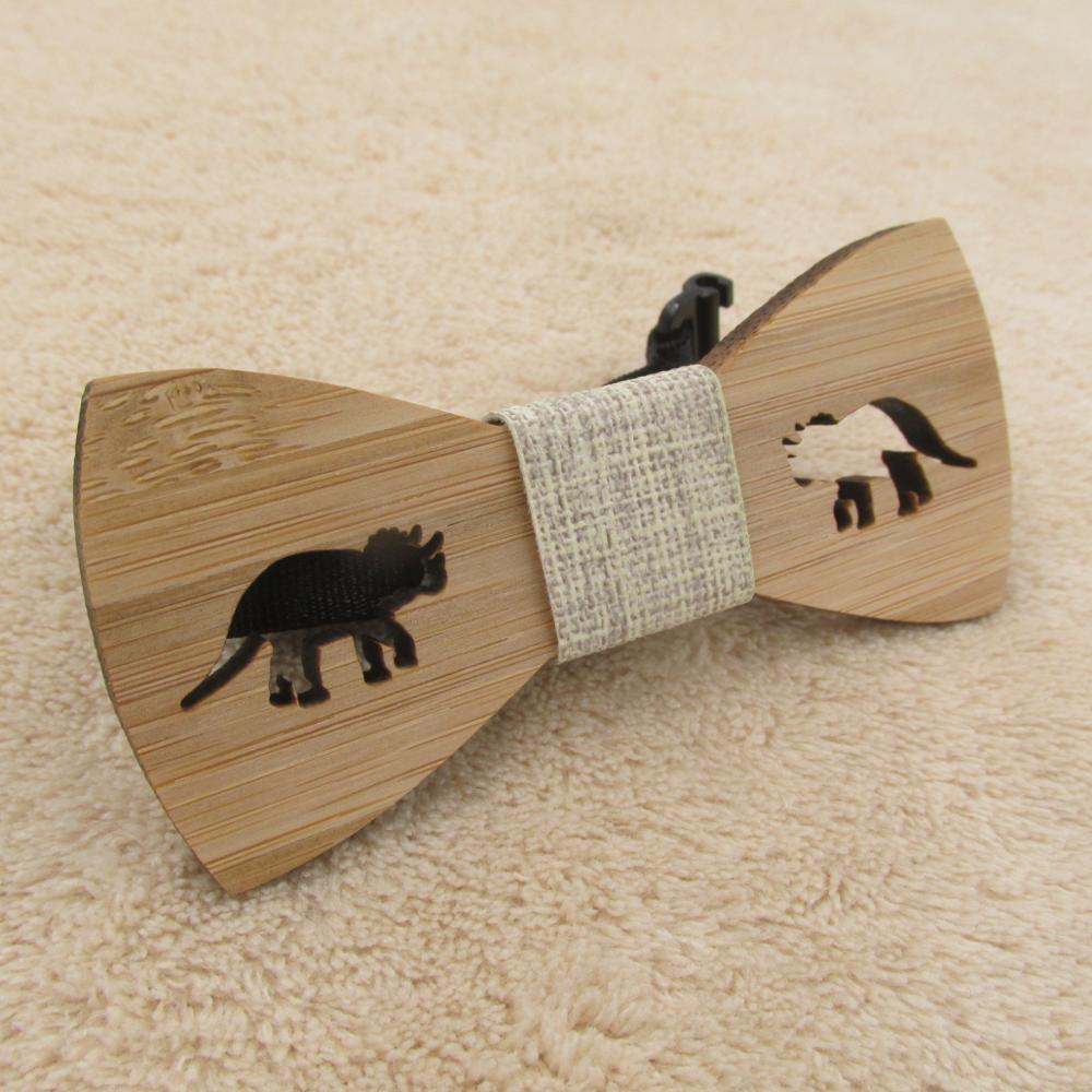 Drevený motýlik s vyrezaným dinosaurom. Motýlik je na gumičku, ktorú je možné prispôsobiť.