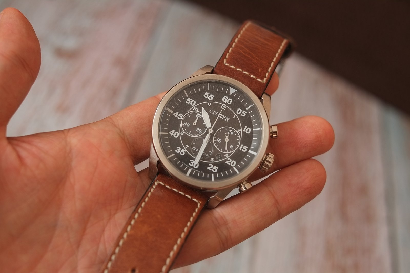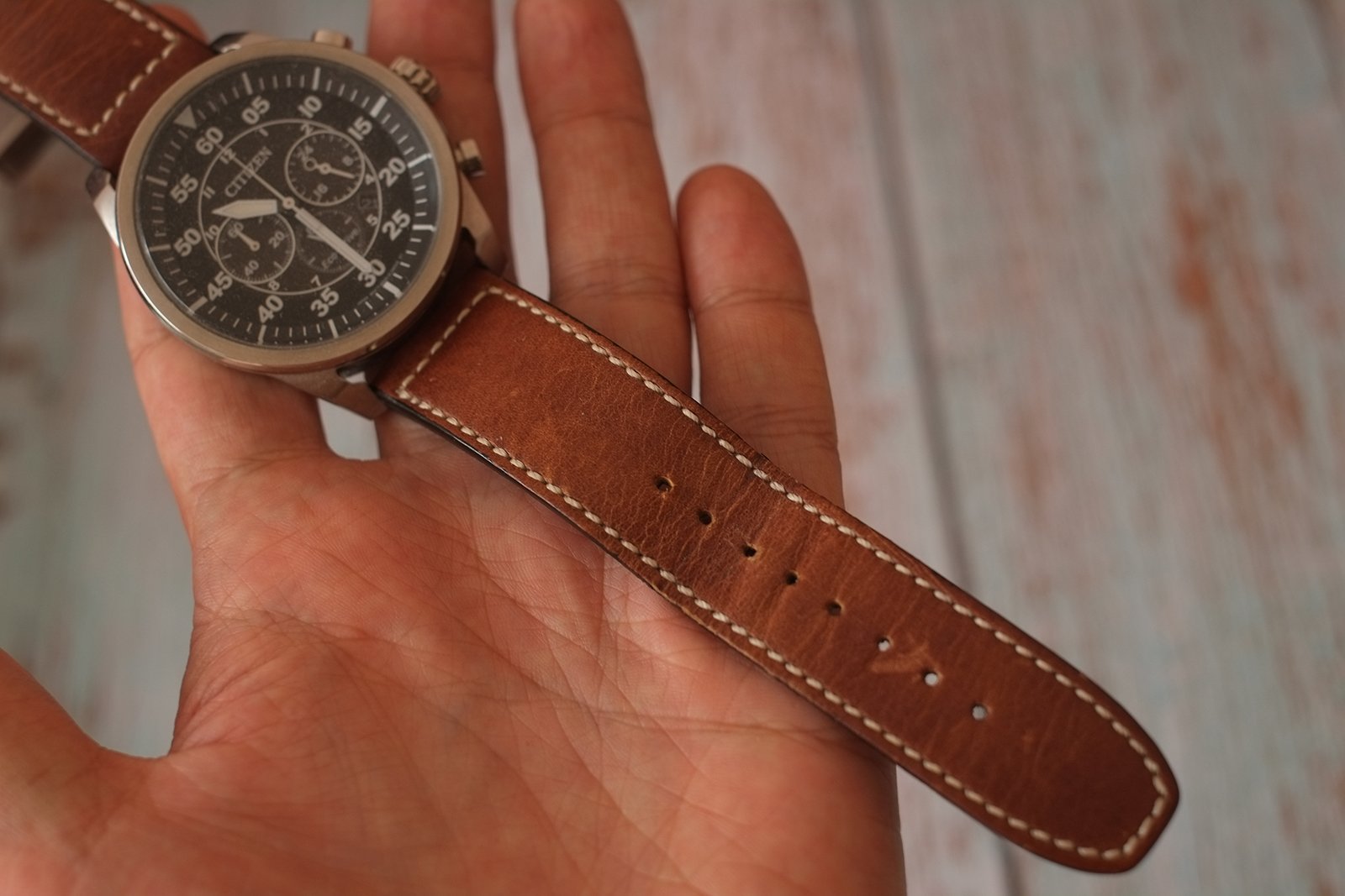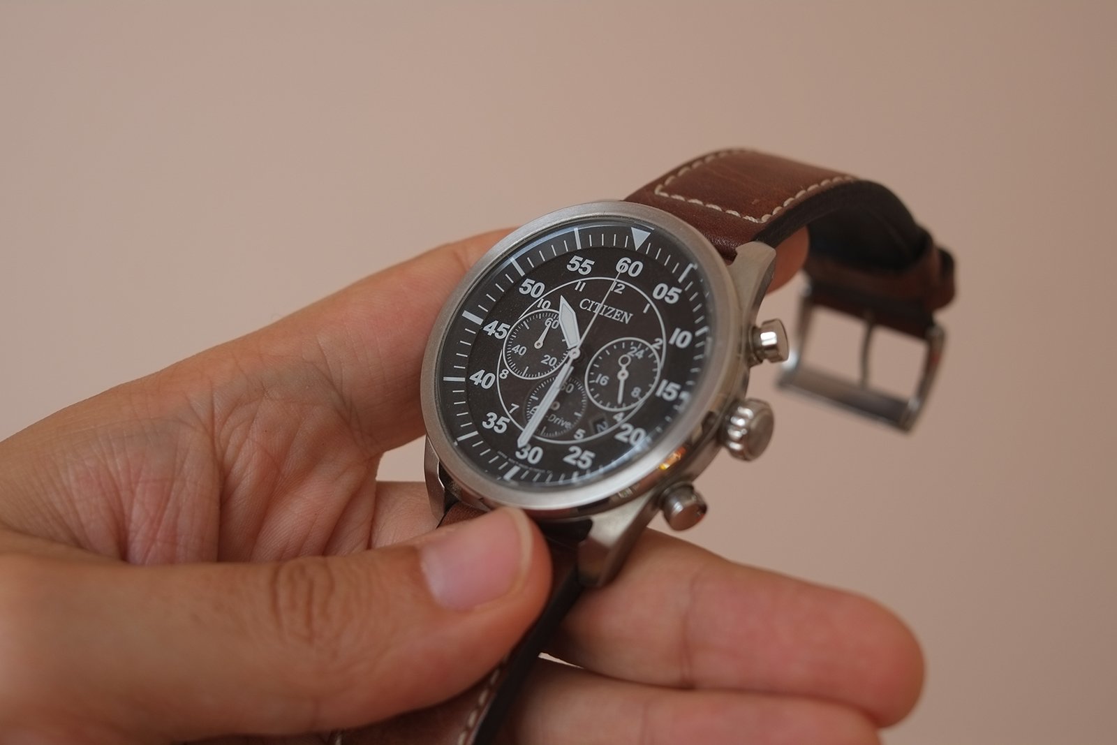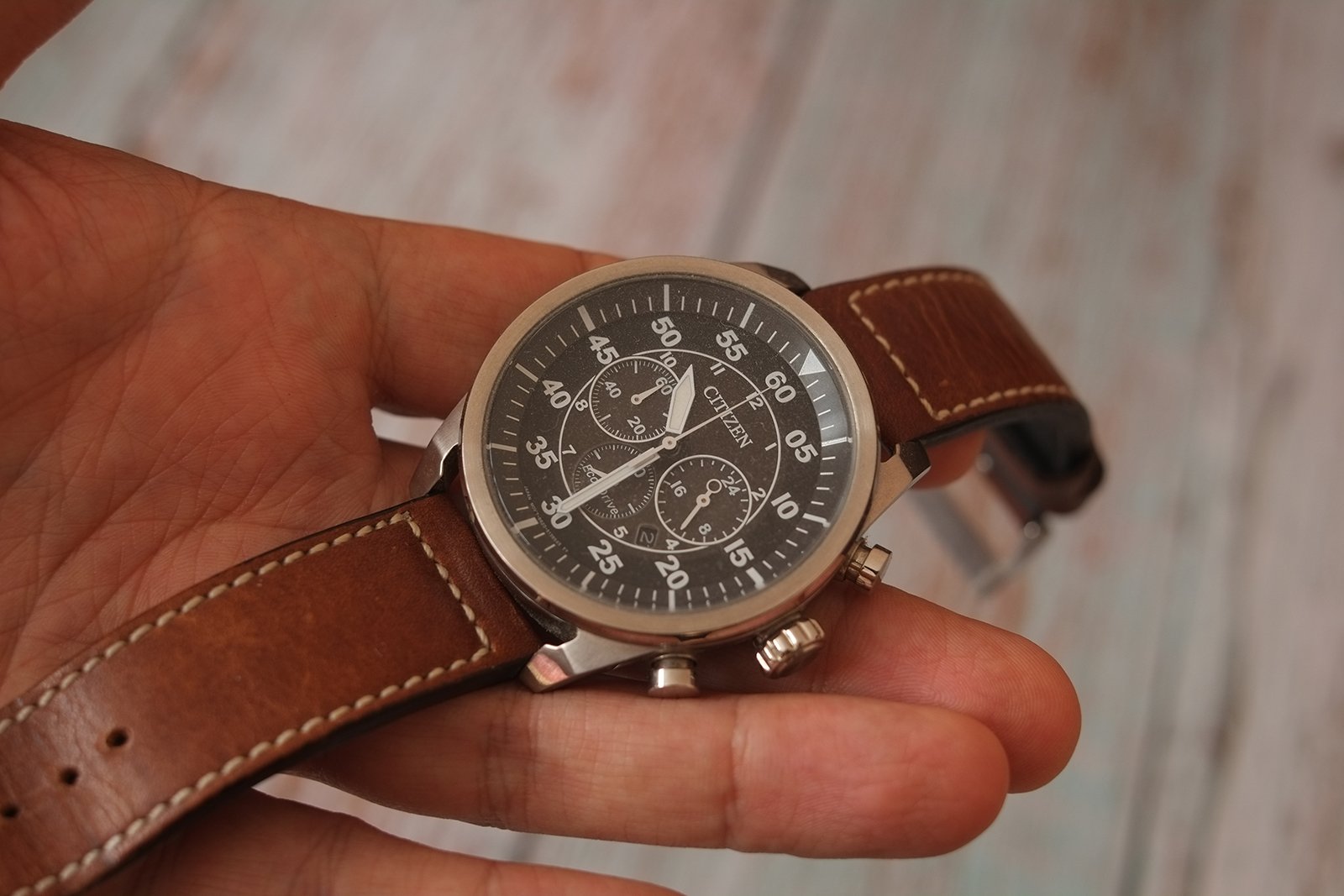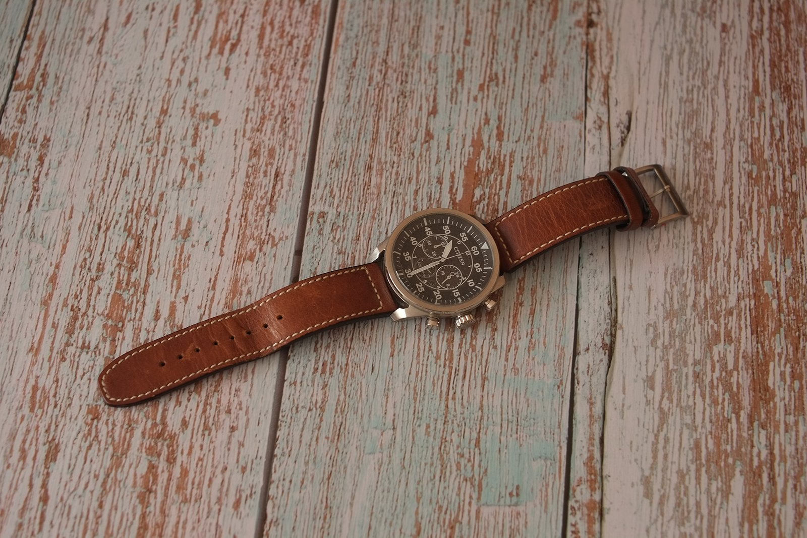 Predám pánske vintage letecké hodinky značky CITIZEN, vo výbornom stave. Na remienku sú známky používania, ale boli používané len veľmi zriedka. Remienok je hnedej farby a kožený, tam sa opotrebovanie prejaví hneď. Puzdro a sklíčko hodiniek je vo výbornom stave, pri podrobnom skúmaní som nenašiel žiaden škrabanec.