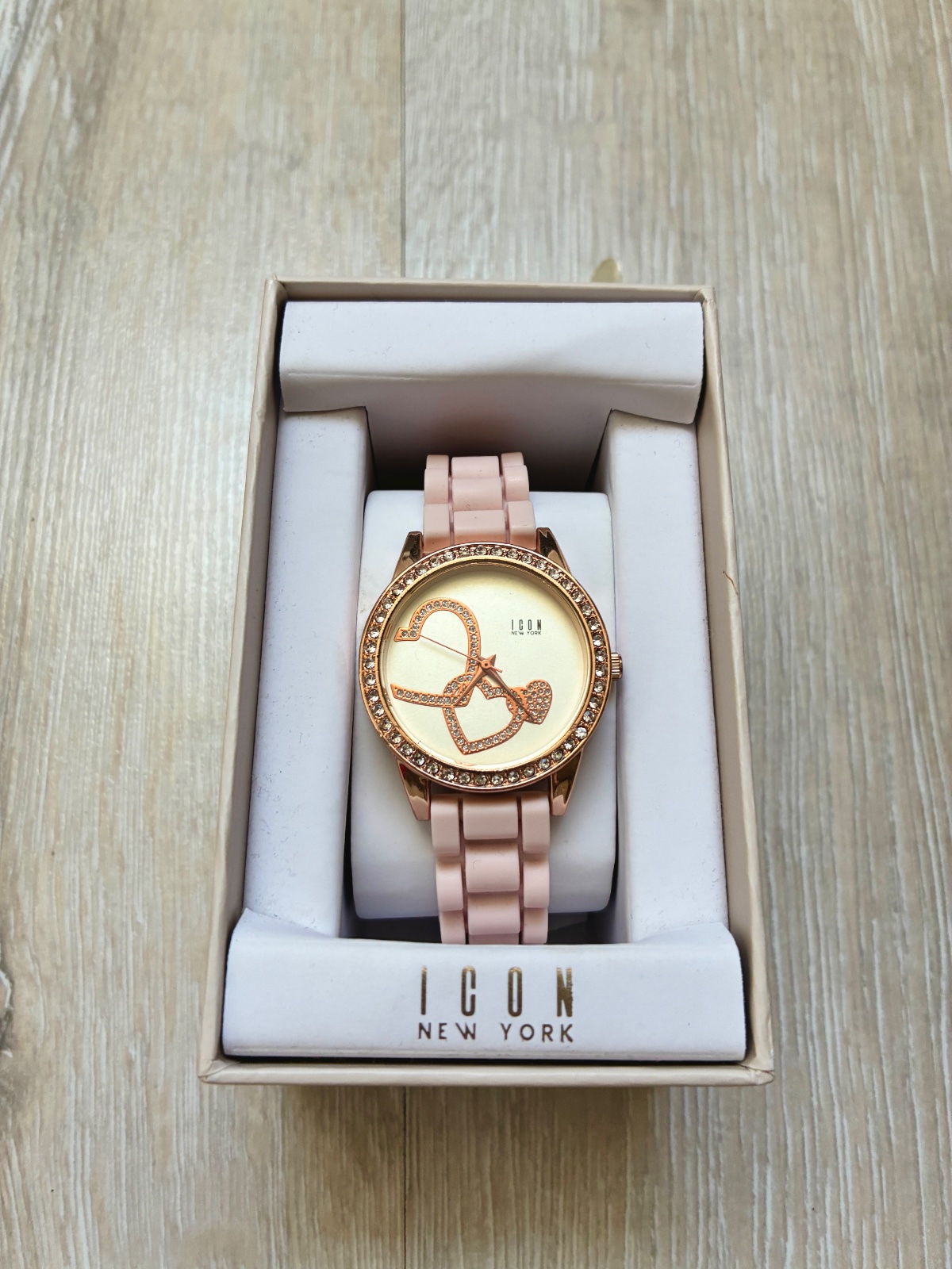 Hodinky ICON krásnej ružovej farby. Treba na hodinkách len vymeniť baterku nakoľko nejaký čas ležali len v skrinke. Hodinky niesu poškodené ani nič podobné išlo skôr o nevhodný darček a kedže som triedila veci posuniem ich rada ďalej.