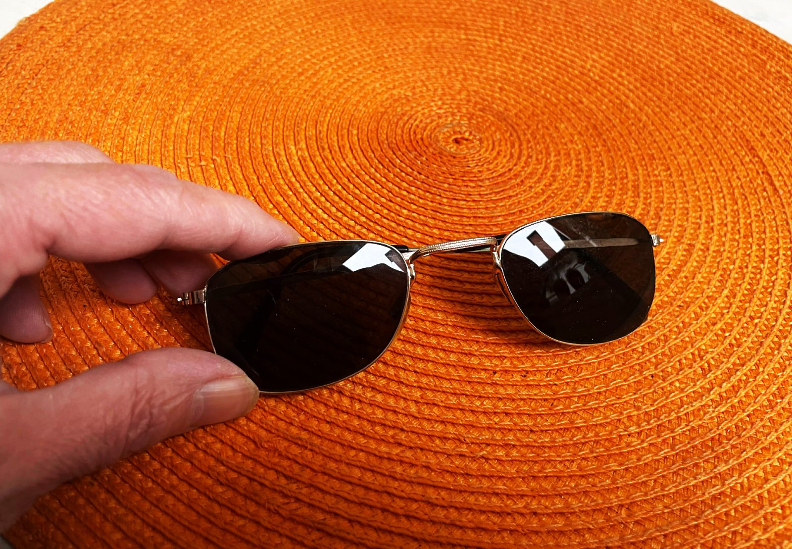 ľahúčke málo nosené detské okuliare,výborne tónované sklá,pekne sedia na tváričke,jemný zlatý rámik, s UVA a UVB faktorom