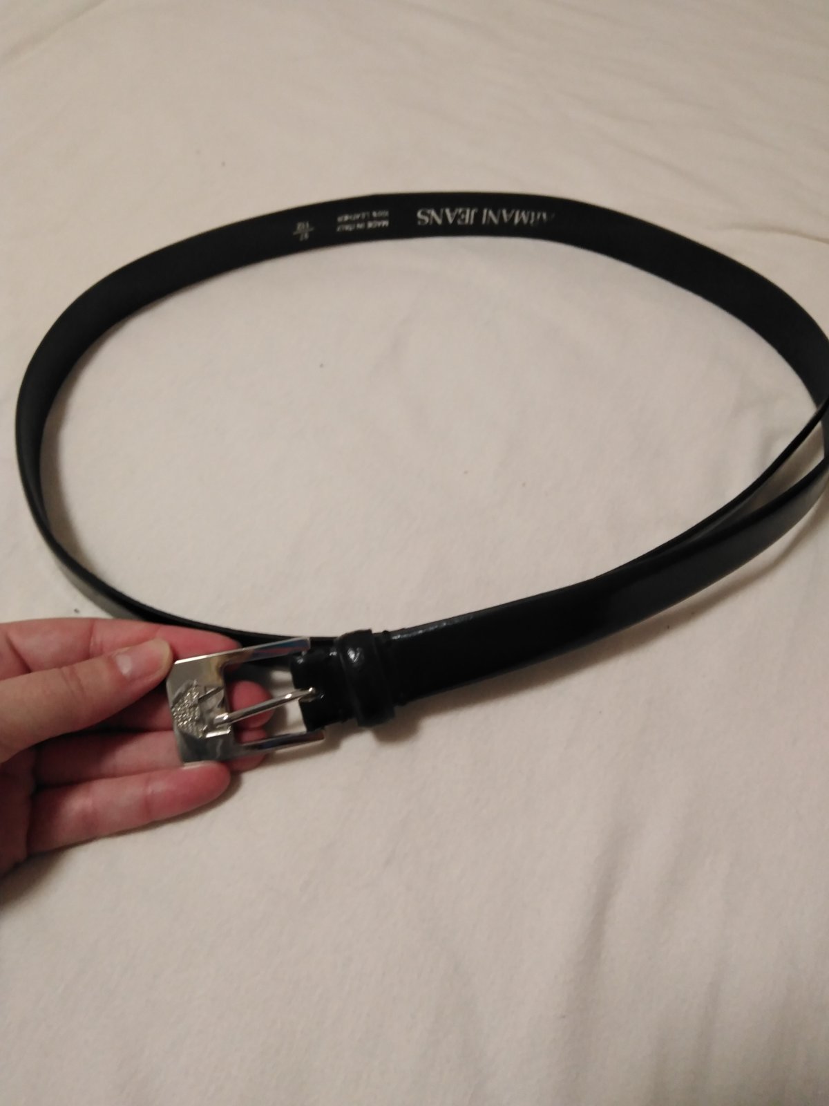 Opasok Armani, TOP stav. Použitý 1x. Strieborná značka na pracke, made in Italy. Kožený. Farba čierna, dlzka opasku bez pracky 112 cm. Odporúčam, pôvodná cena oveľa vyššia