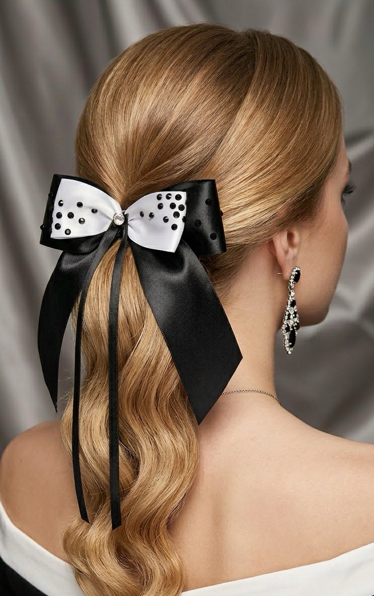 Predstavujem vám svoju novú vlasovú ozdobu – elegantnú čierno-bielu mašľu, ktorá upúta na prvý pohľad.