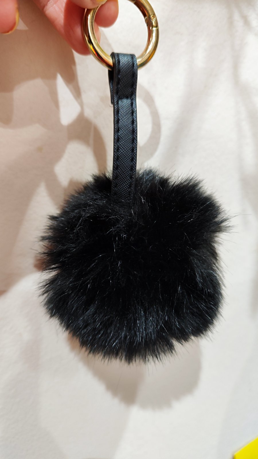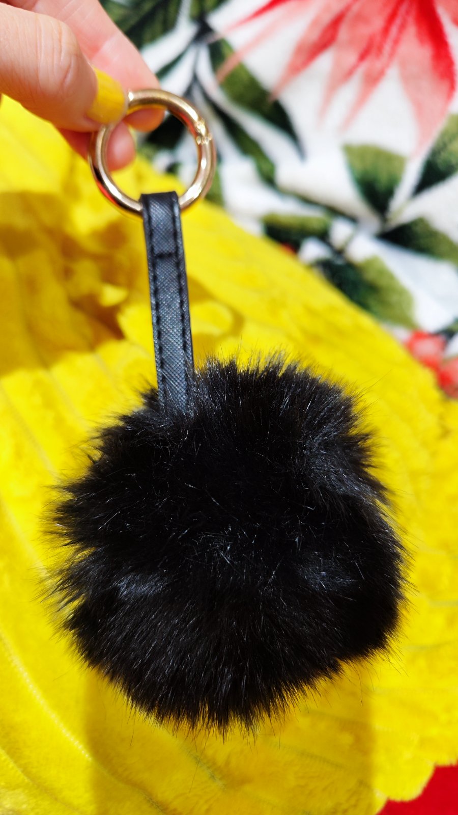 Chlpatý prívesok na kabelku alebo na kľúče,v čiernej farbe.