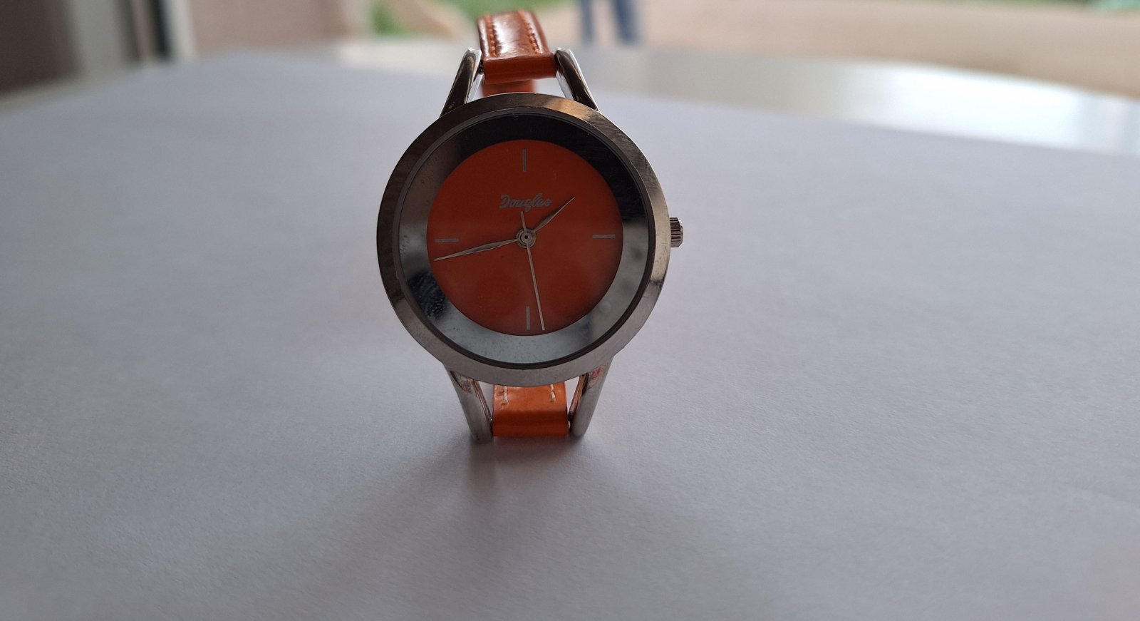 V top stave, treba vymenit baterku. Celková dĺžka hodiniek je 23 cm. Rozmer ciferníka je 3cm. Veľkosť sa dá prispôsobiť.