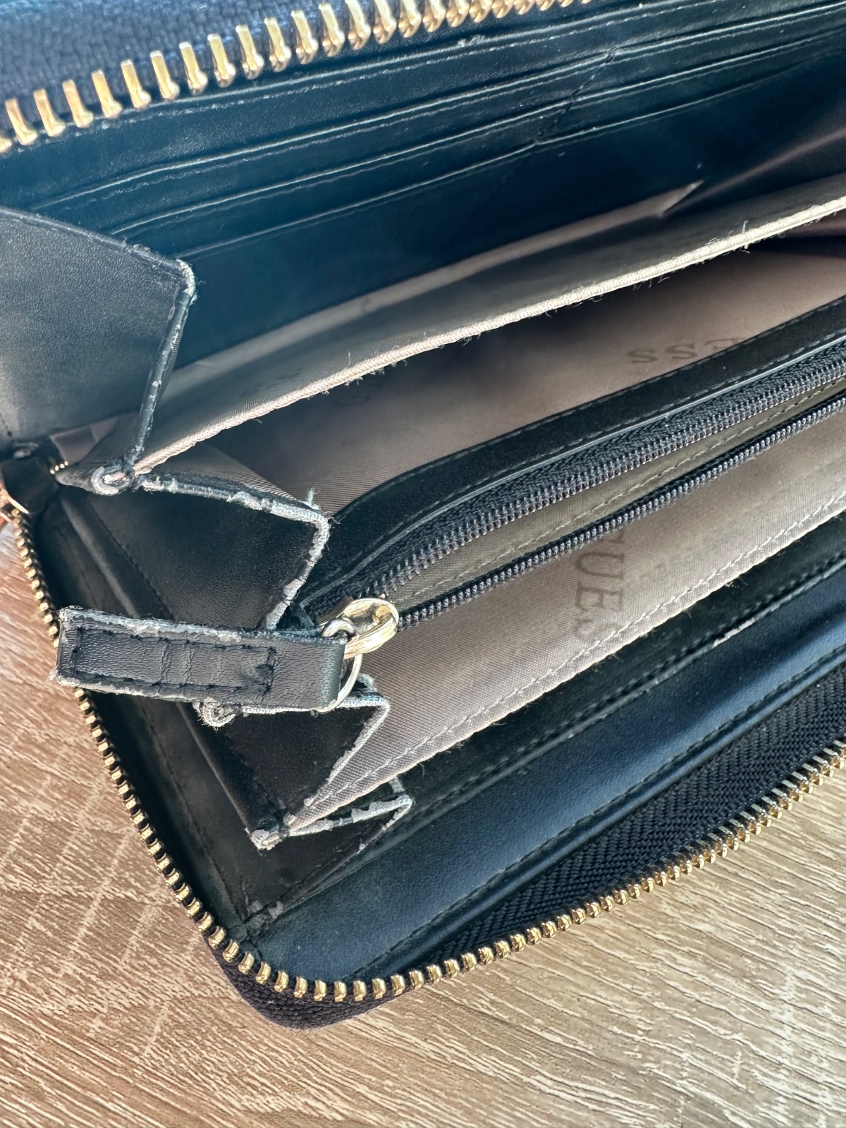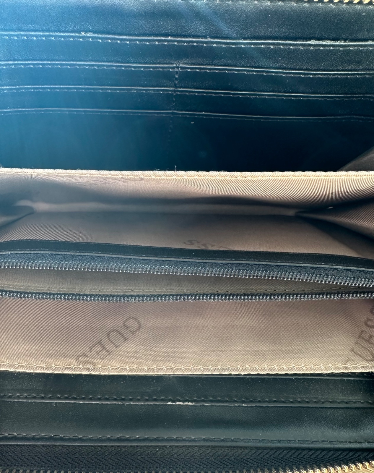 Pekná peňaženka Guess,používaná,mala trhlinka vnútri,nie je to pri používaní vidieť.Velka,prehľadná, lahka