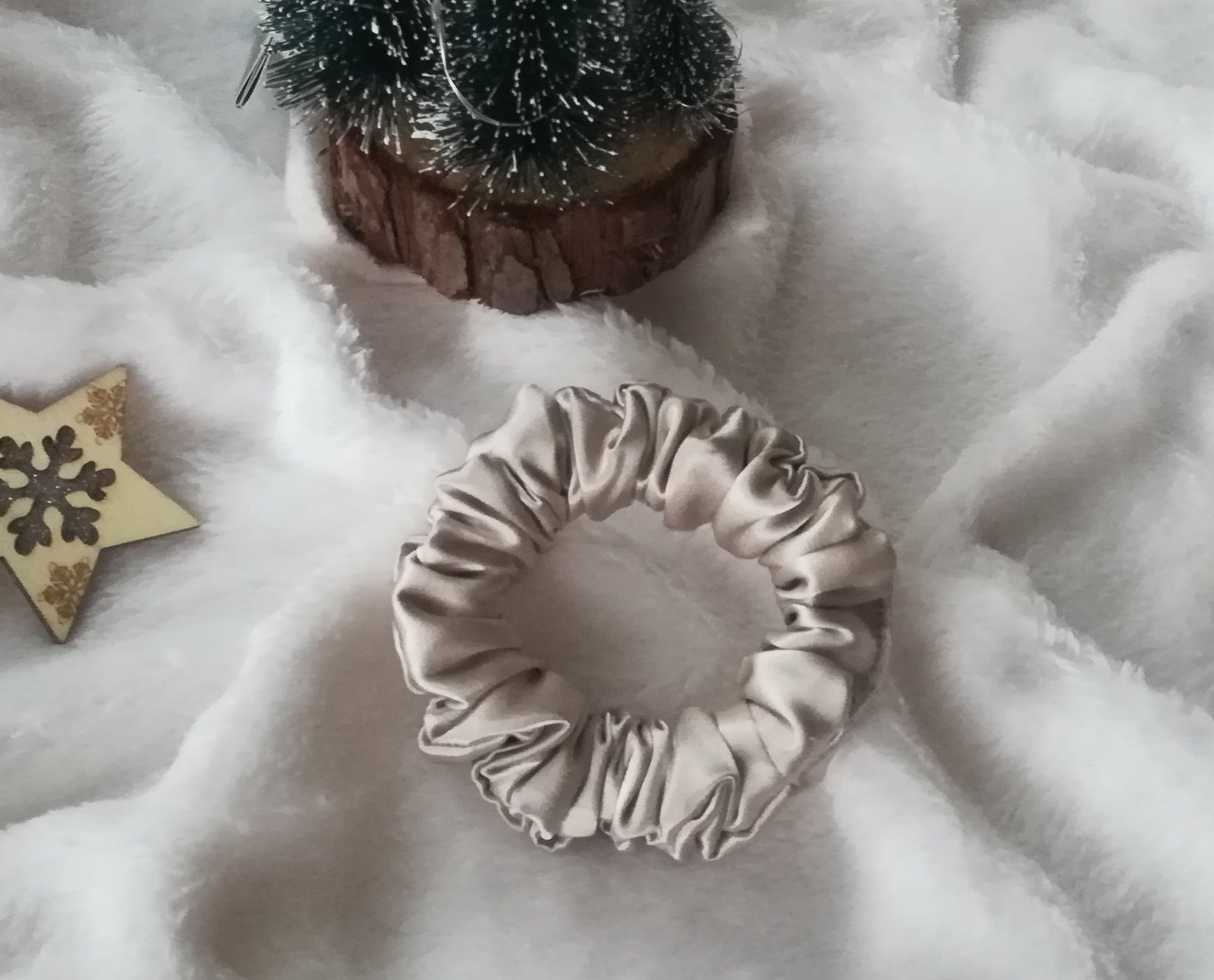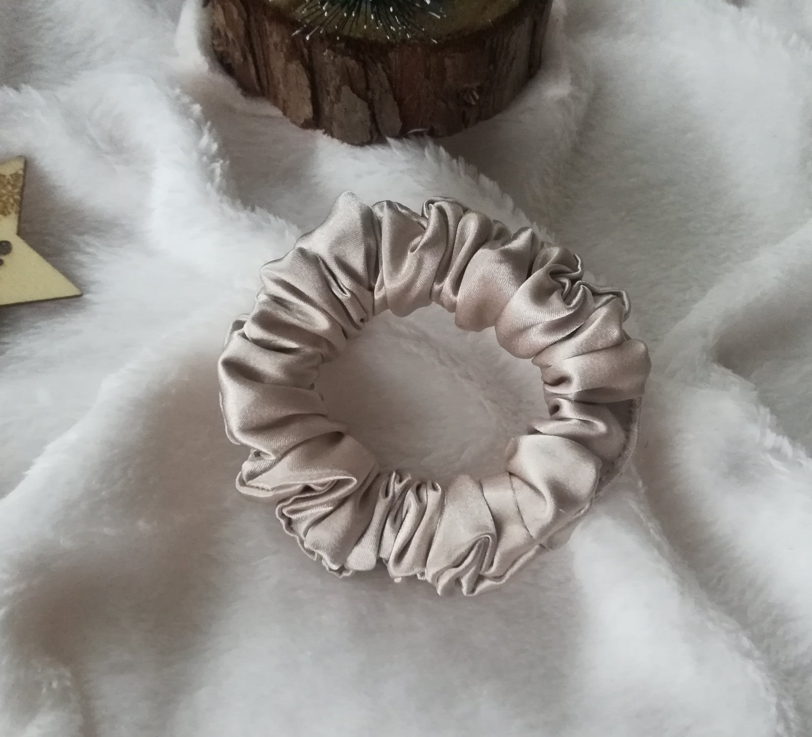 Saténová gumička do vlasov, Scrunchie, béžová